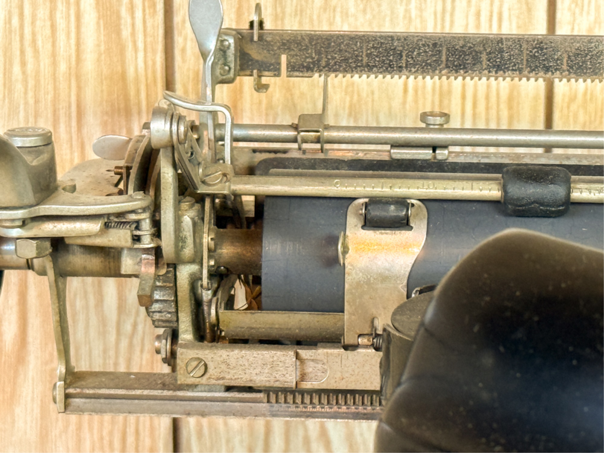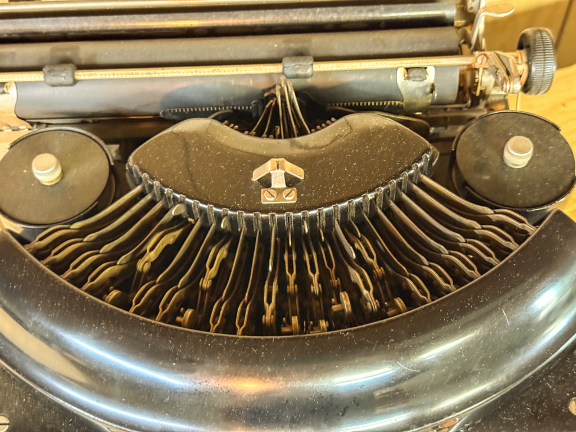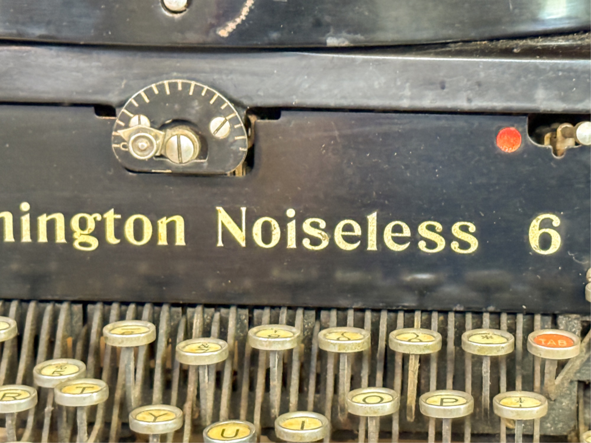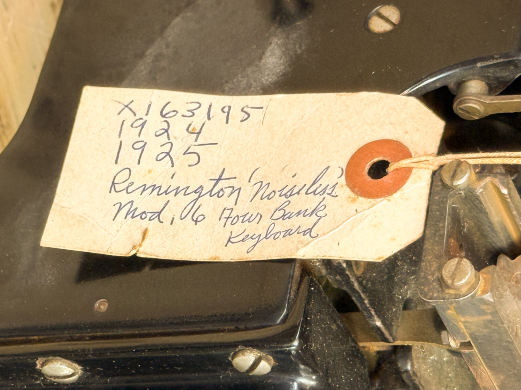 Circa 1930. Serial number X163195. 9 x 15 x 14 inches. Condition: Good. Carriage return moves crisply. Some keys stick, may need cleaning/oil. Temp No 7a
