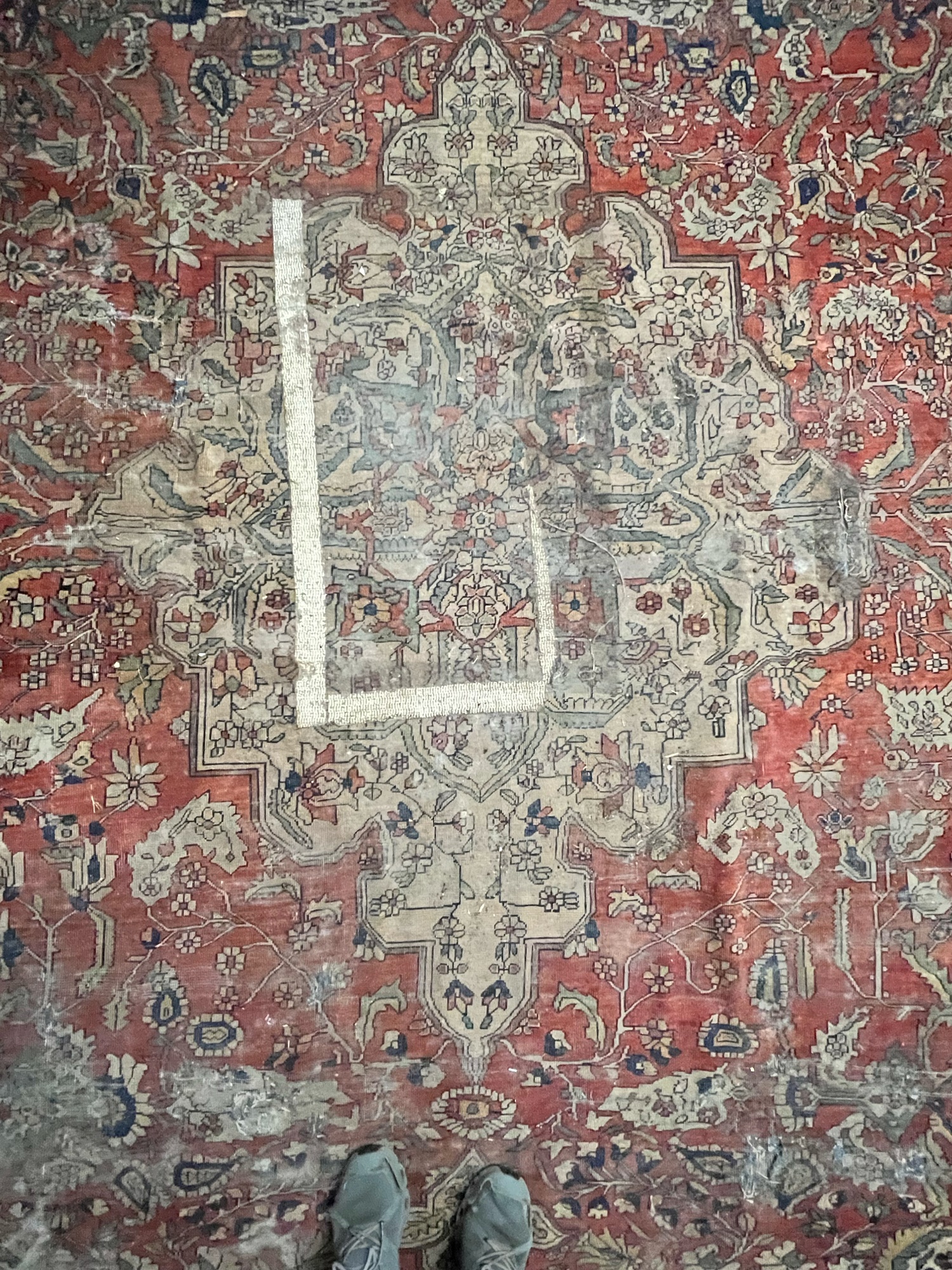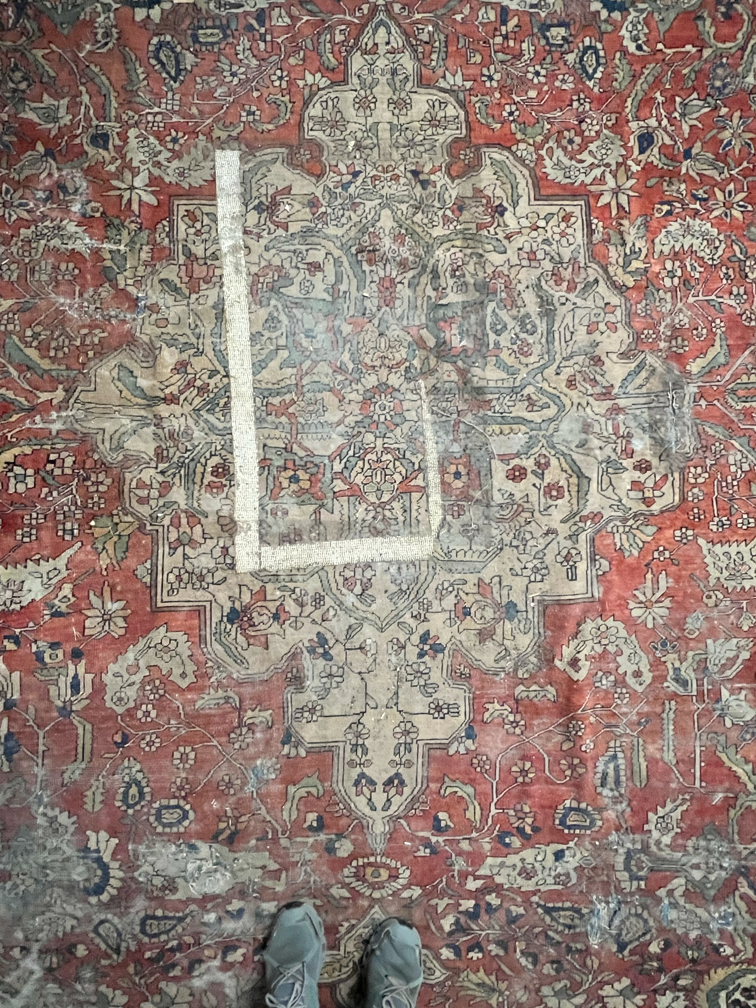 13 feet 8 inches x 9 feet 3 inches Condition: Fair to poor, tears, wear, holes etc Temp No 6030