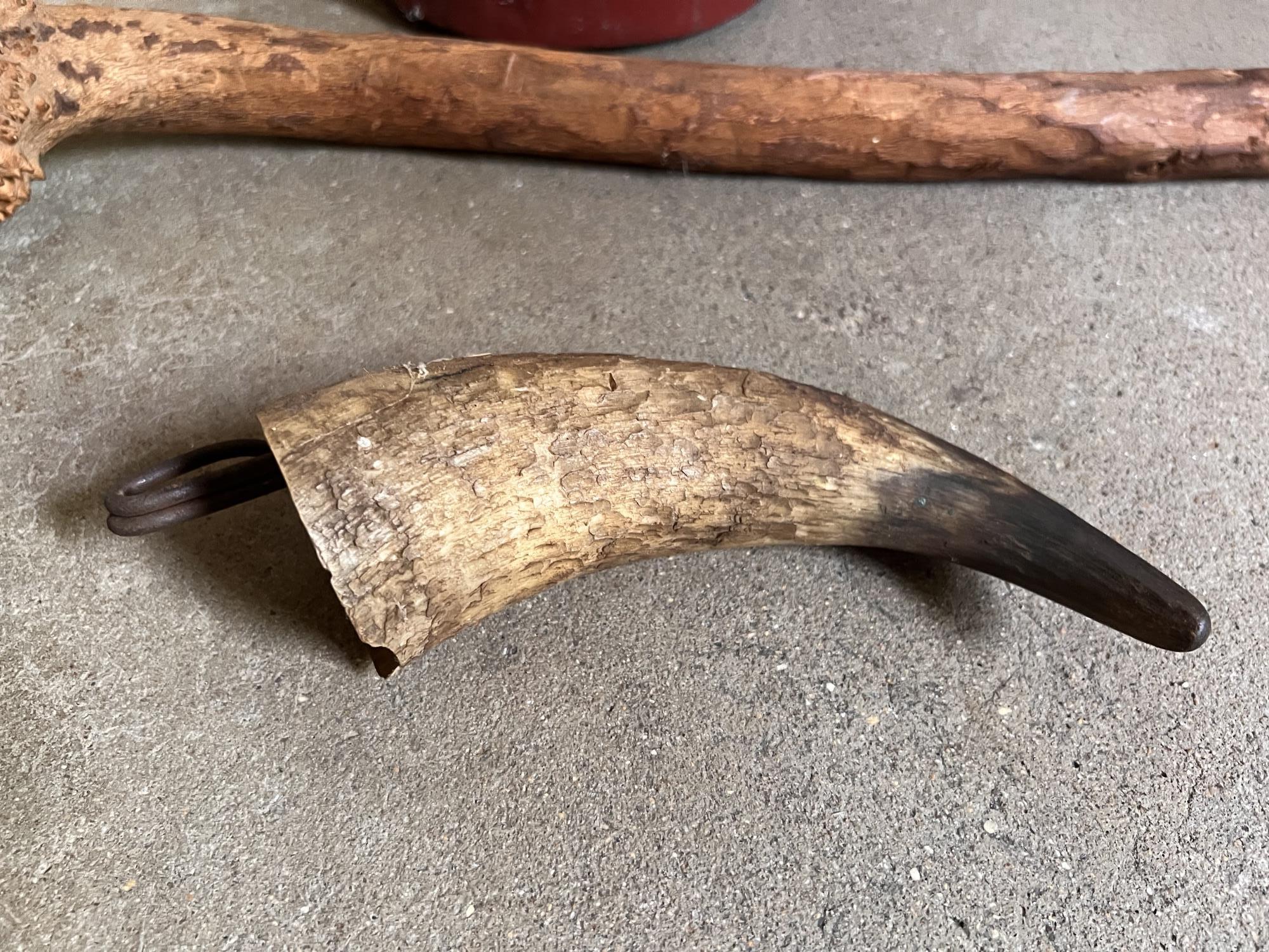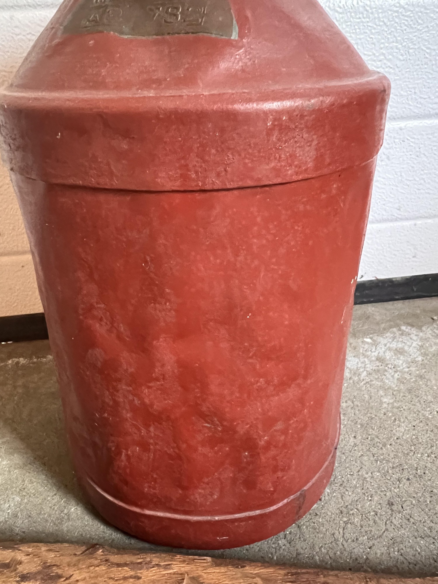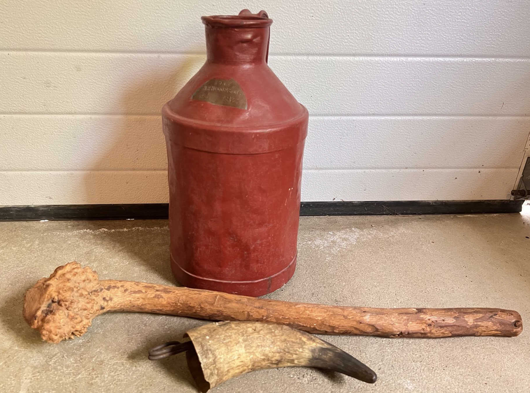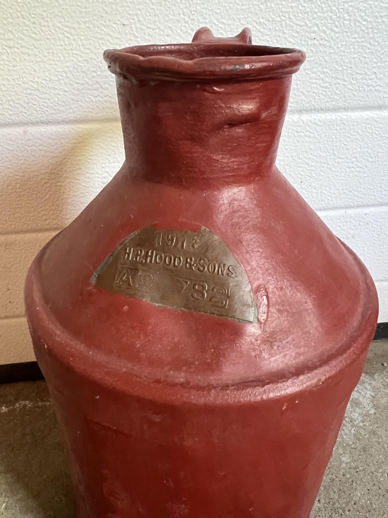 Club 24 inches, Milk tin with H.P. Hood & Son label 15 inches Condition: Milk tin dented and painted, wear to cup
