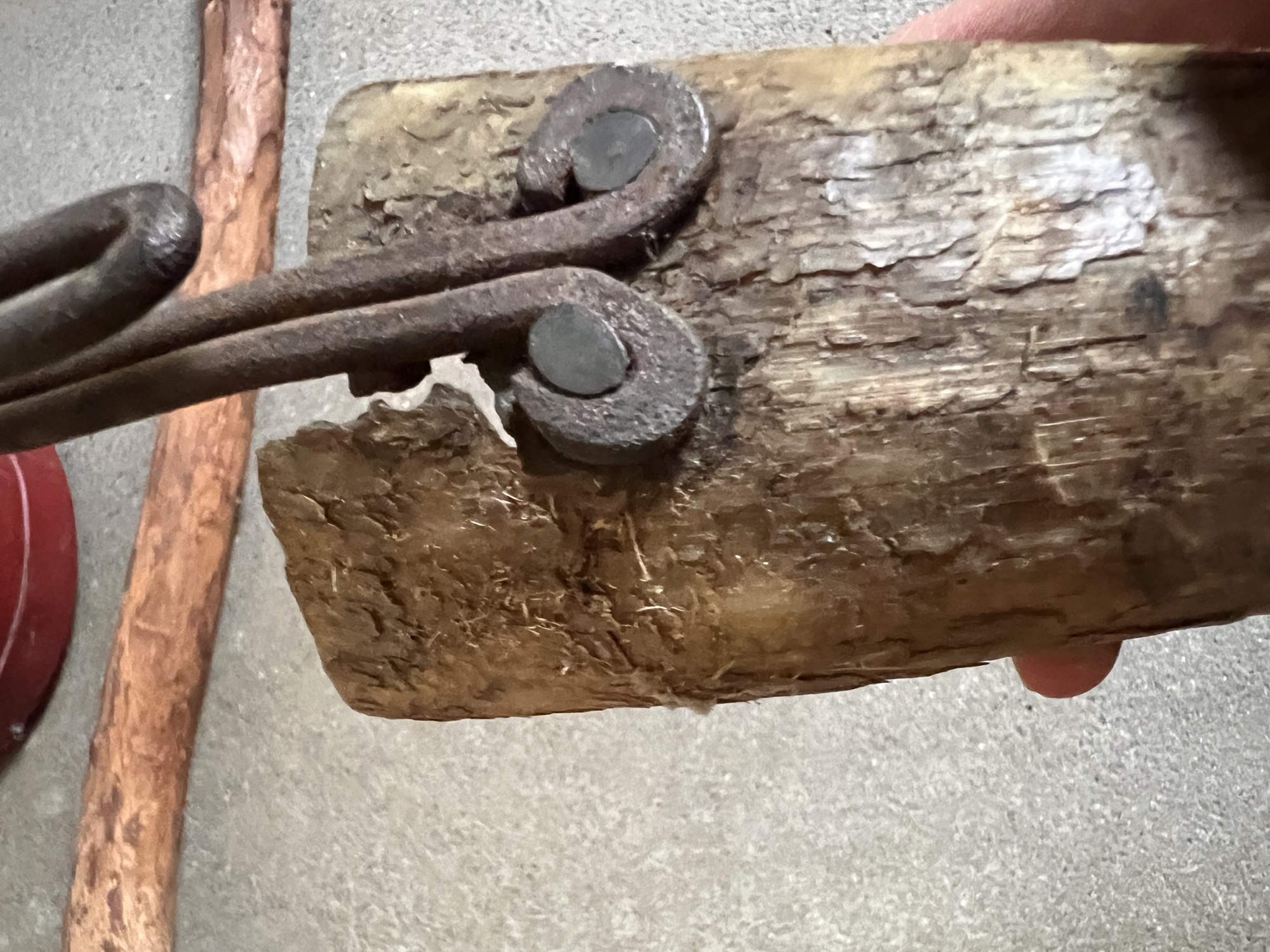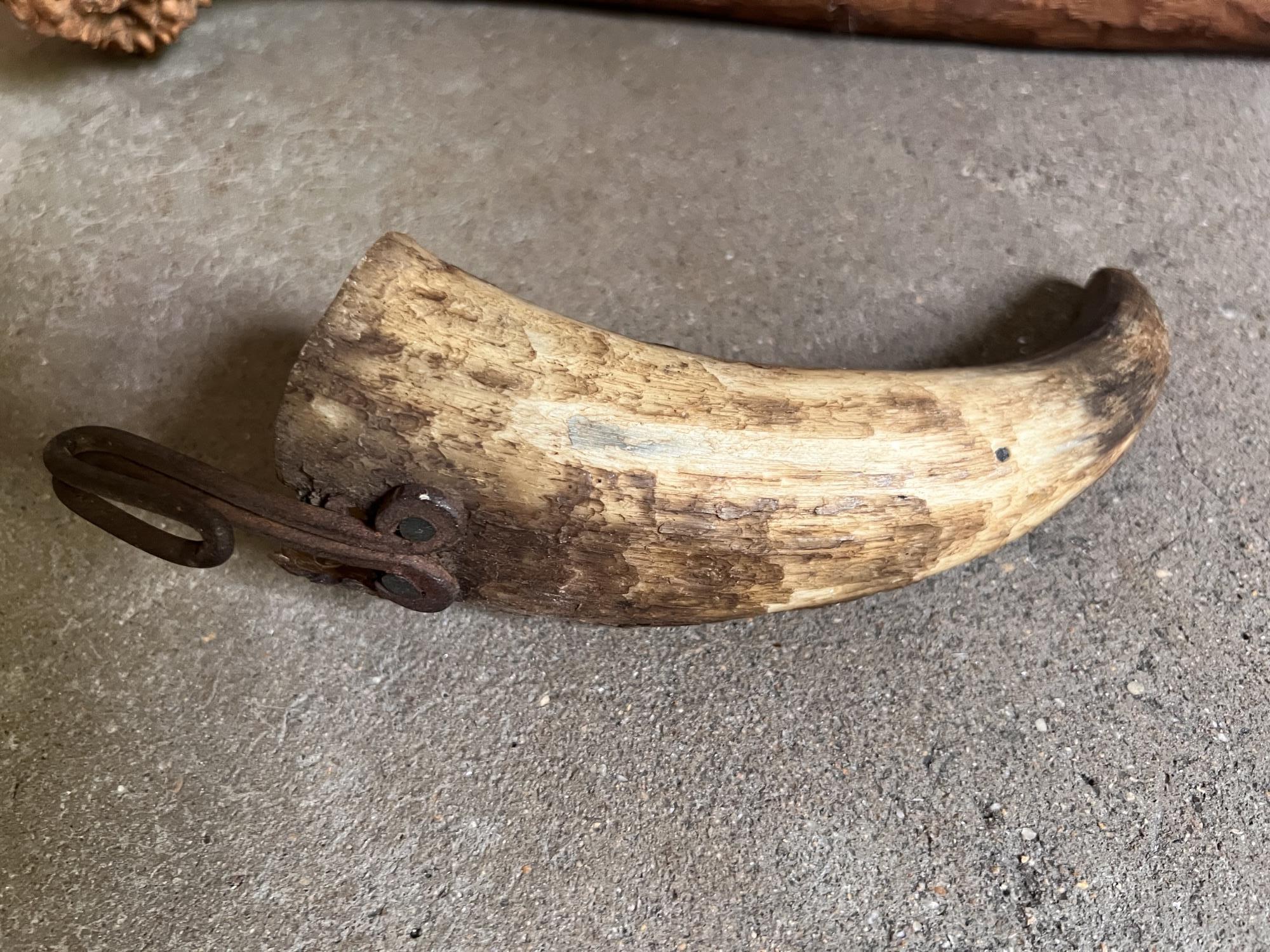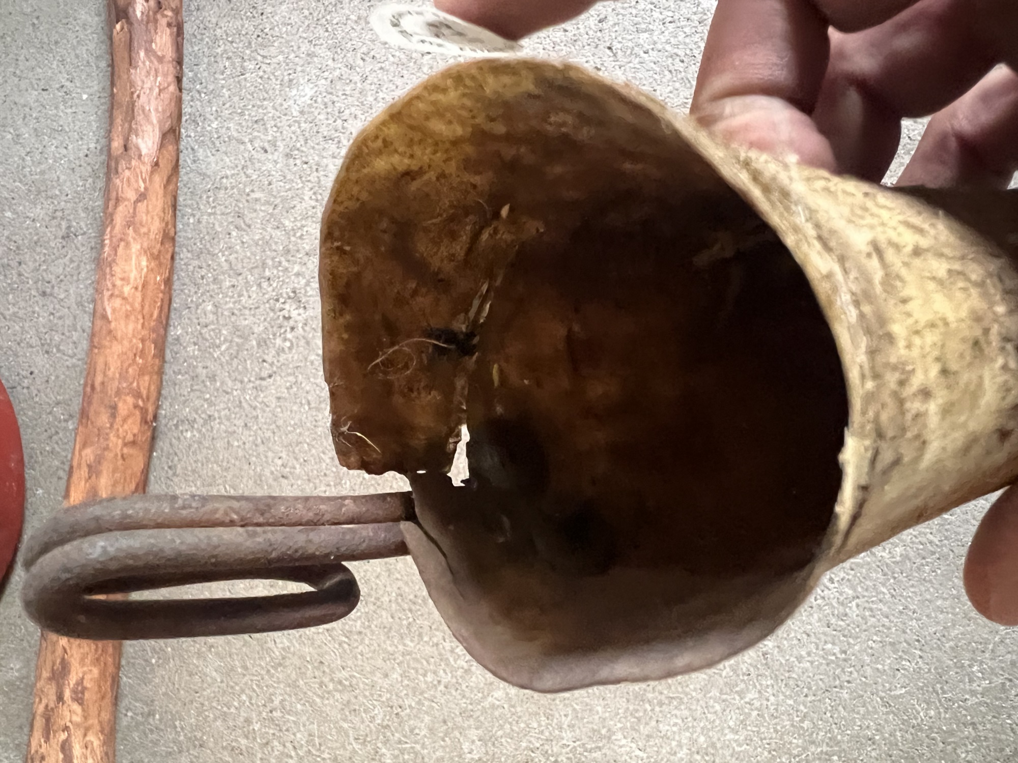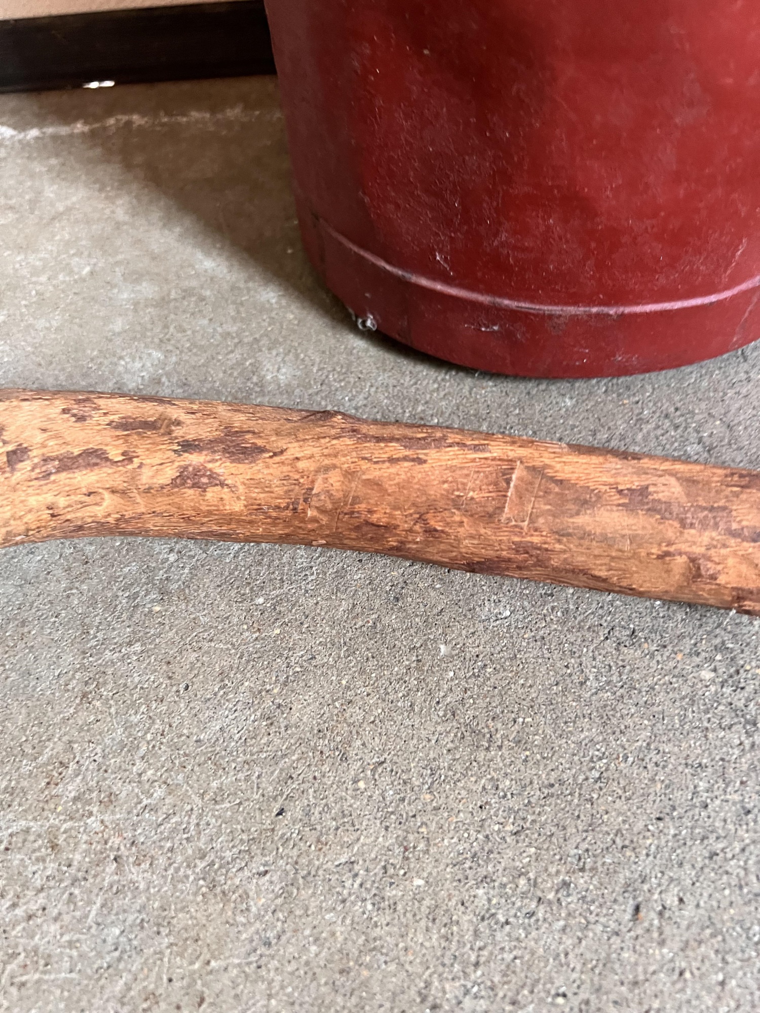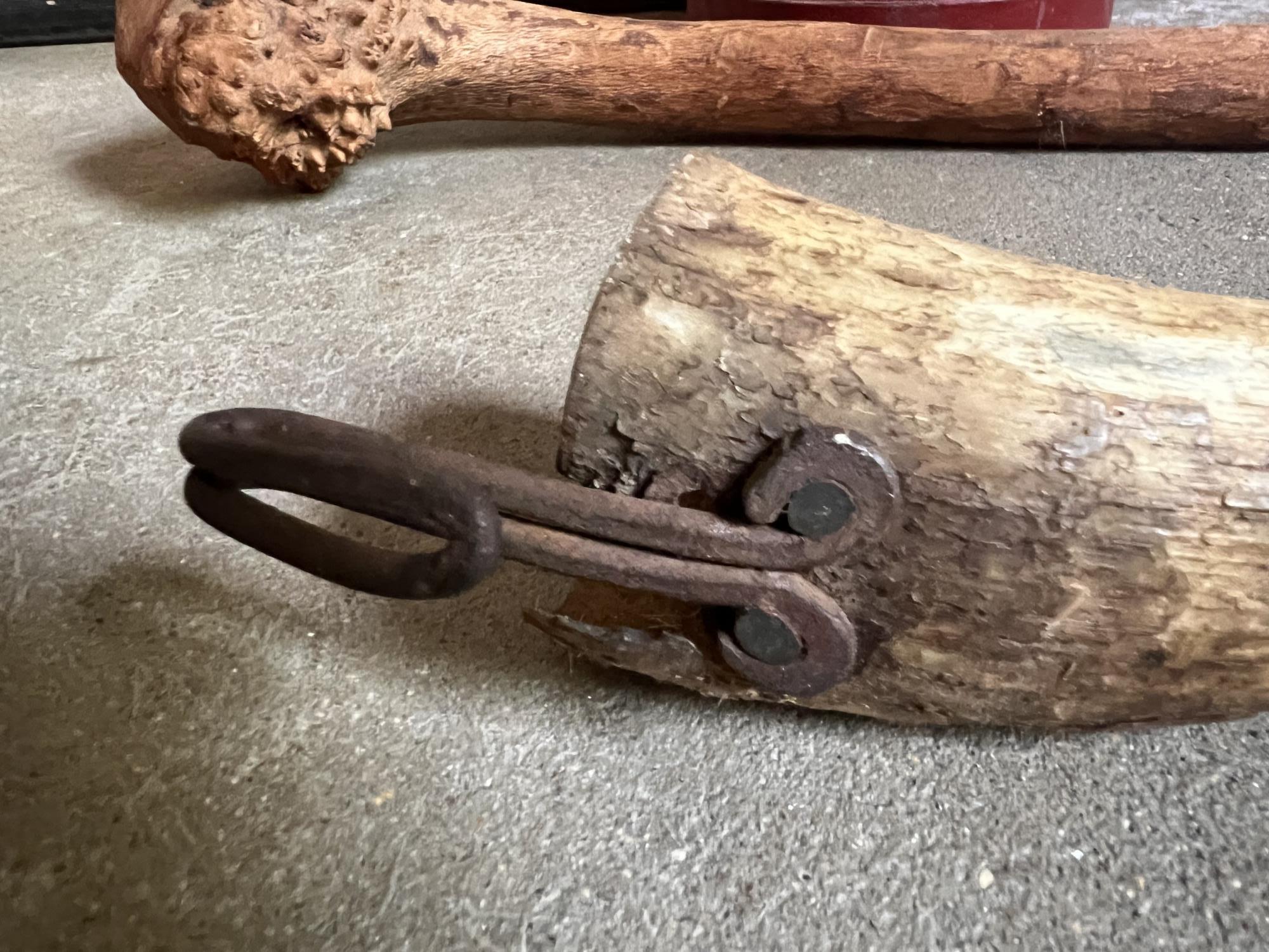 Club 24 inches, Milk tin with H.P. Hood & Son label 15 inches Condition: Milk tin dented and painted, wear to cup