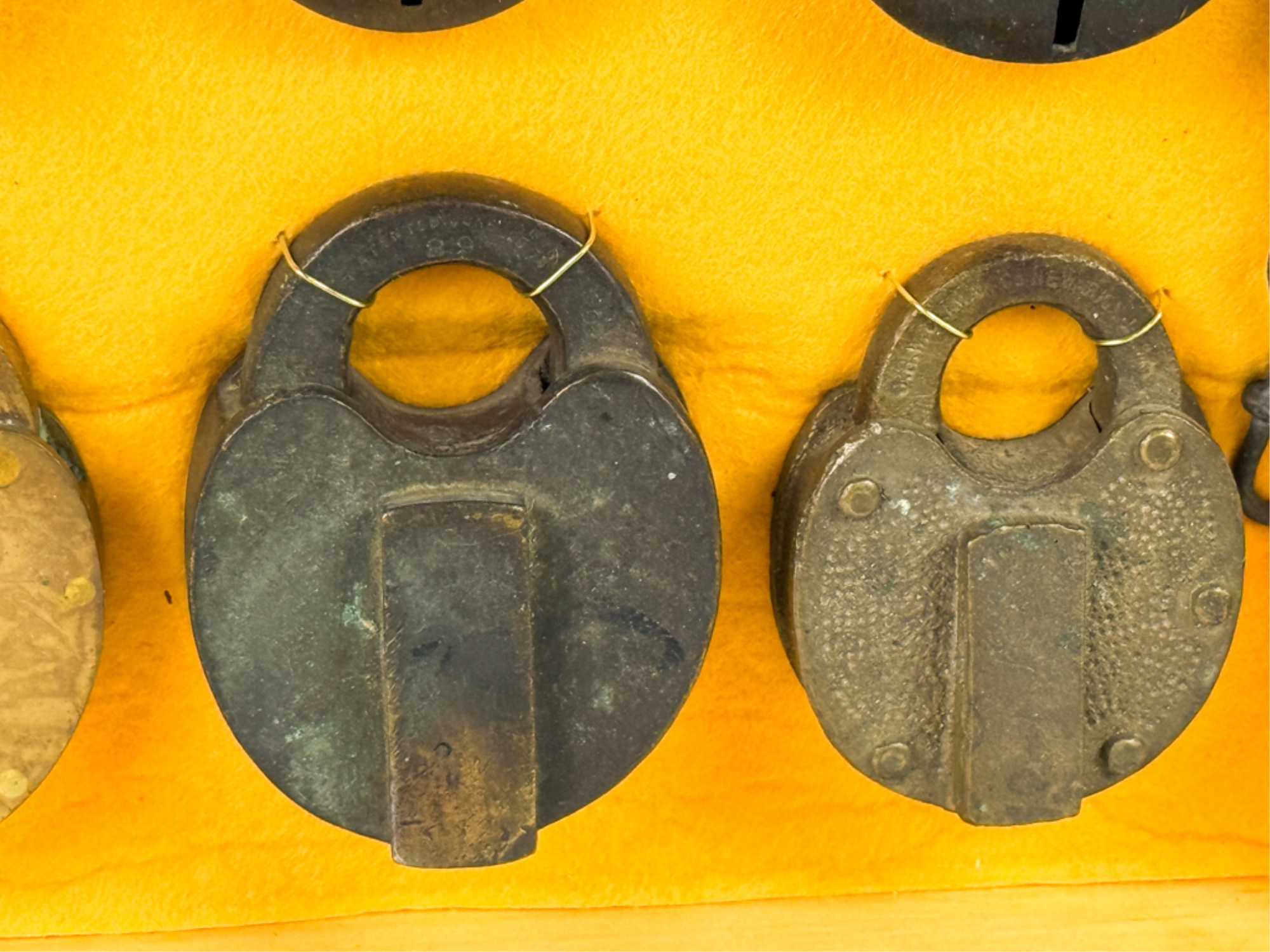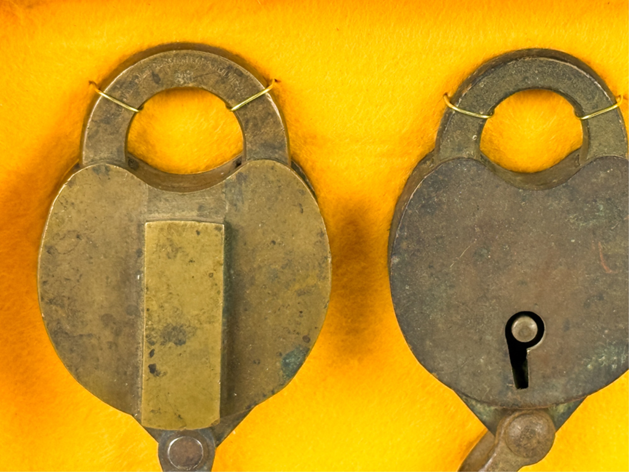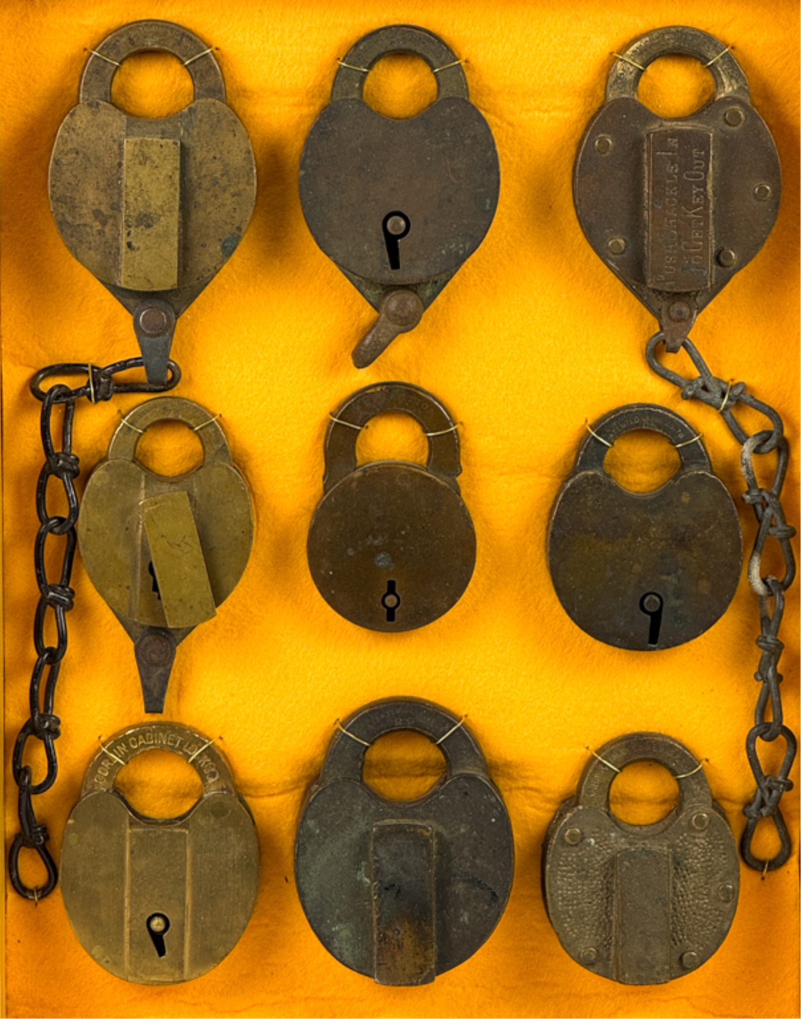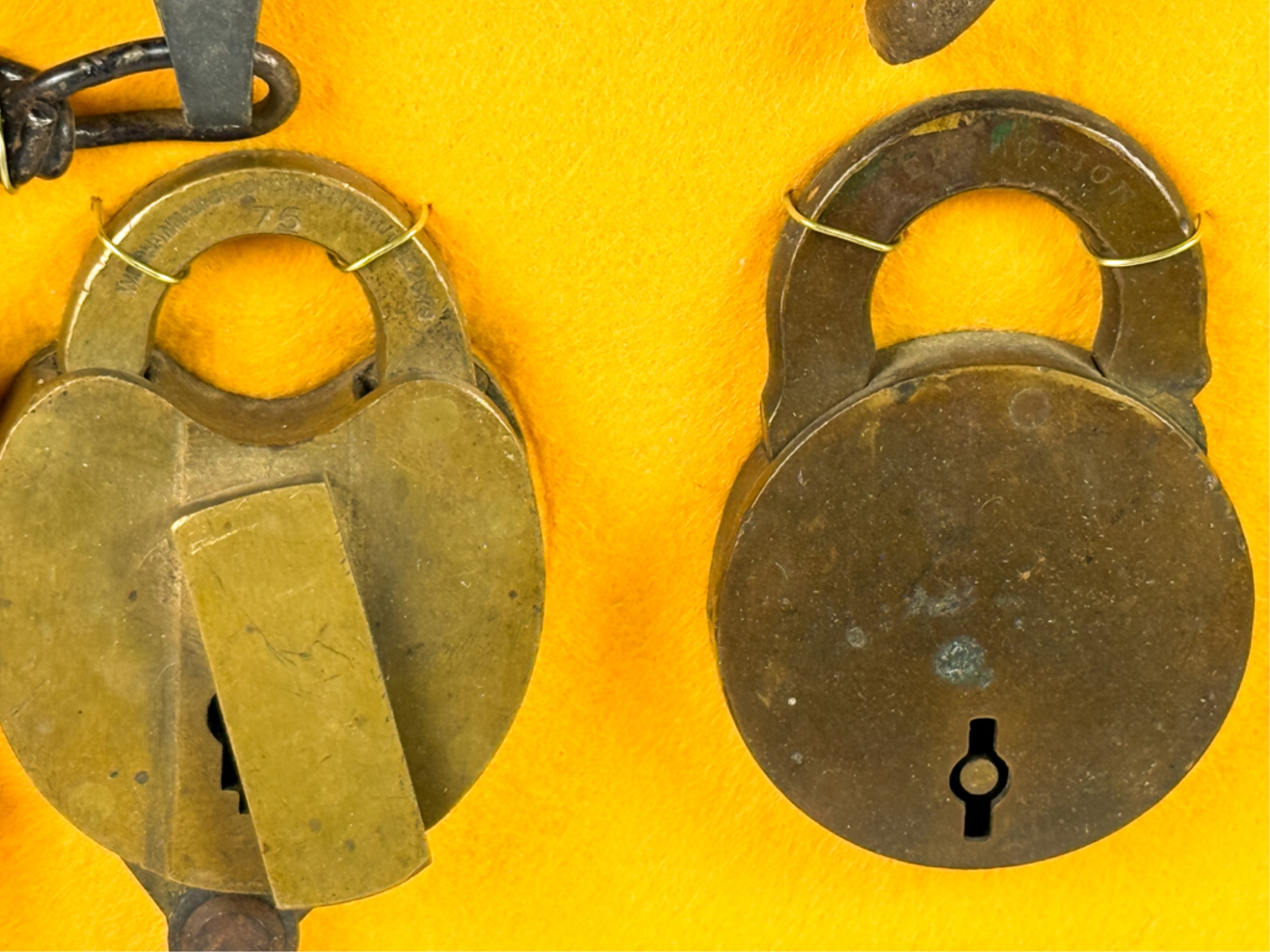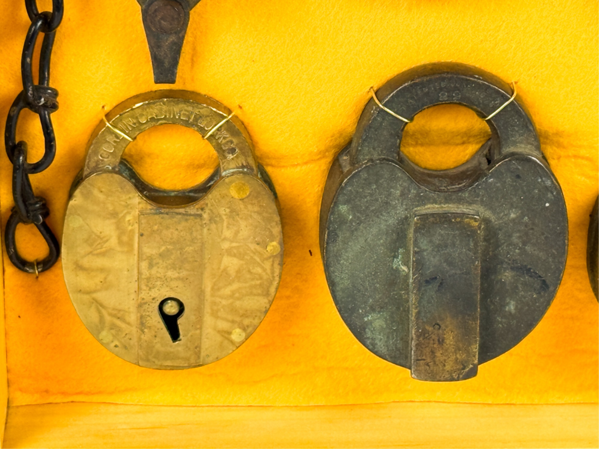 Brooklyn manufactured, Eagle, Corbin, etc. Largest measures 4 inches. Condition: Good. Keys absent. See photos. Temp No 4280