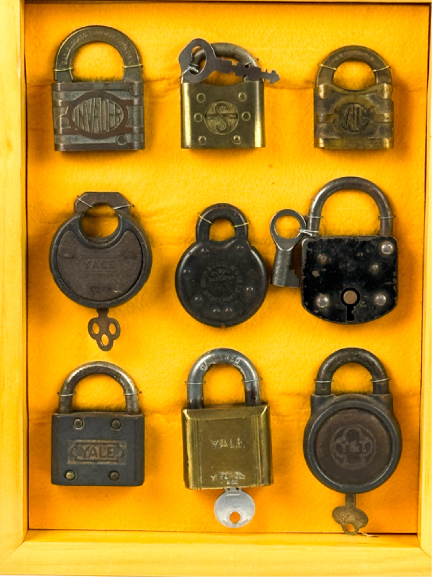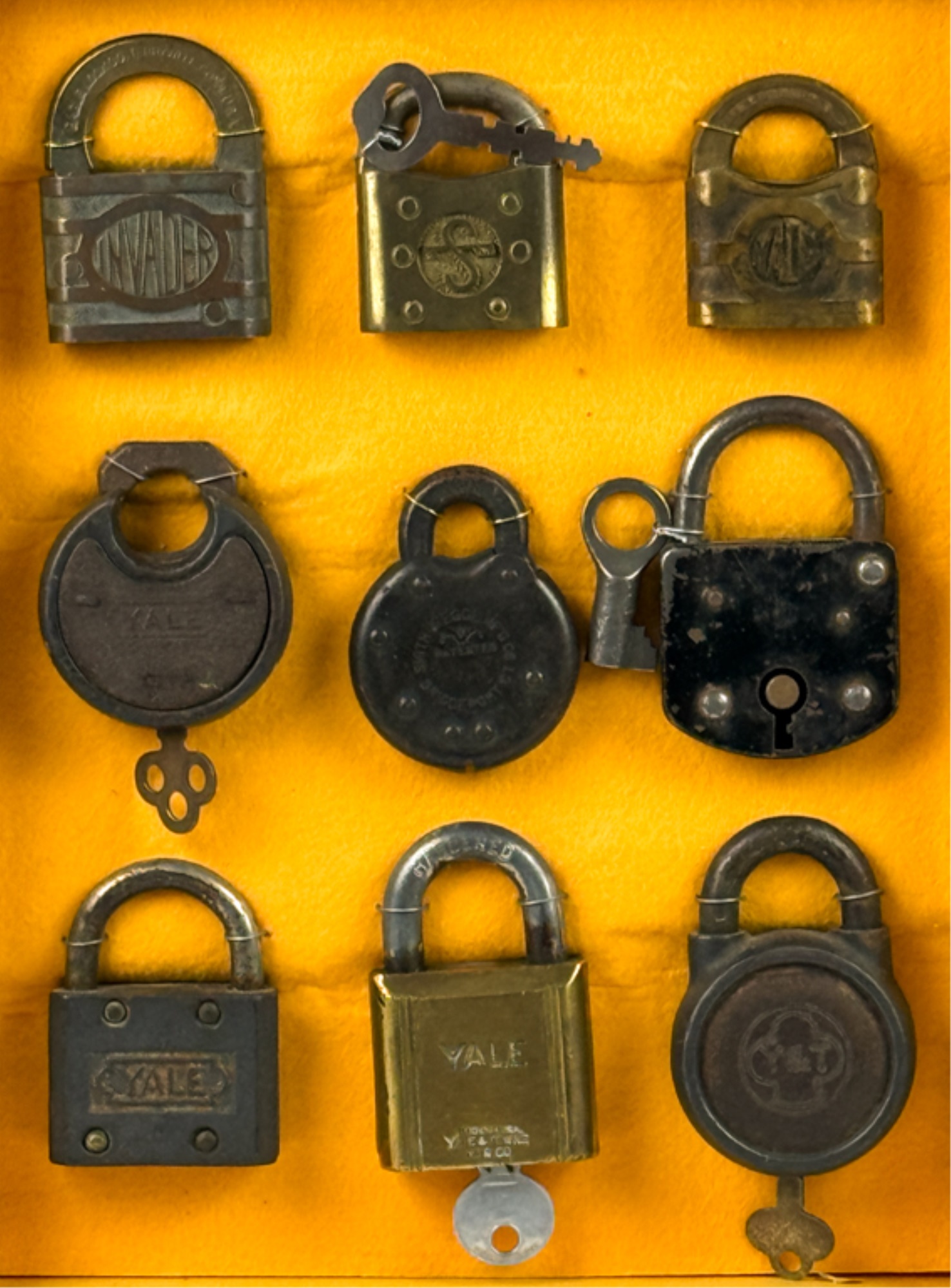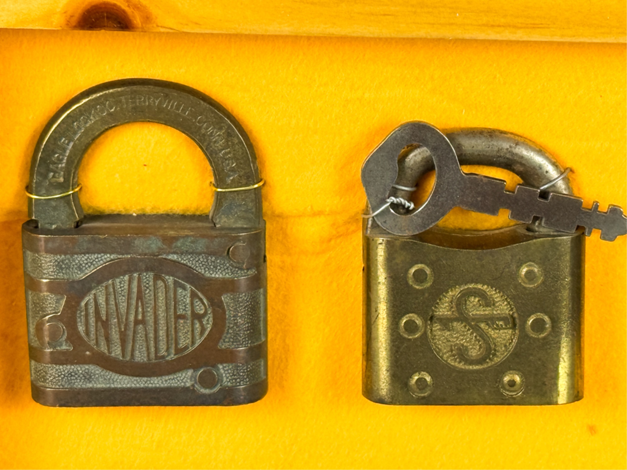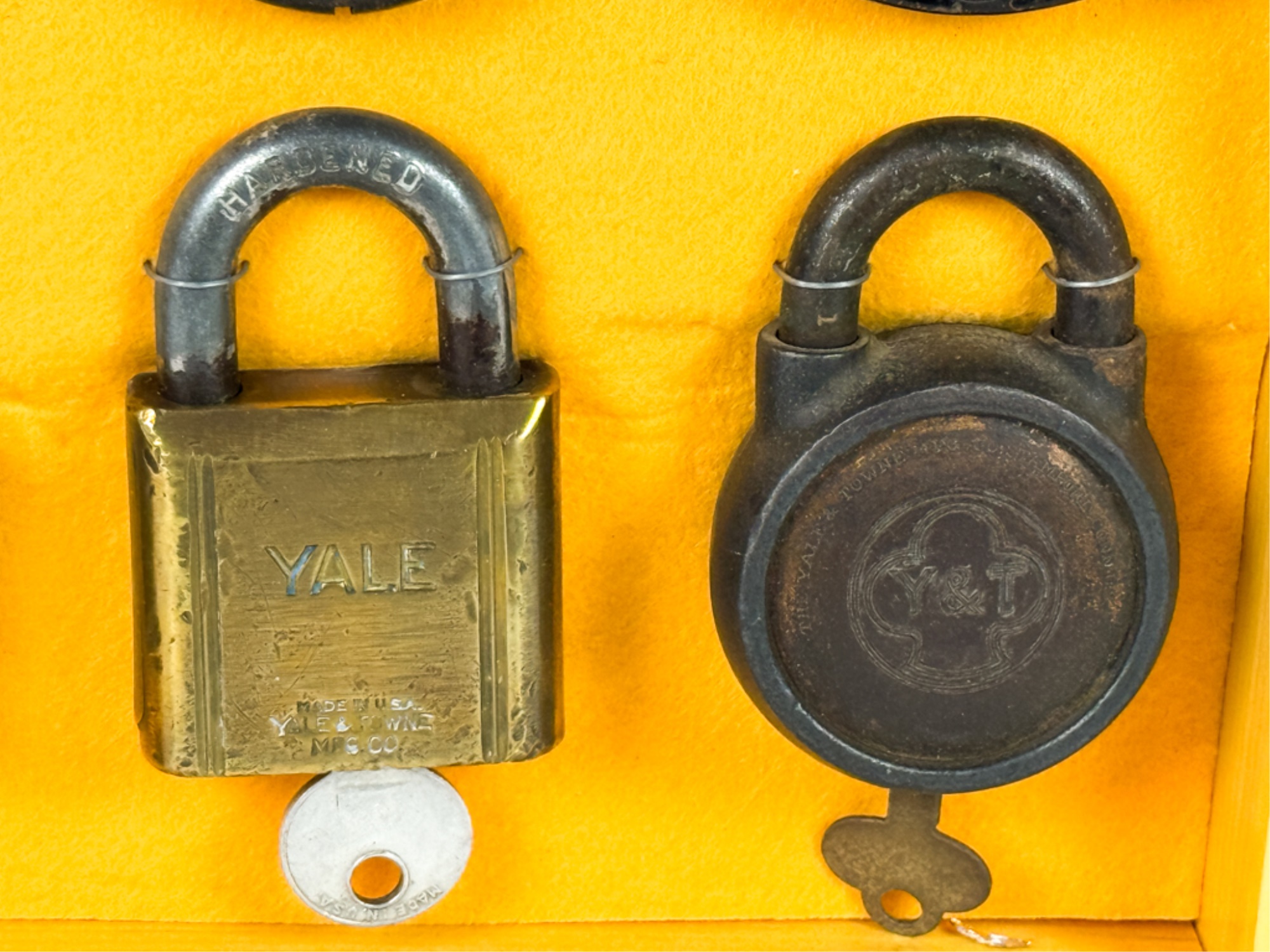 Invader, Yale, Smith & Egge, etc. (5) With keys. Largest measures 3 1/4 inches. Condition: Good. Only examples with keys tested. See photos. Temp No 4278