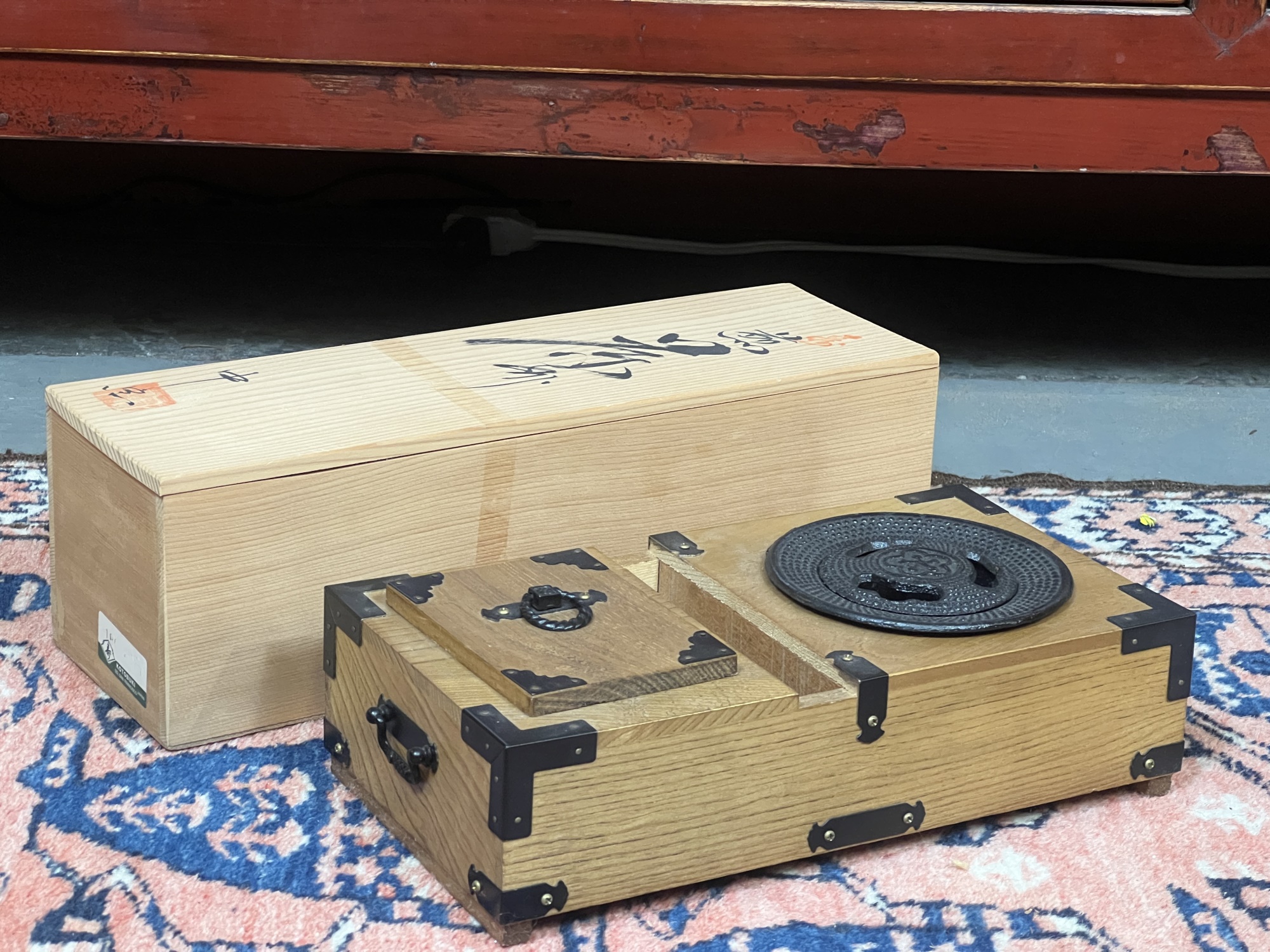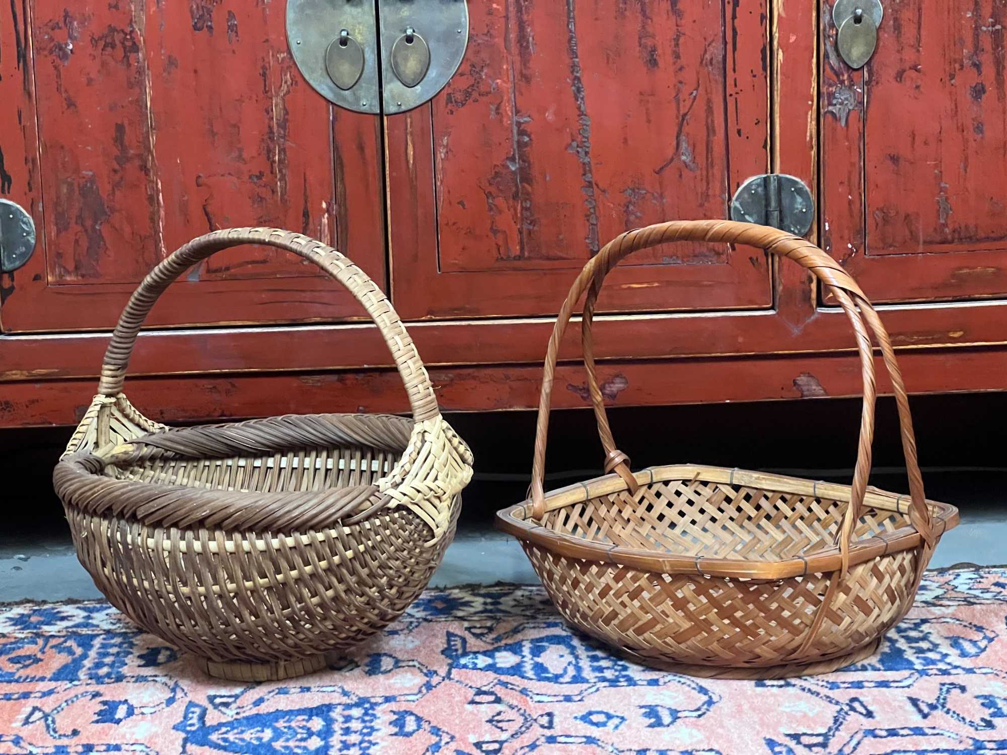 Baskets and wooden pieces. Largest basket 13" x 13"