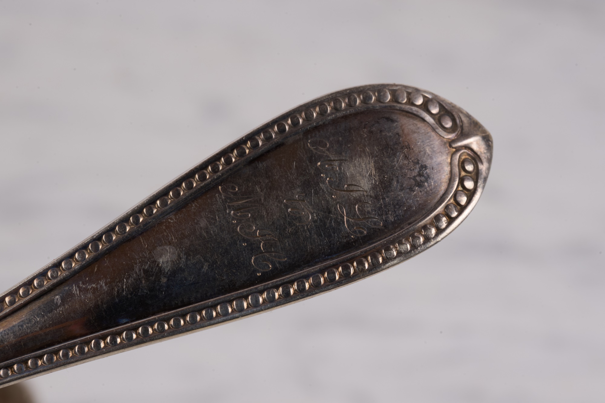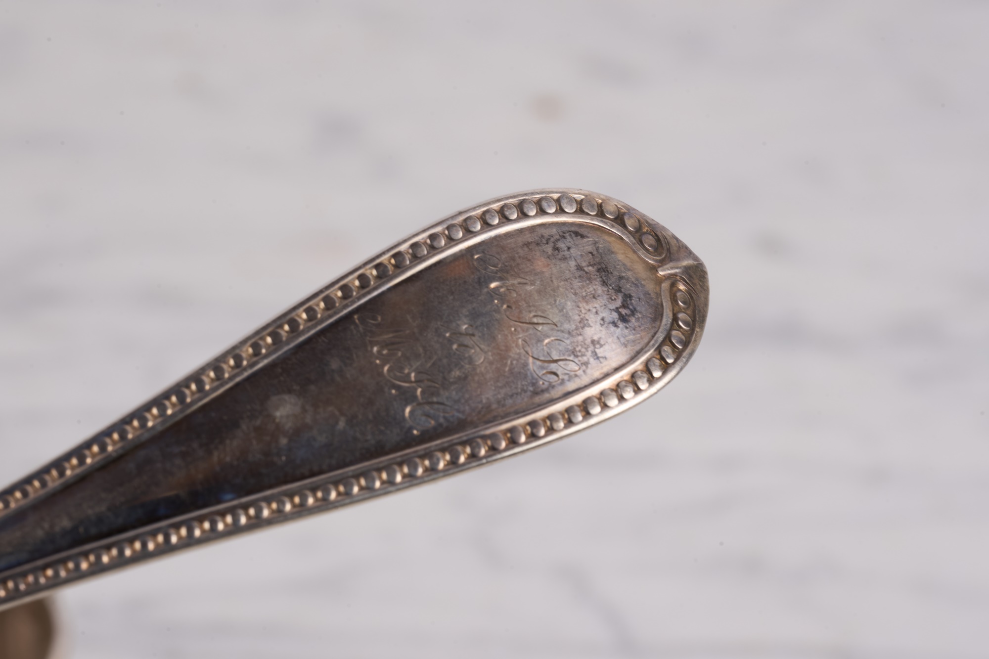 Notes: Tea strainer has a make-do handle, each piece tested except salt which is marked