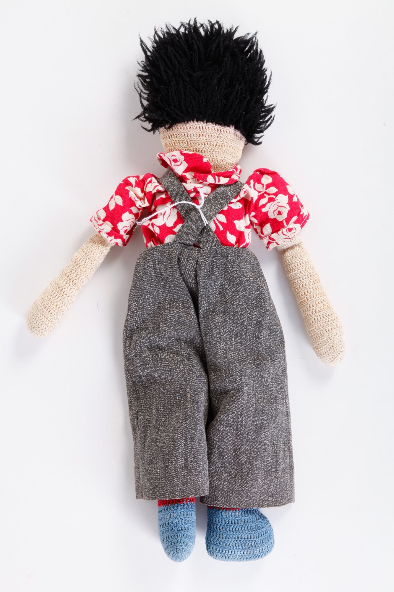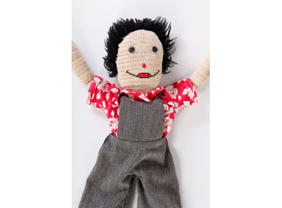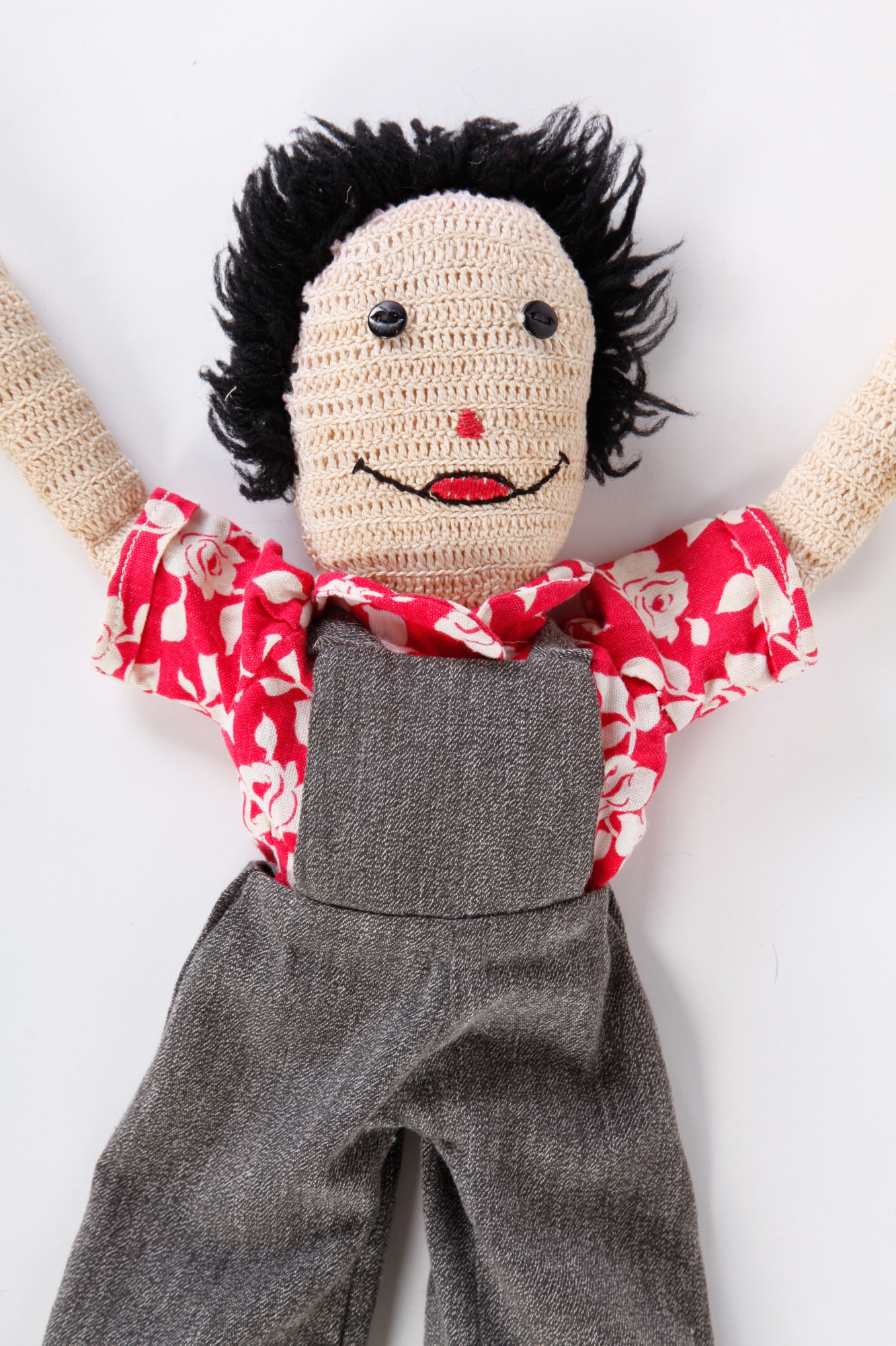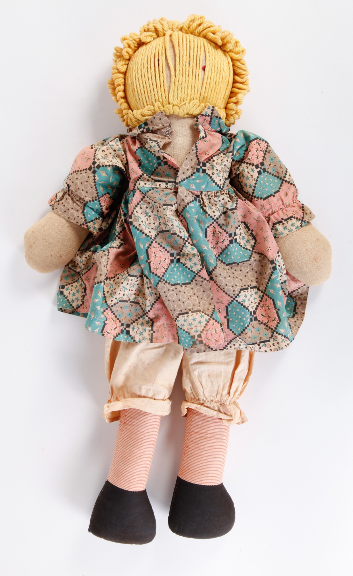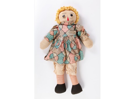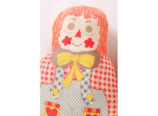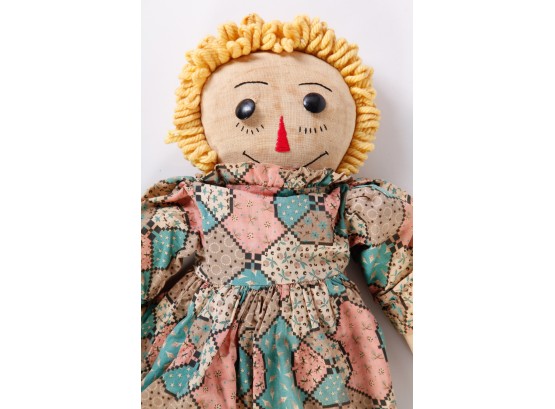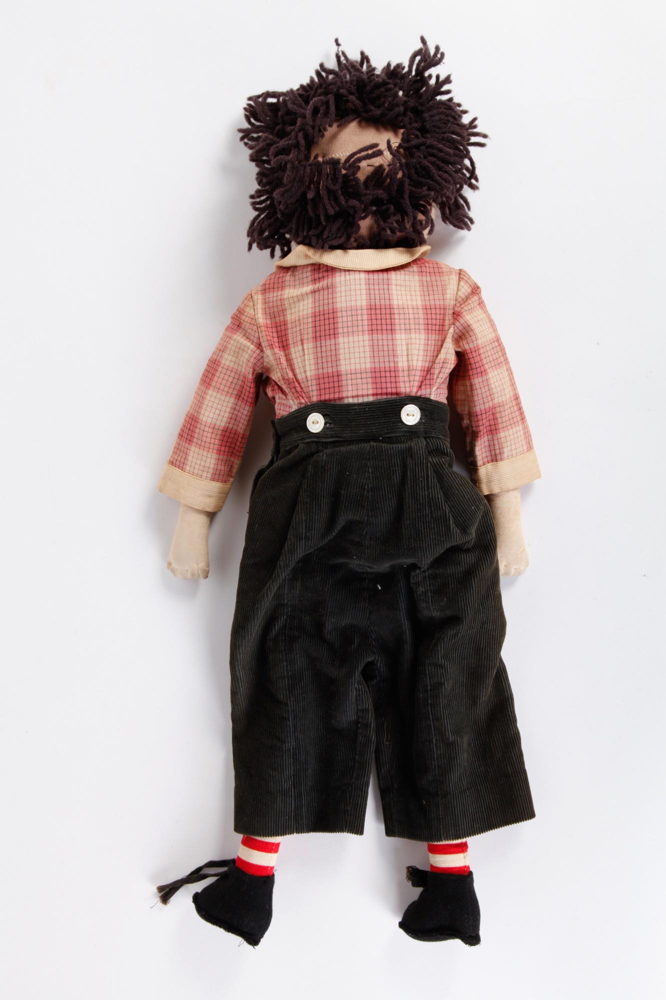 Consisting of 2 Raggedy Andy dolls, a Raggedy Ann doll, and a pair of male and female "Raggedy" dolls, tallest is 24 inches.