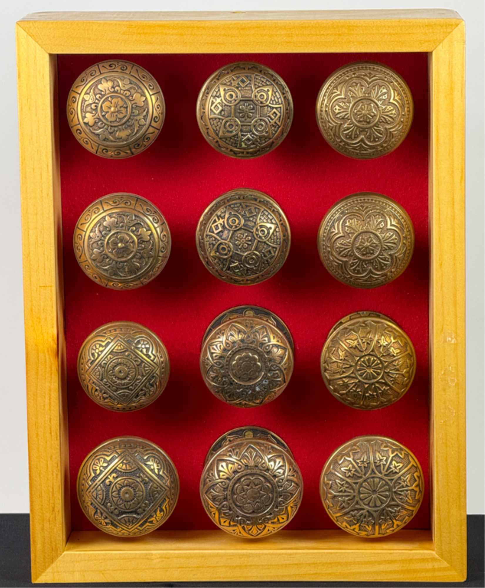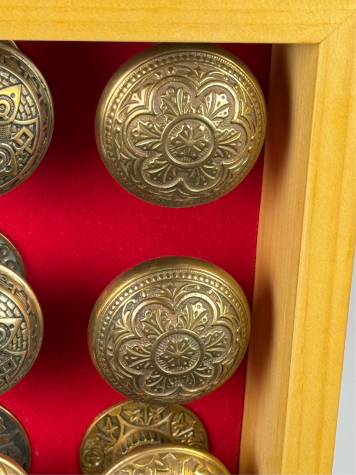Mounted in shadow box measuring 13 1/4 x 10 1/2 x 3 1/2 inches. Condition: Good. Temp No 50a