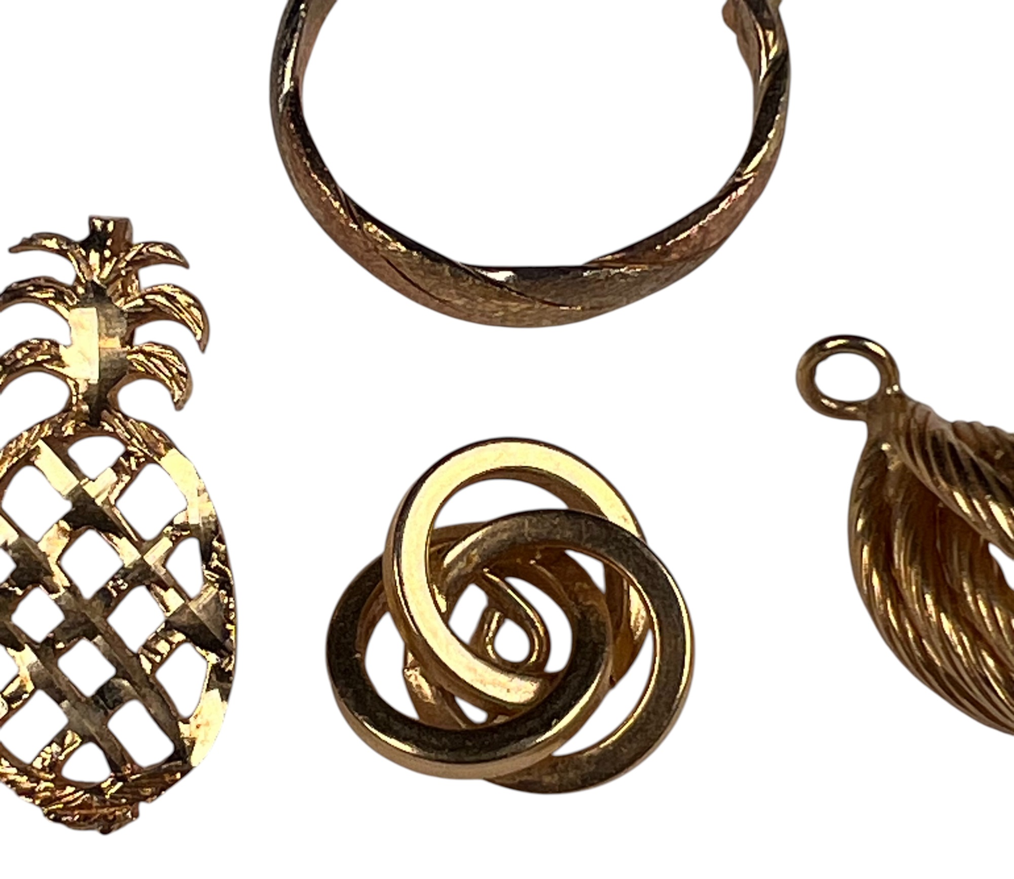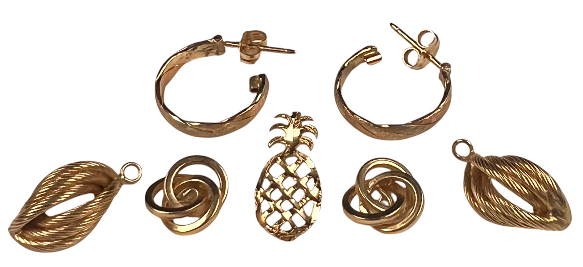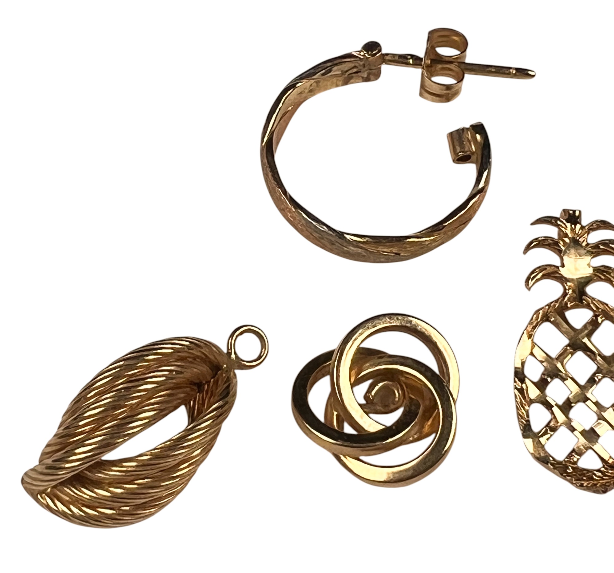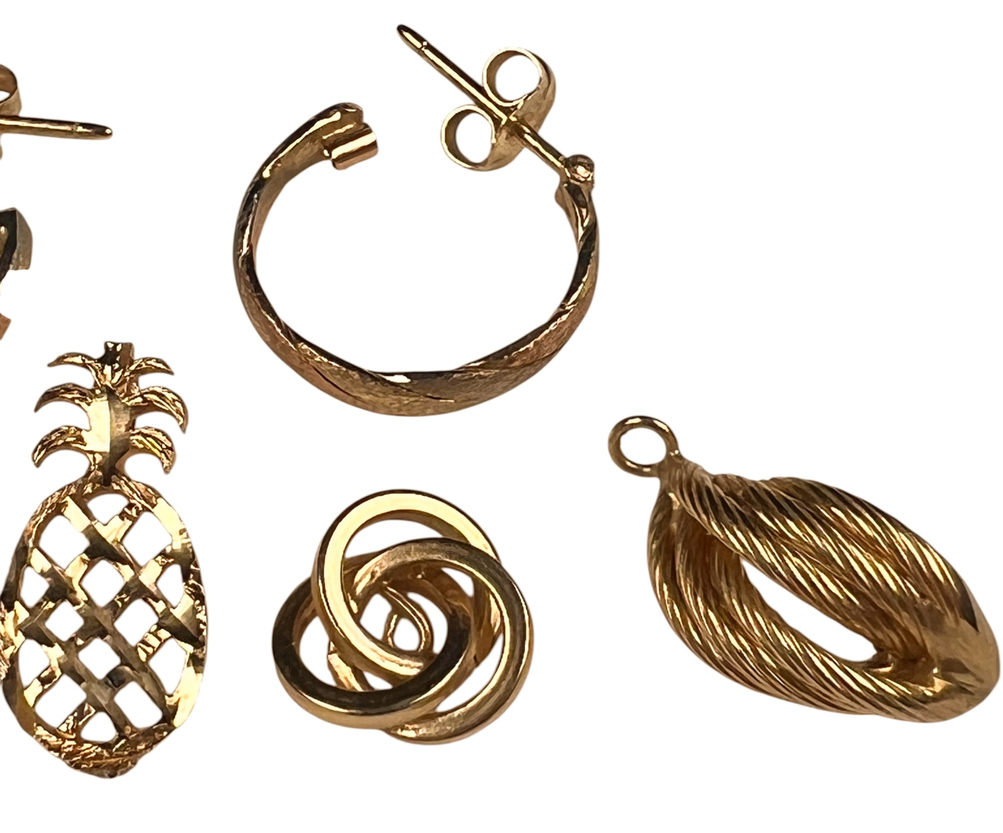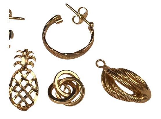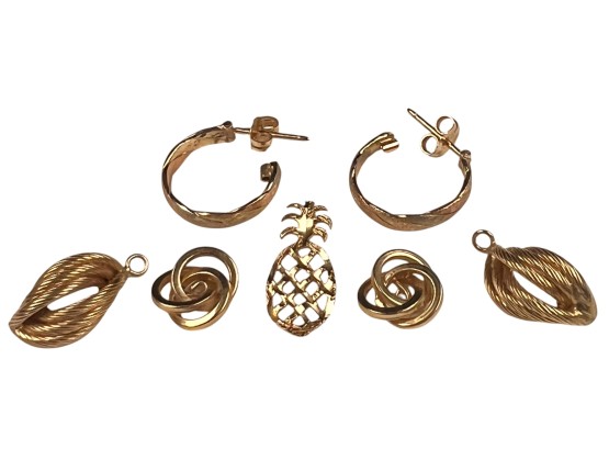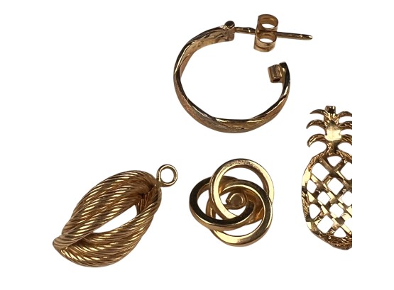 (5) 14K gold pendants/charms and a pair of earring. All marked 14K/585. 4.6 DWT Condition: Good, used