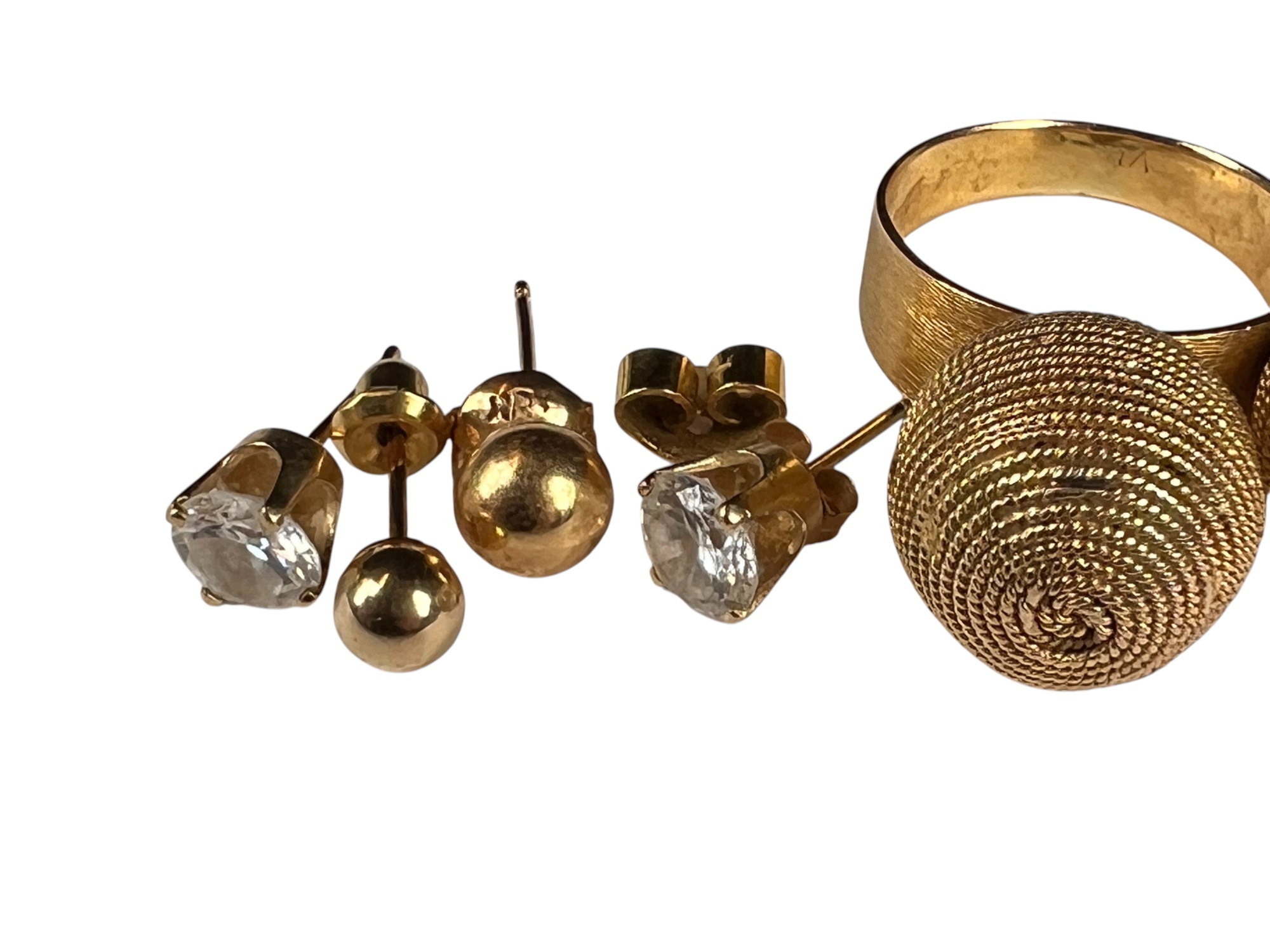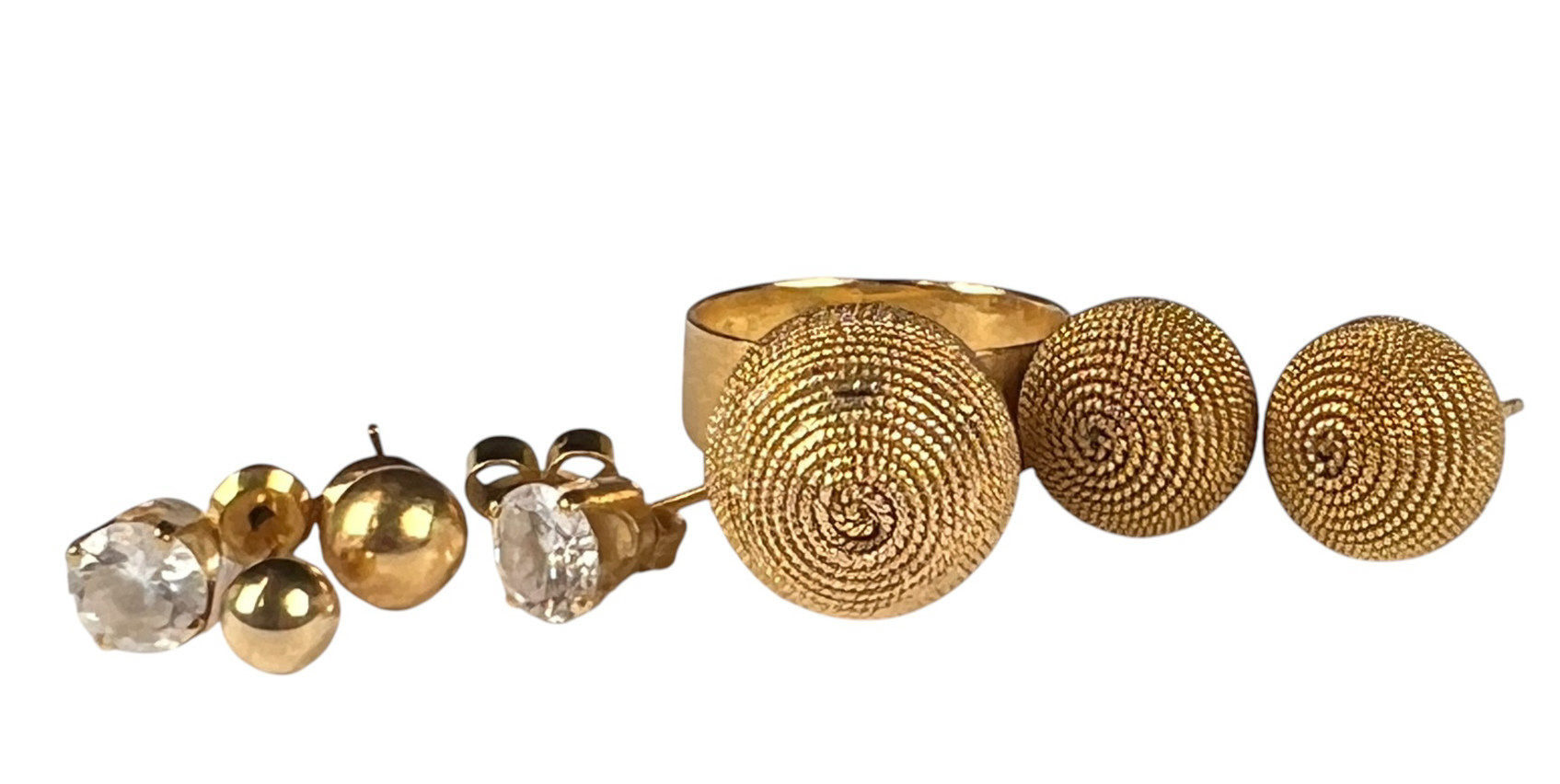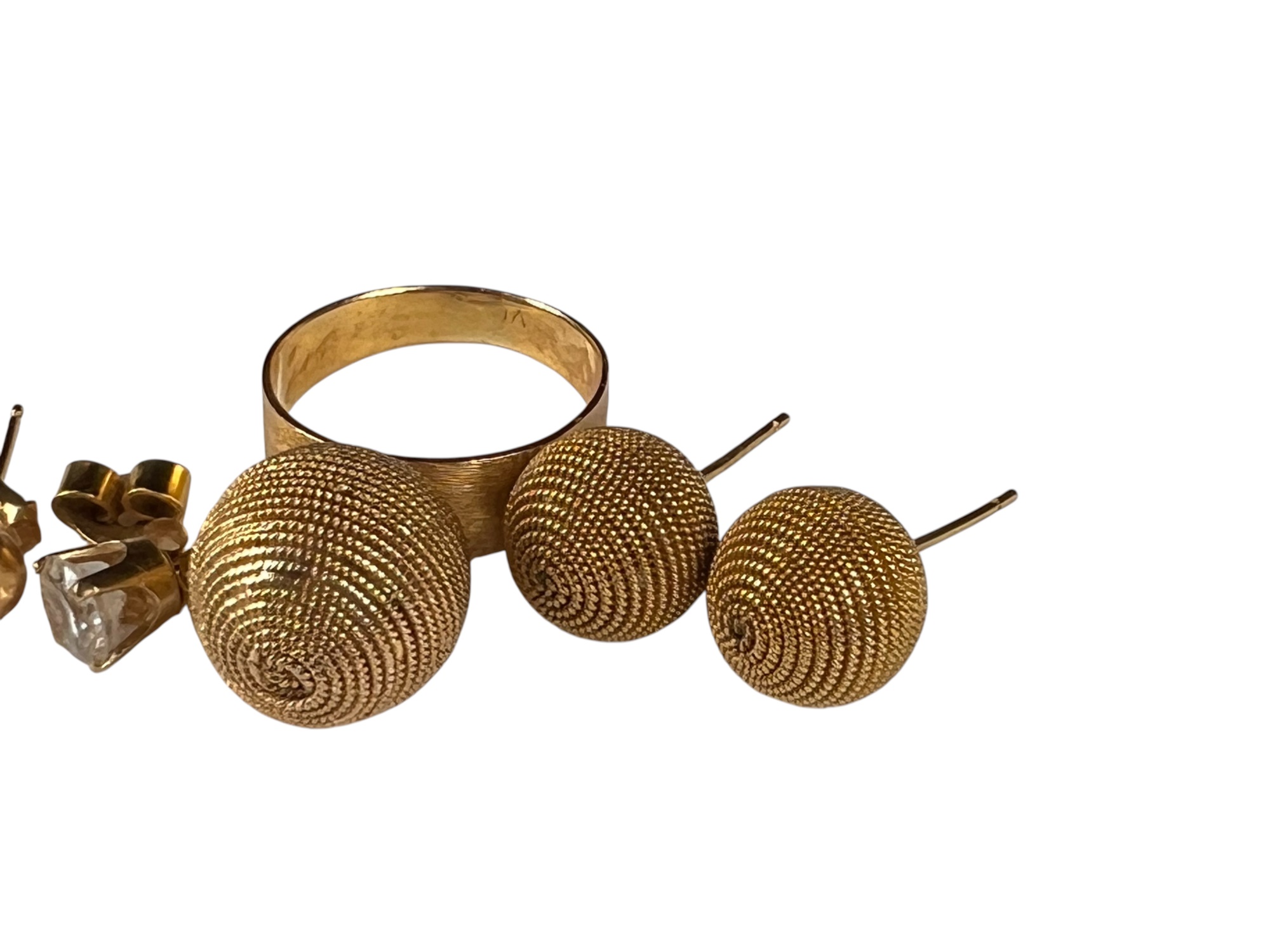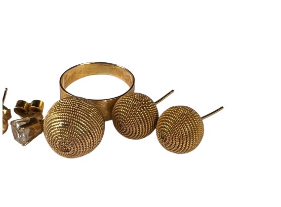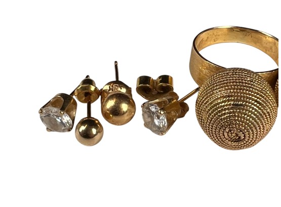 All marked or test 14K. Ring size 6 1/2. 10 DWT overall Condition: Good, used