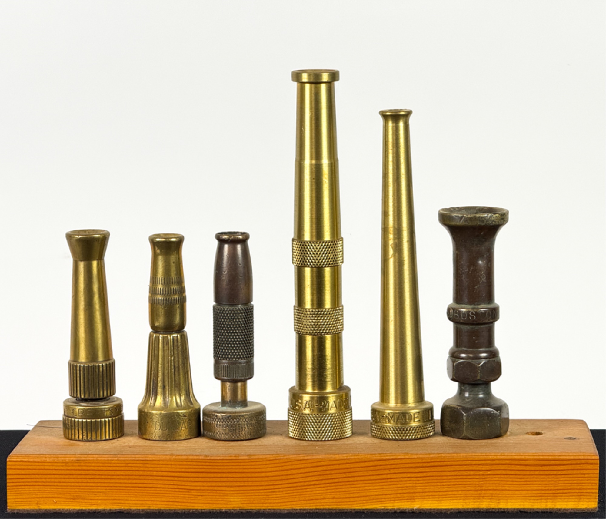 Boston, Chicago, Dunlap, etc. Tallest measures 7 inches. With custom display stand. Condition: Expected wear from use. Temp No 4023