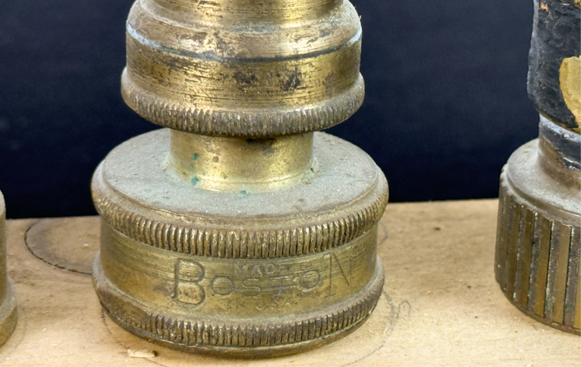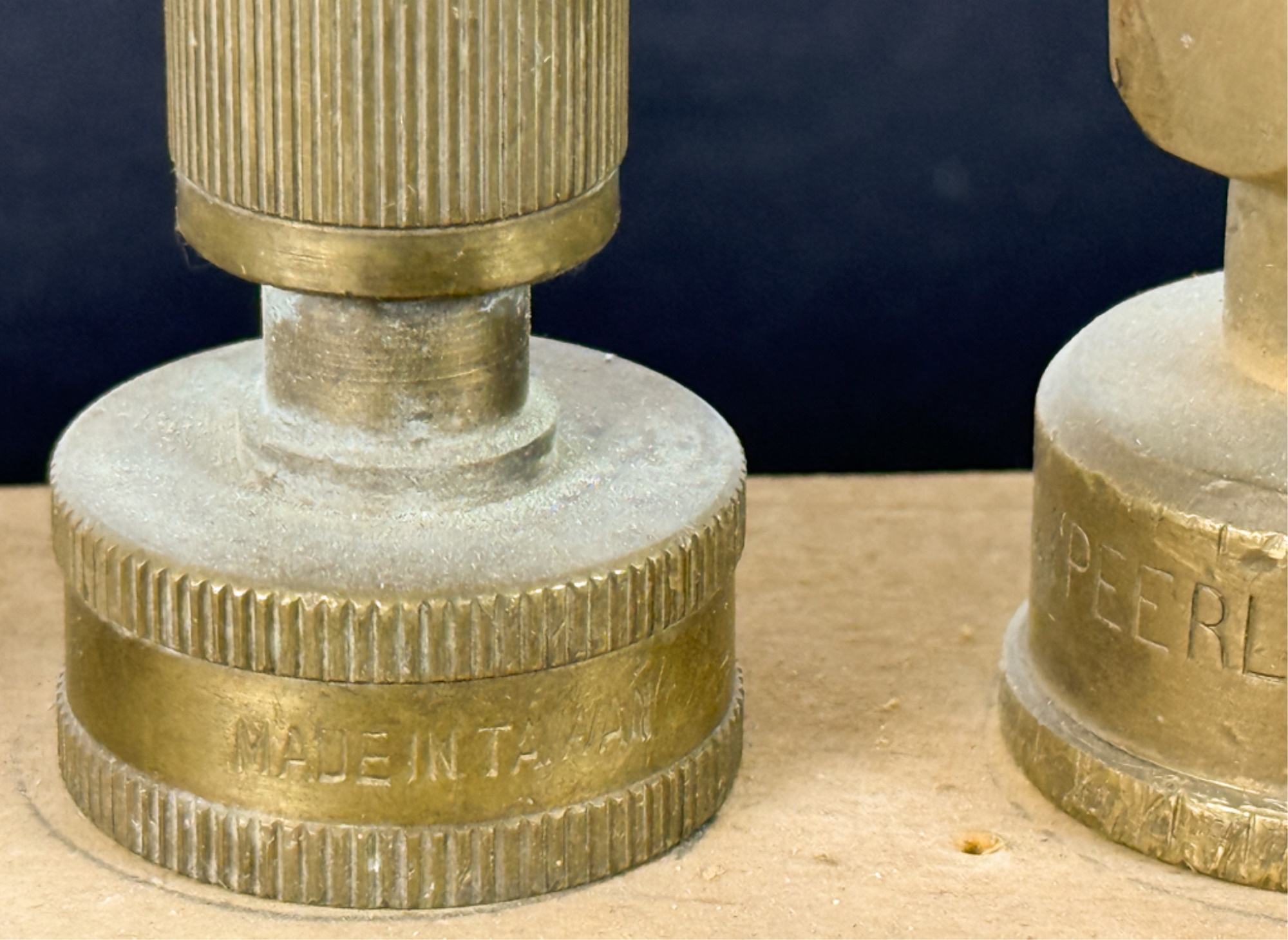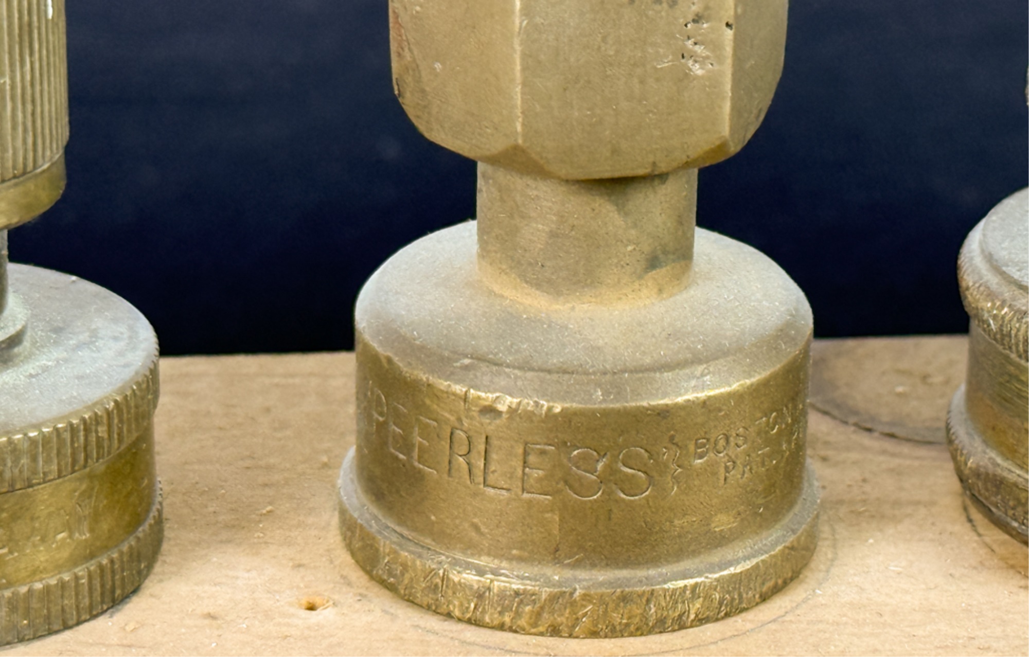 Peerless, Boston, Sun Mate, etc. Tallest measures 6 inches. With custom display stand. Condition: Expected wear from use. Temp No 4024