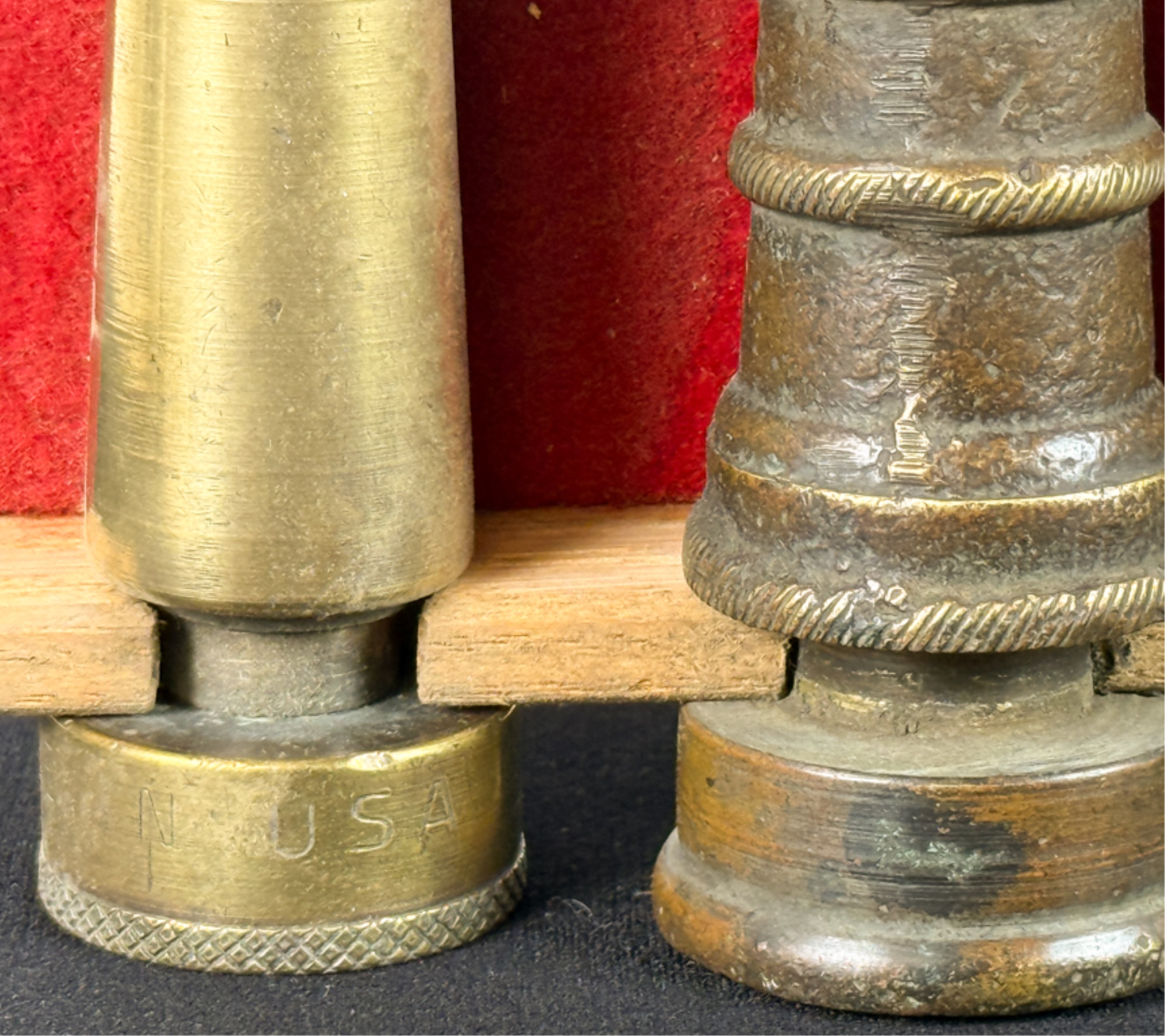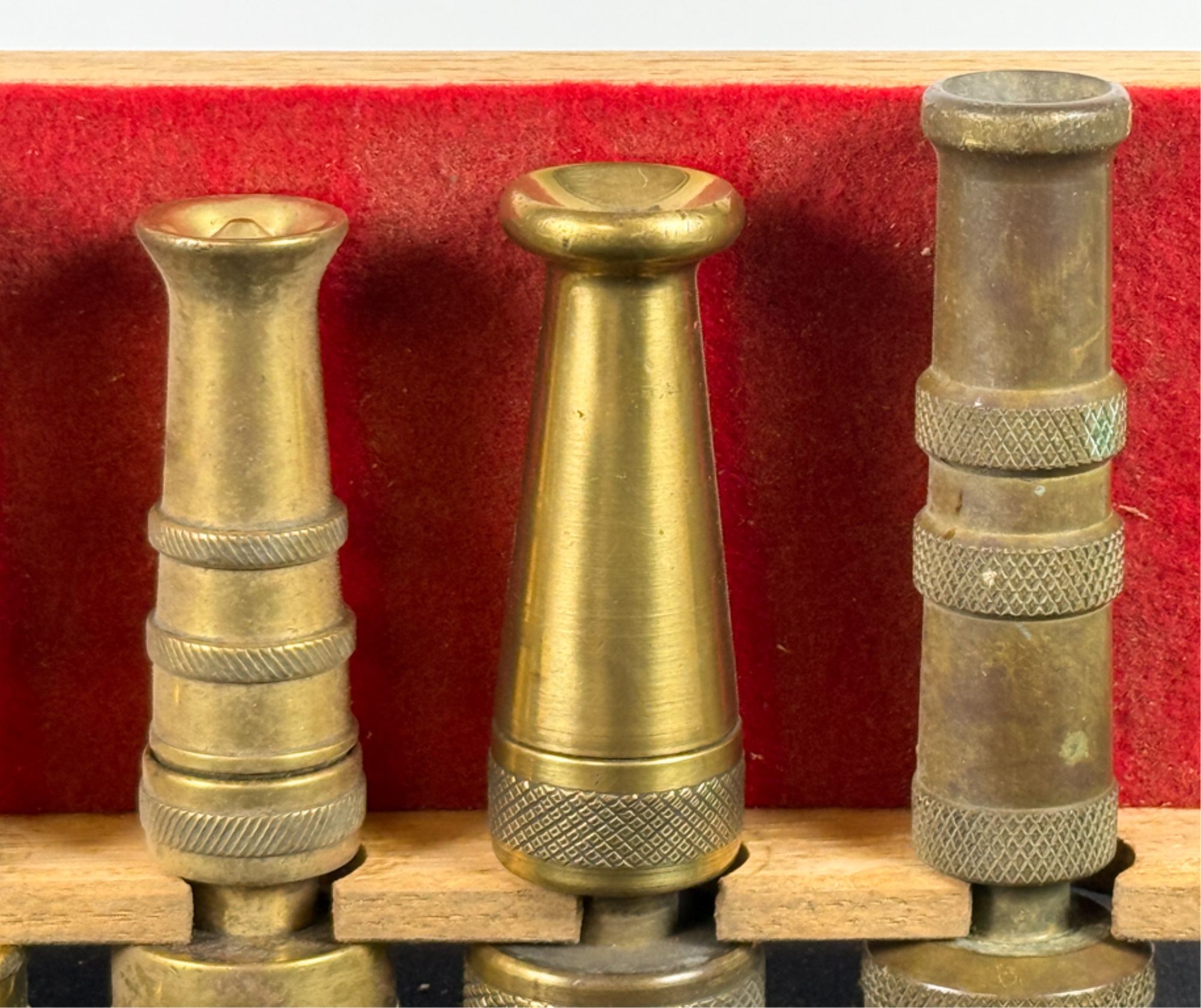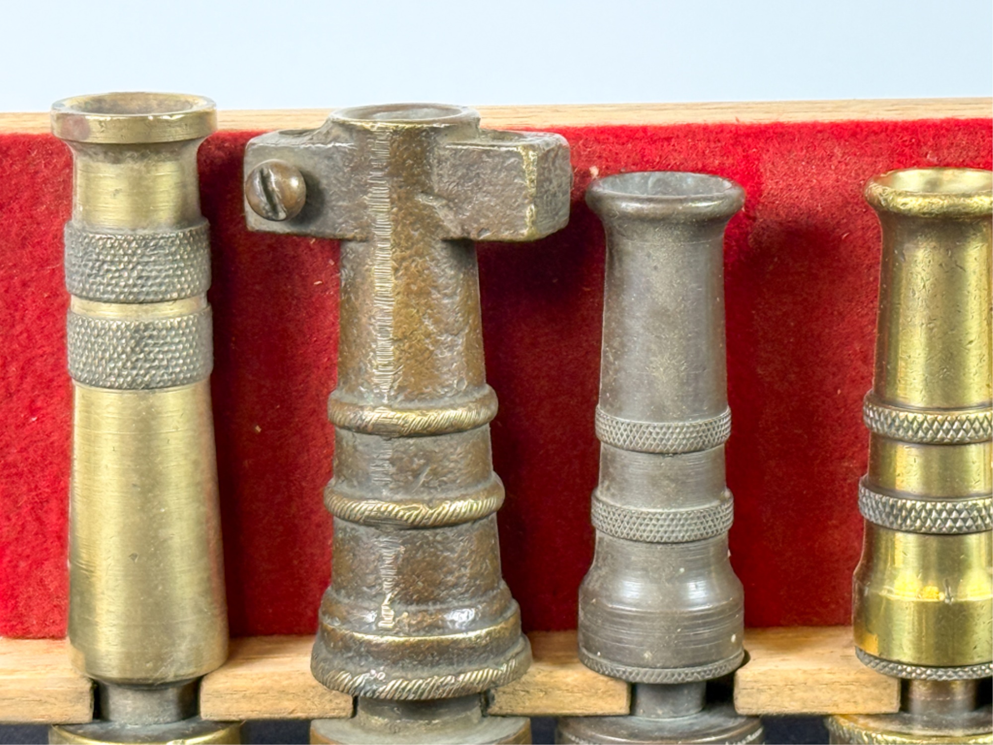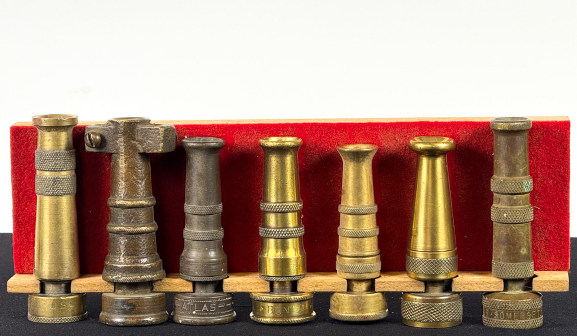 Somerset, Atlas Brass, Dunlap, etc. Tallest measures 4 inches. With custom display stand. Condition: Expected wear from use. Temp No 4025
