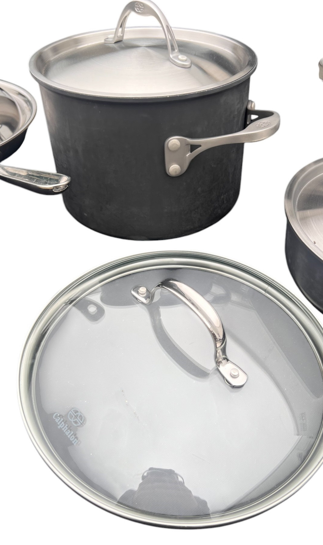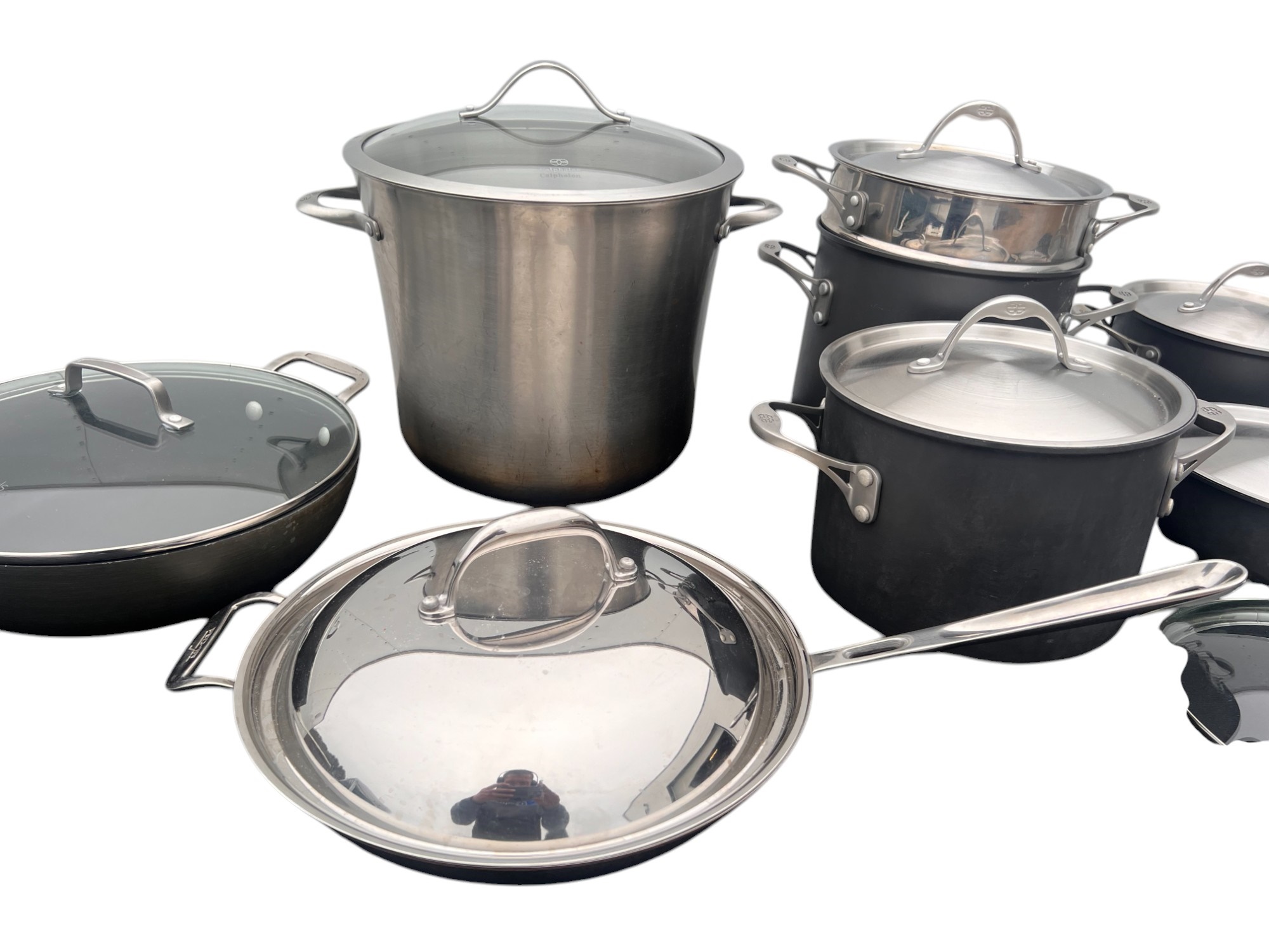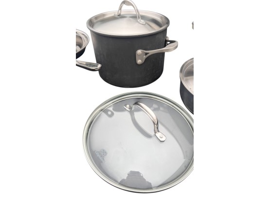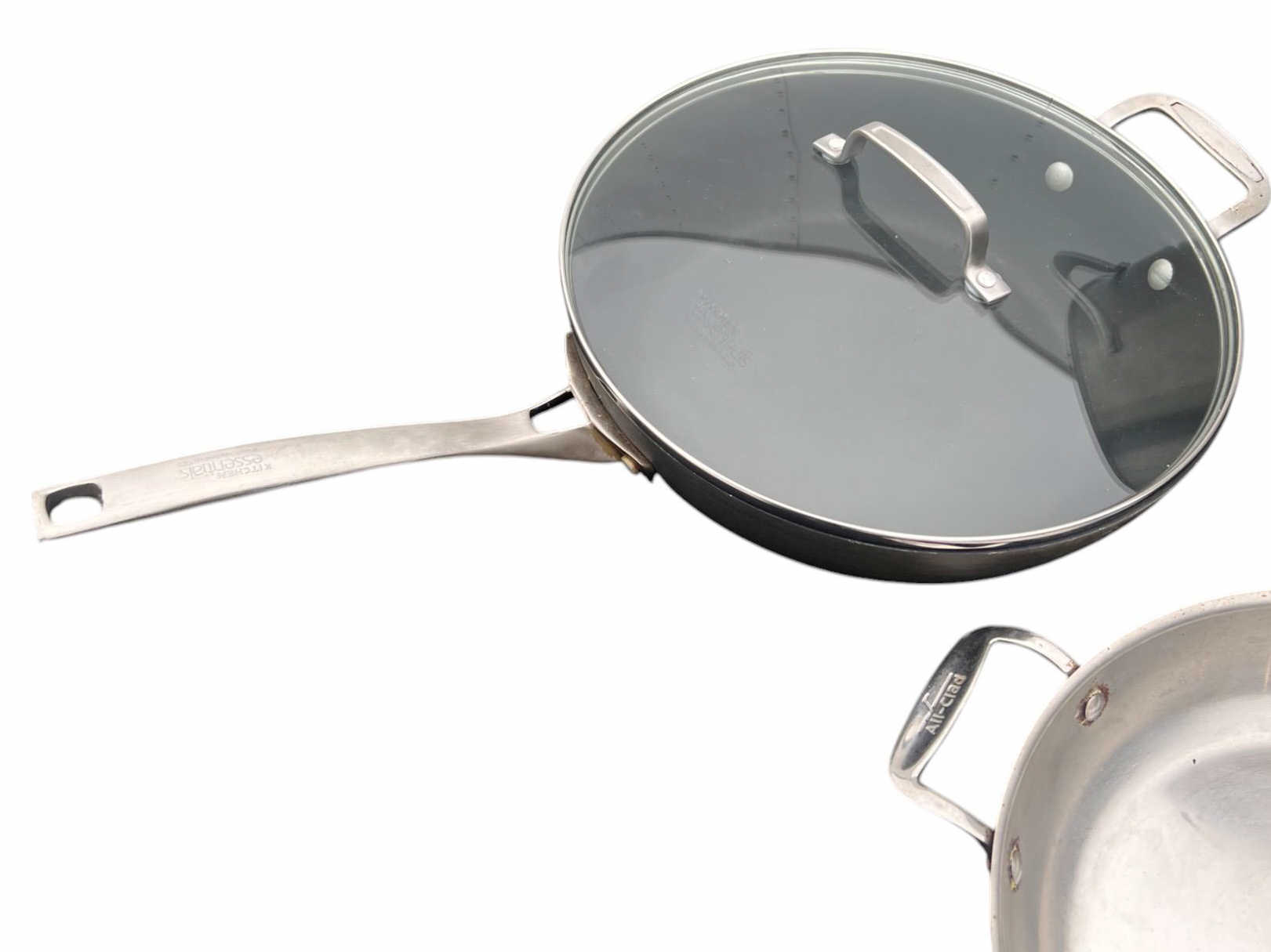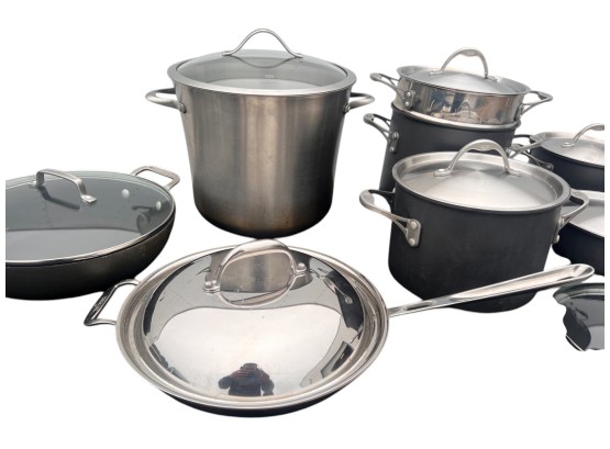 Including stock pot, Kitchen Essentials pan w/ cover, All Clad pan with cover and Williams & Sonoma pan with cover. See photos Condition: Used Temp No 6475