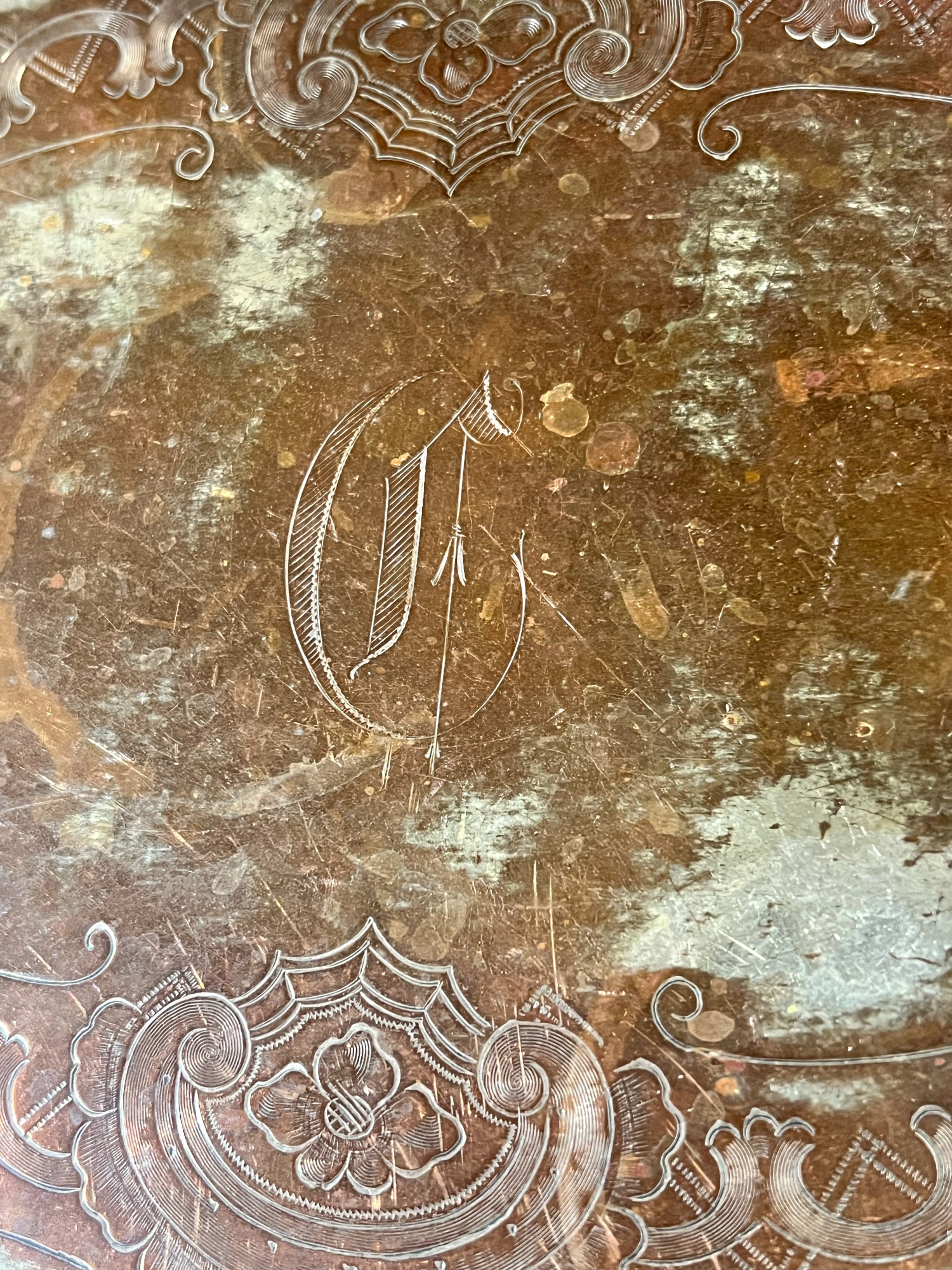 16 inches (largest dimension and smaller) Condition: Mostly good, significant wear to oval tray Temp No 6295