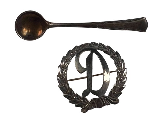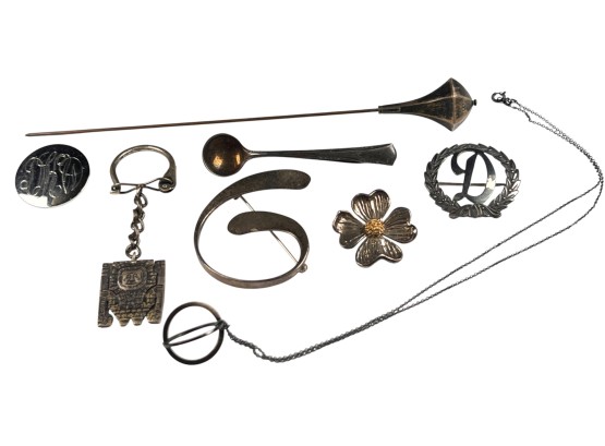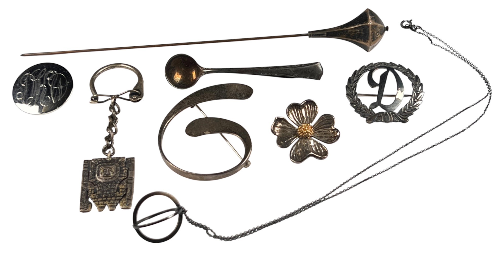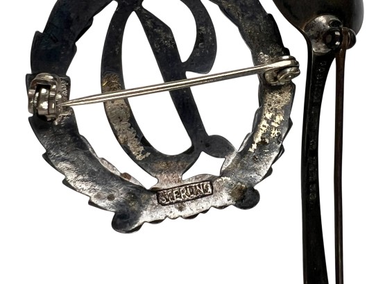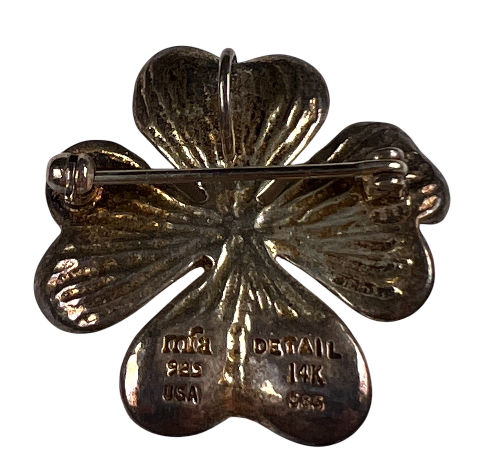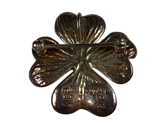 All marked sterling/925. Flower pin Marked MFA sterling and 14K. Condition: Good, used