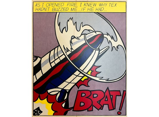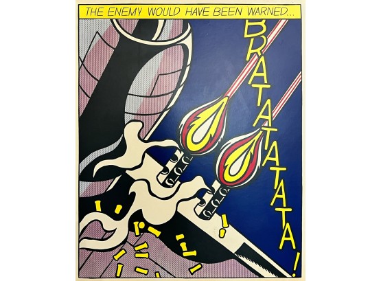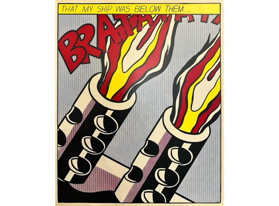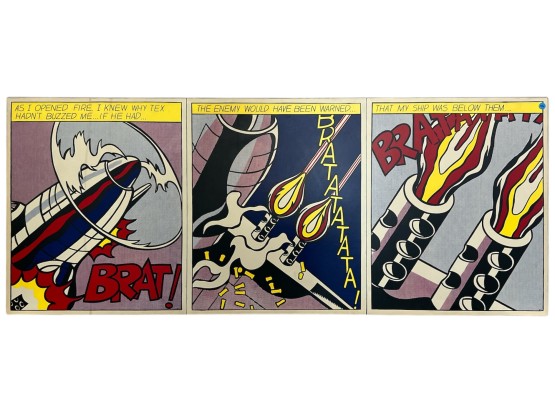 As I Opened Fire ! / lithograph in color 25 x 62.5 inches. sealed under plastic and mounted to particle board. copyright S.M.A. Condition: Good, (1) inch vertical scratch upper right corner Temp No 6304