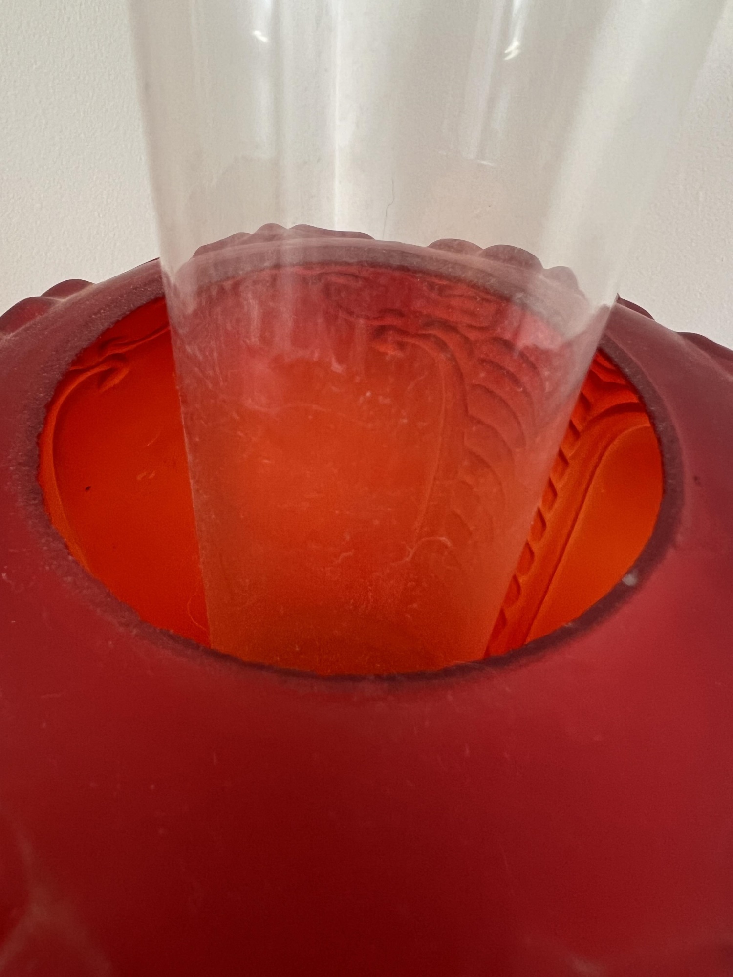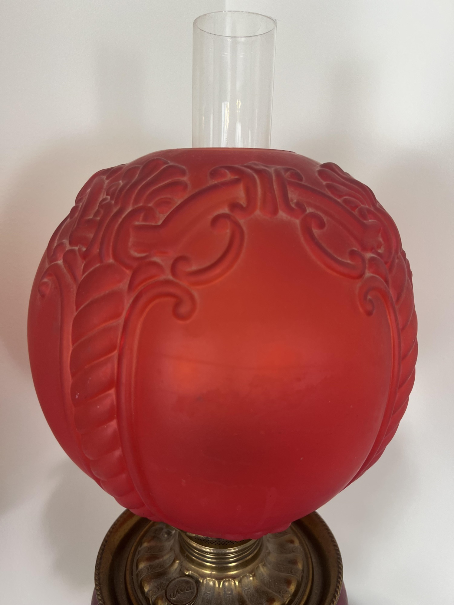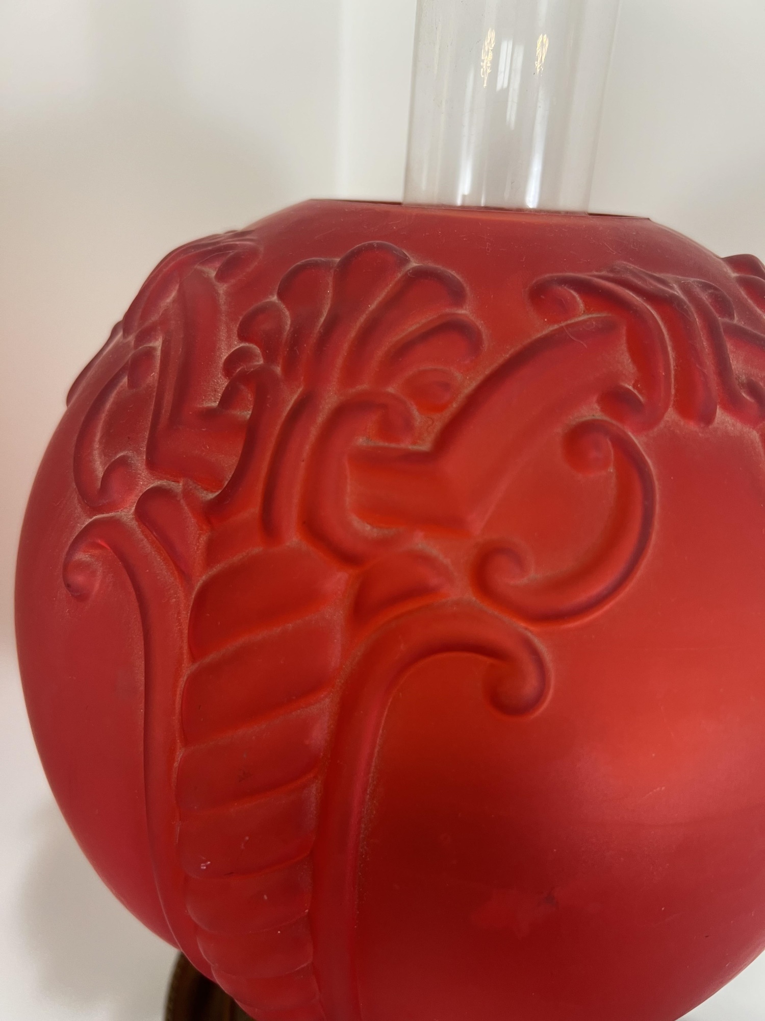 26 1/2" to top of chimney Condition: Good, roughness to edges of upper shade