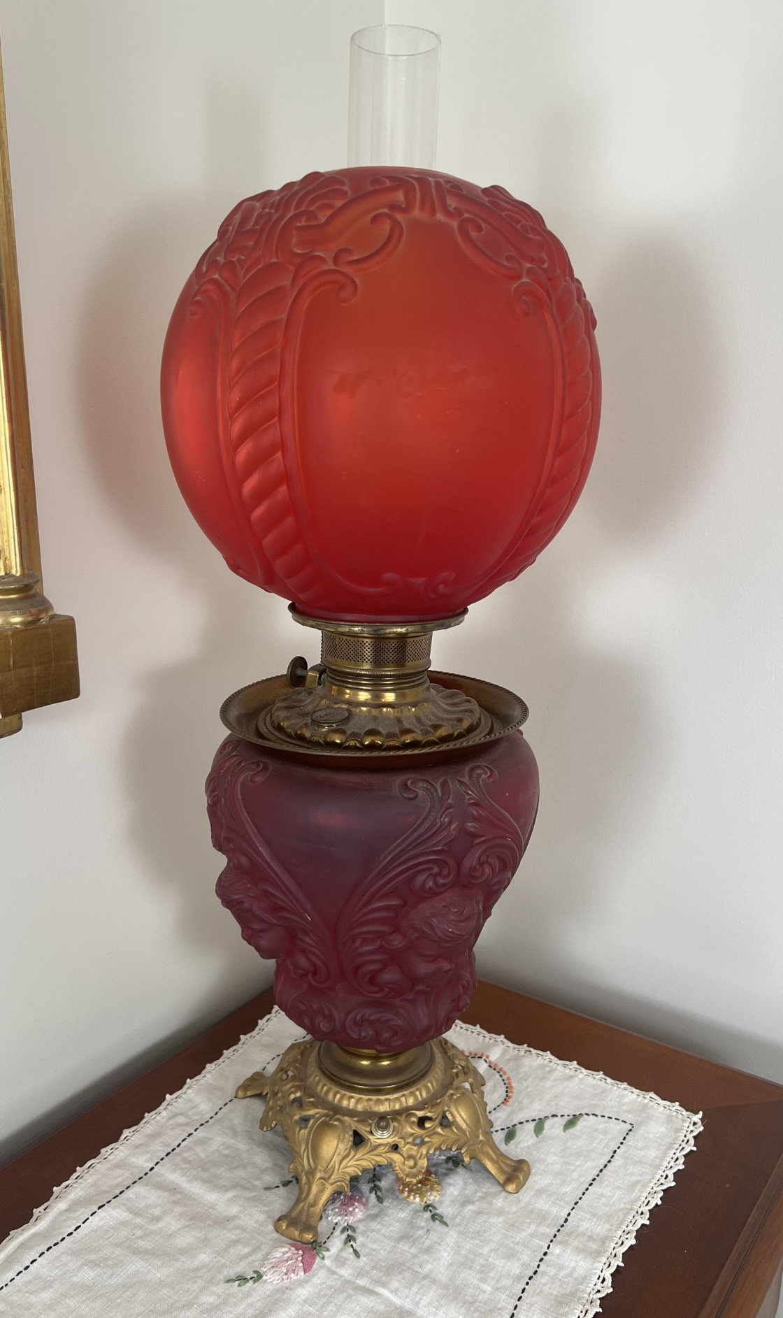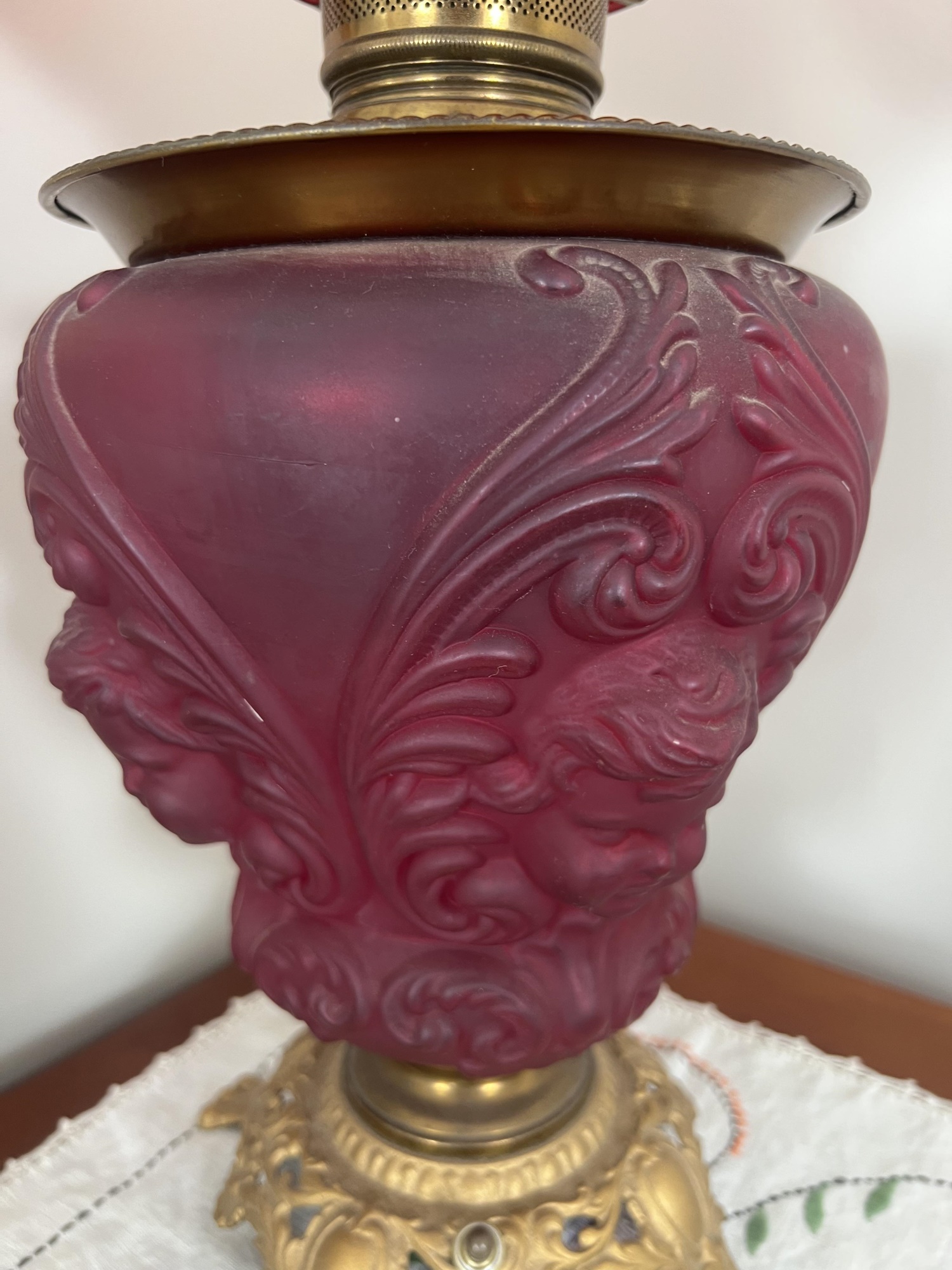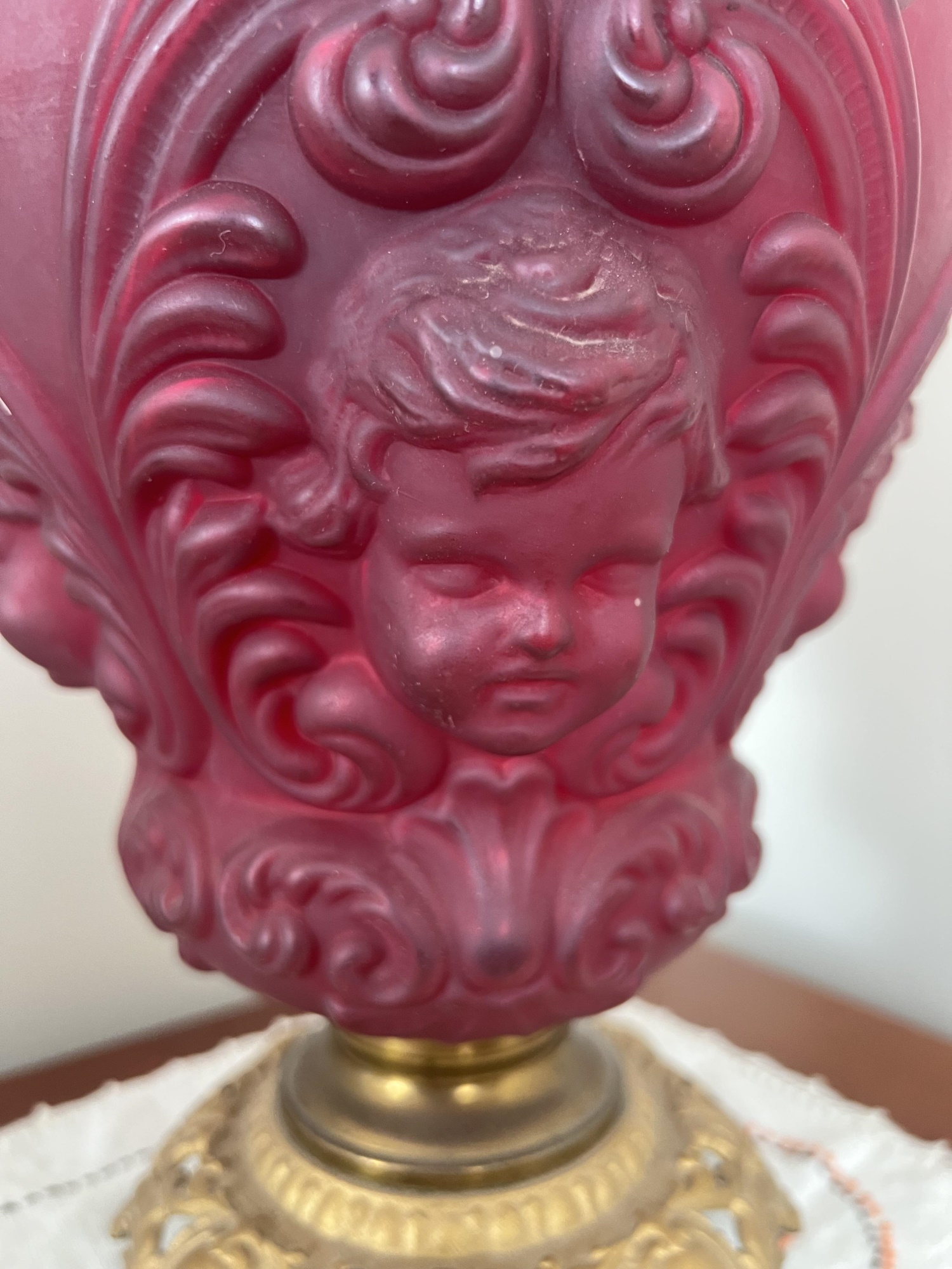 26 1/2" to top of chimney Condition: Good, roughness to edges of upper shade