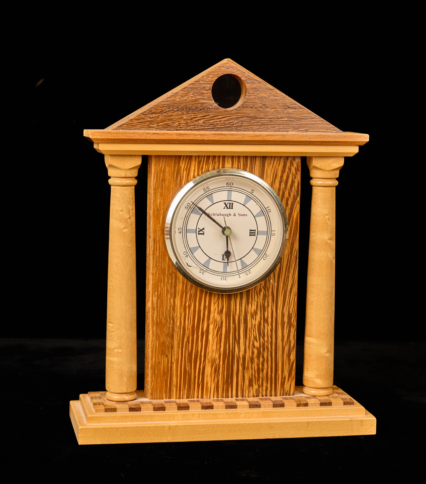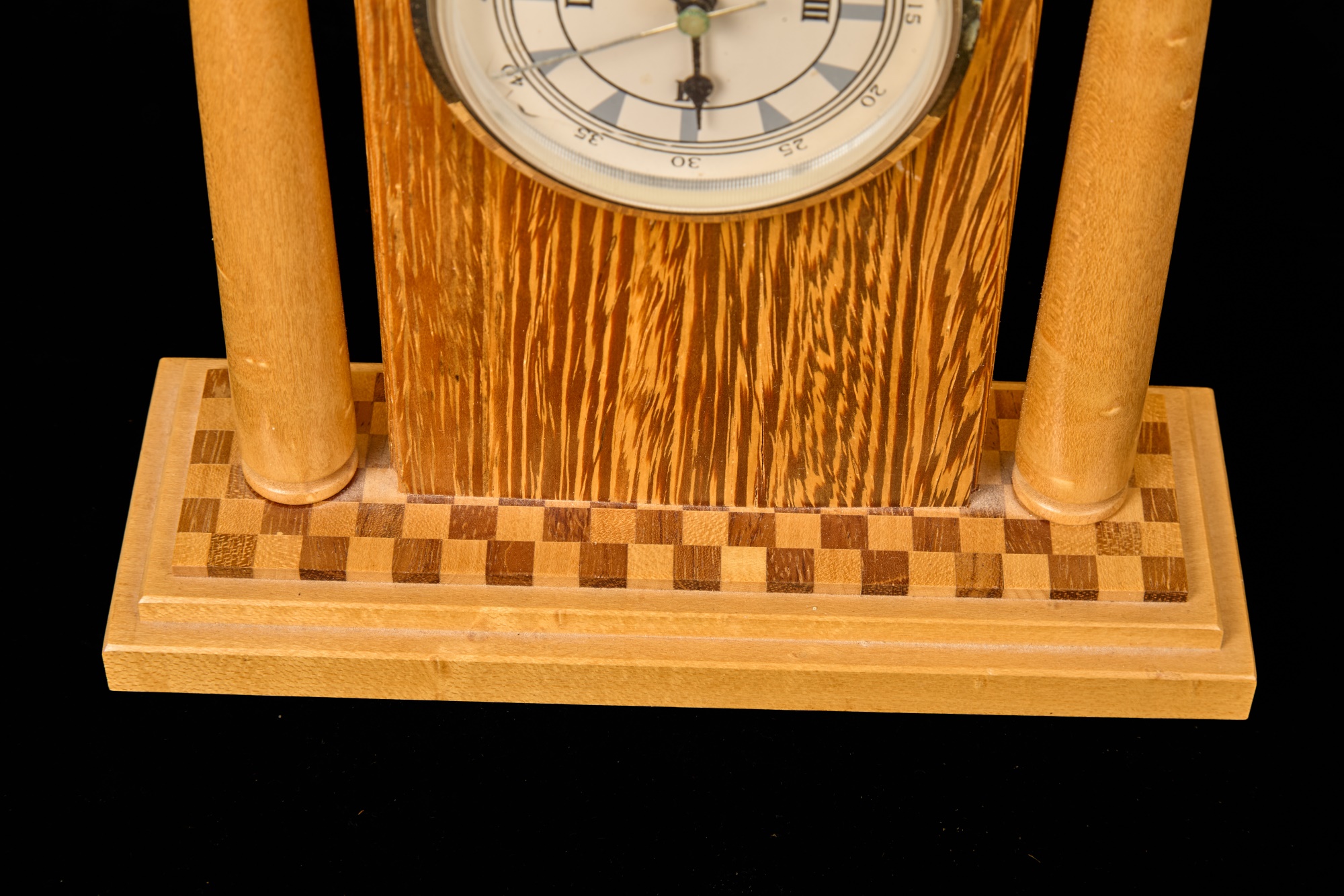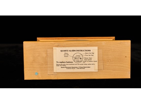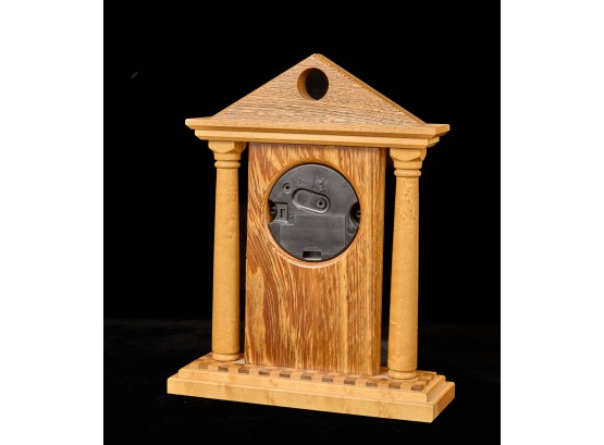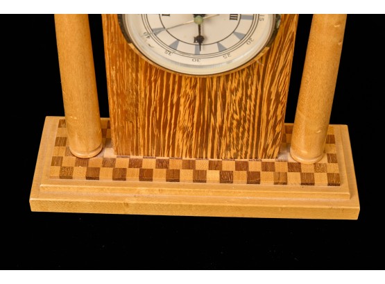 Crafted with exotic hardwoods. Quartz clock with 3.5 inch dial. 10.75 x 8 inches (overall) Condition: Good Temp No 6068