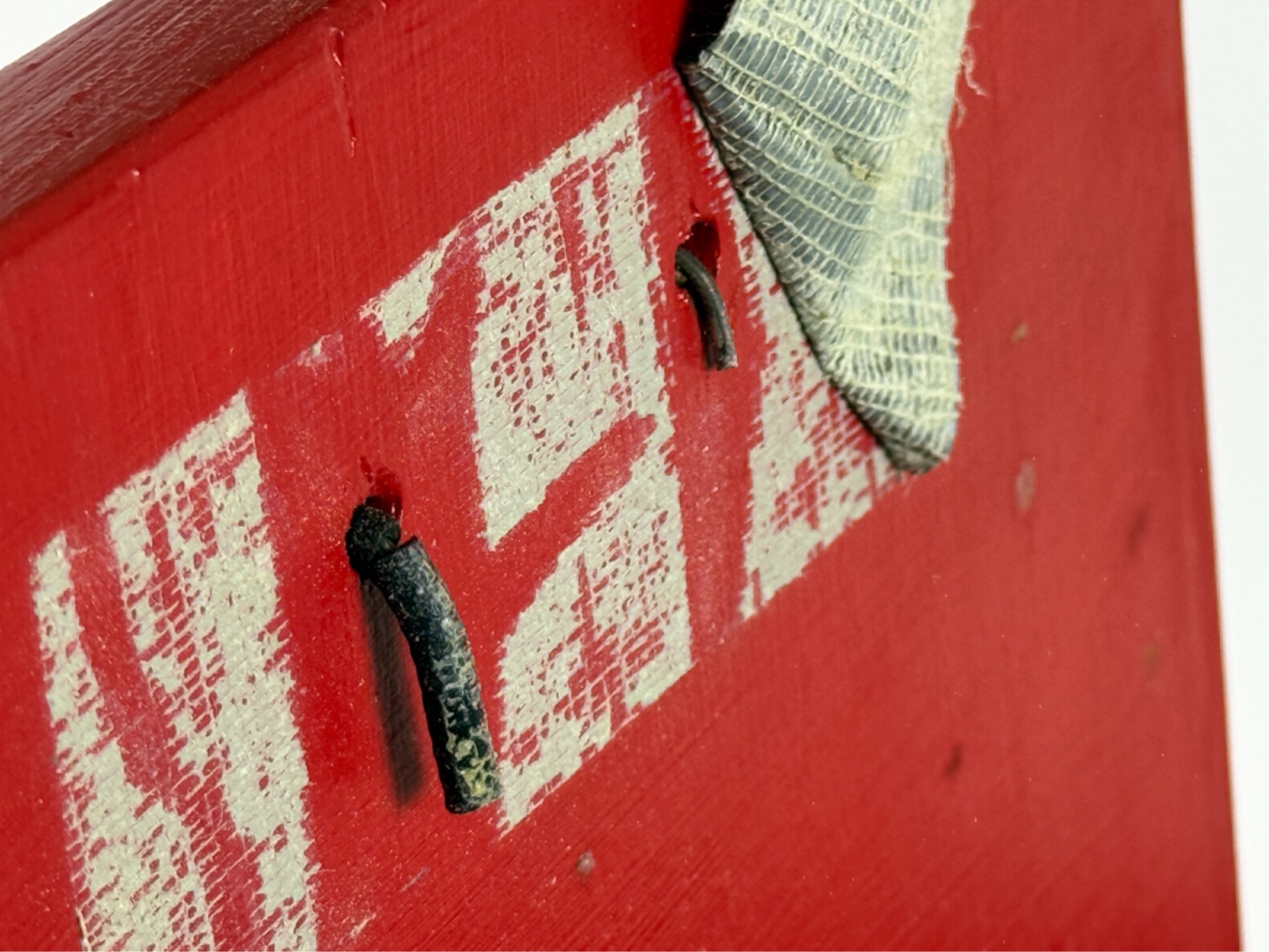 Mounted to custom display stand. 12 1/2 x 12 1/2 inches. Condition: Good. Age expected wear. Temp No 4027