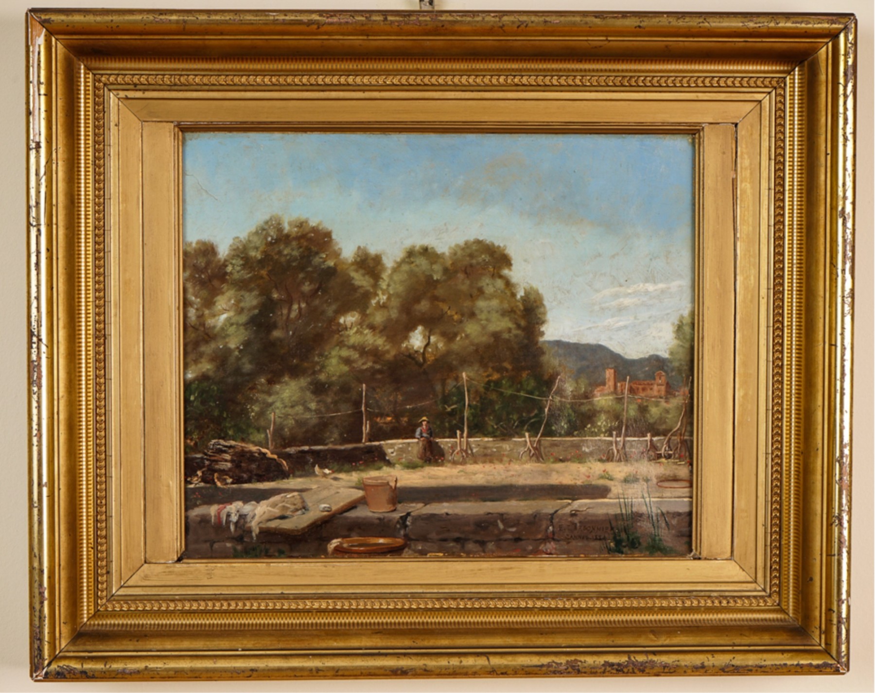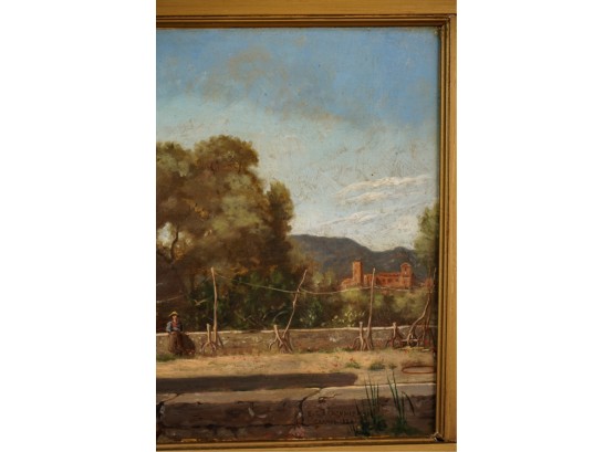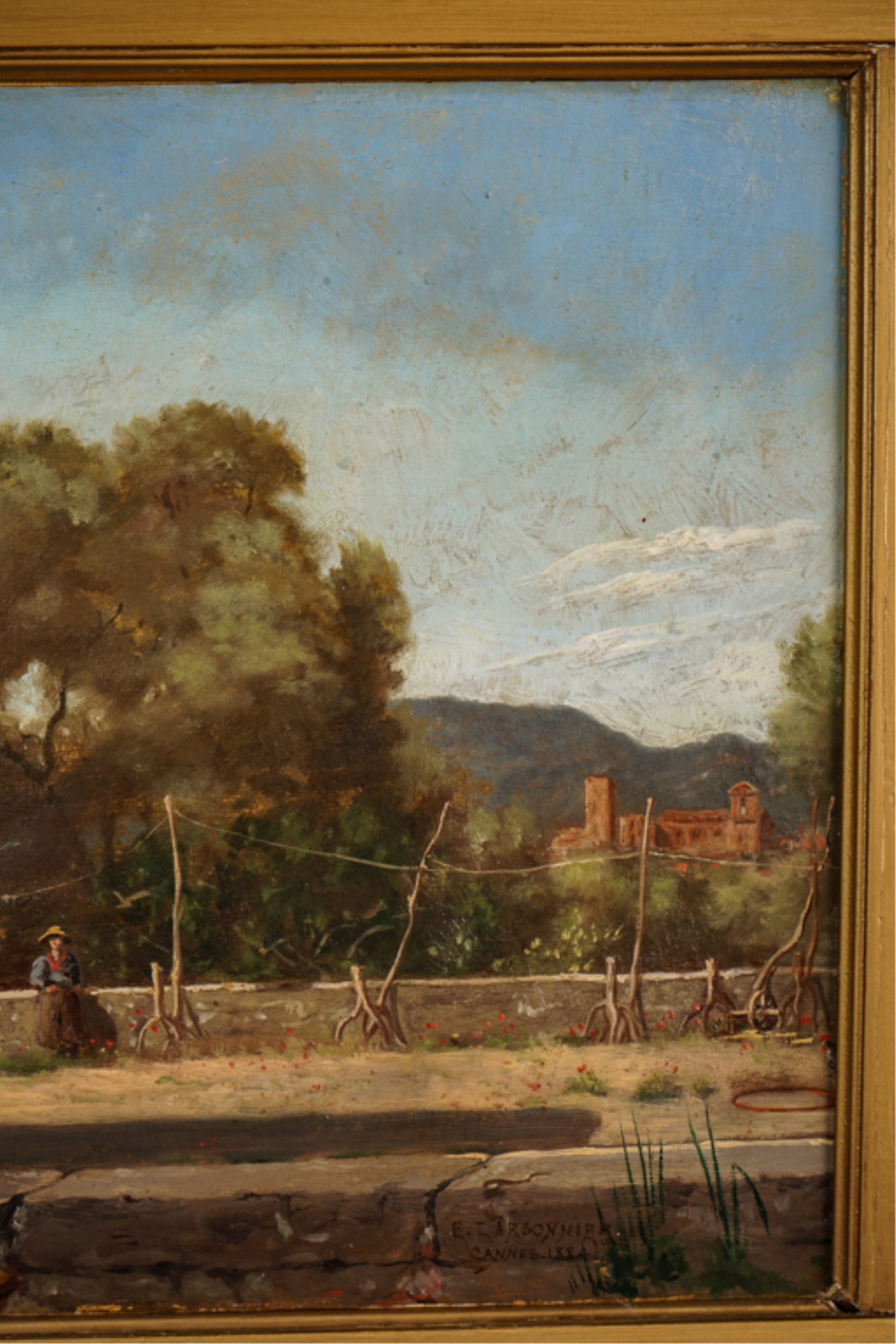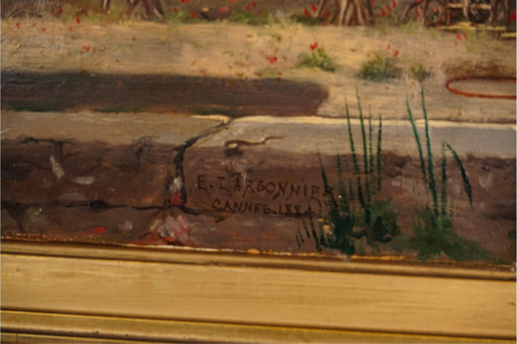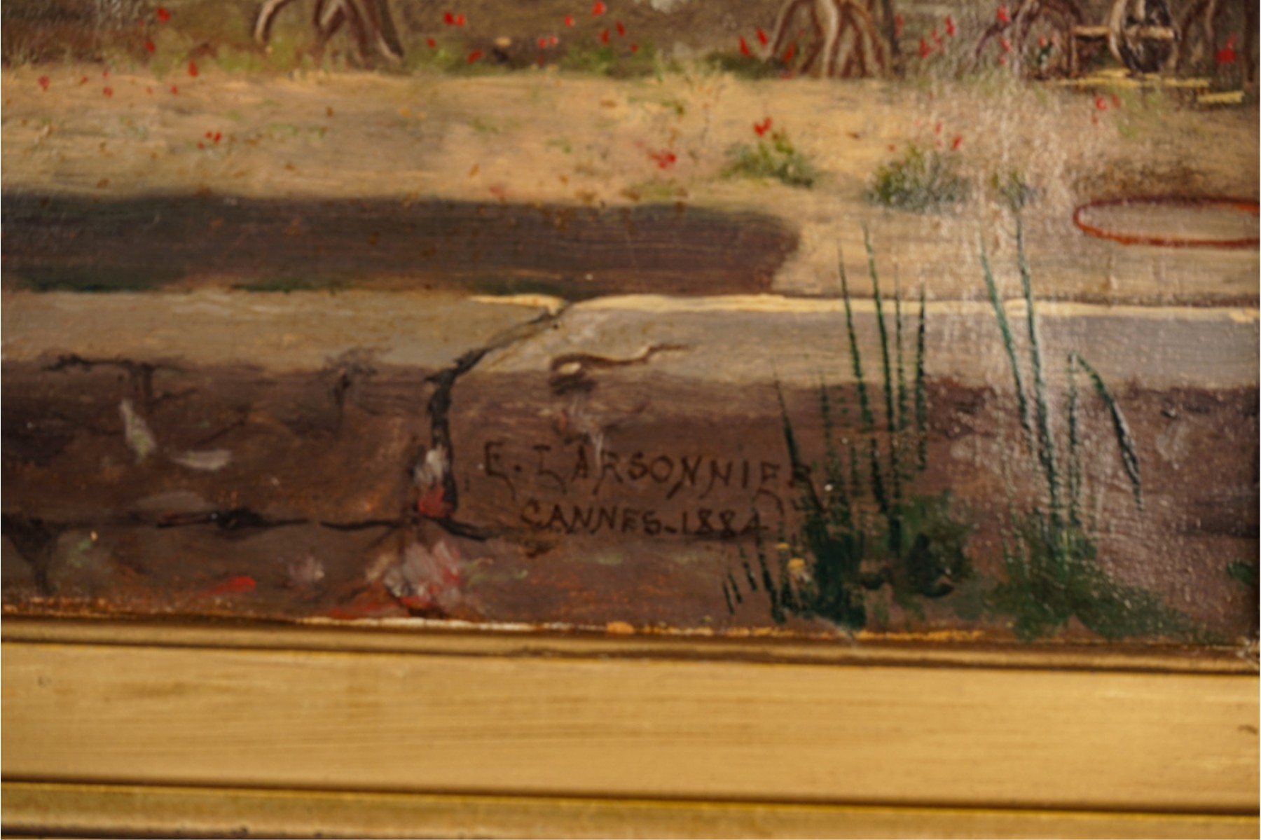 Oil on canvas. signed and dated "E. Larsonnier Cannes 1884". Housed in gilt frame. 17 x 21 1/4 inches.
