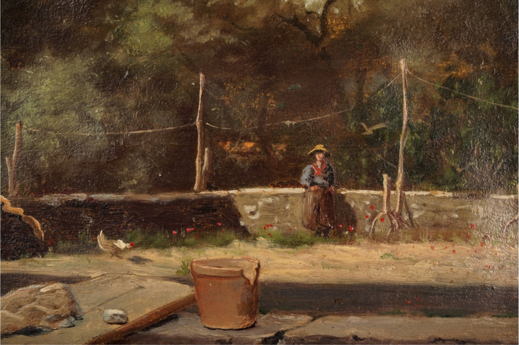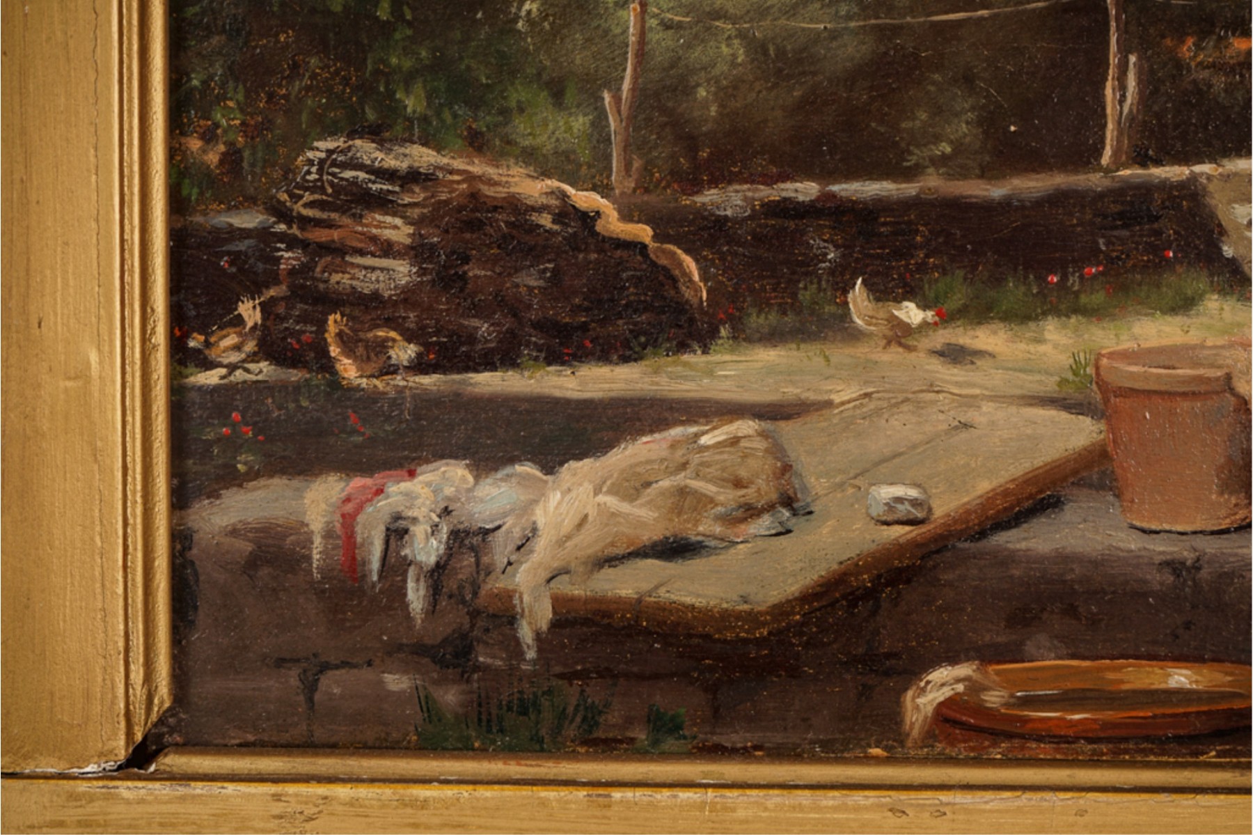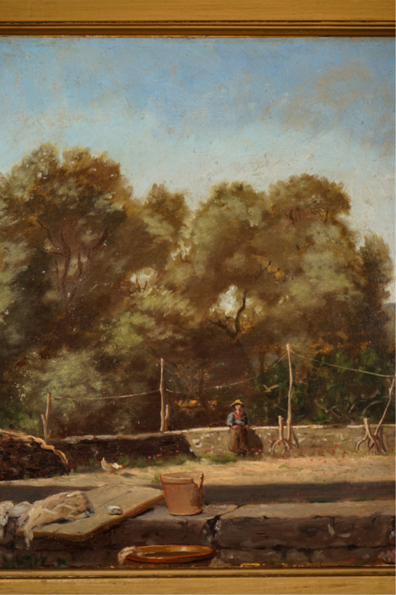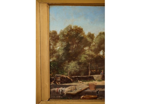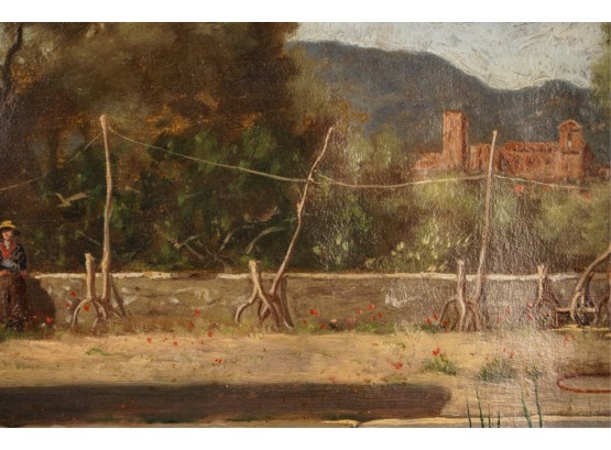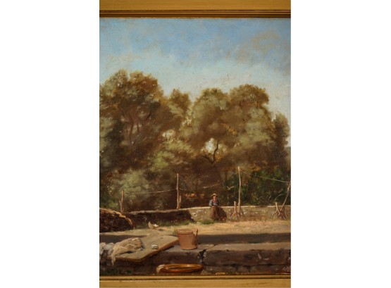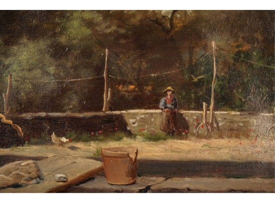 Oil on canvas. signed and dated "E. Larsonnier Cannes 1884". Housed in gilt frame. 17 x 21 1/4 inches.