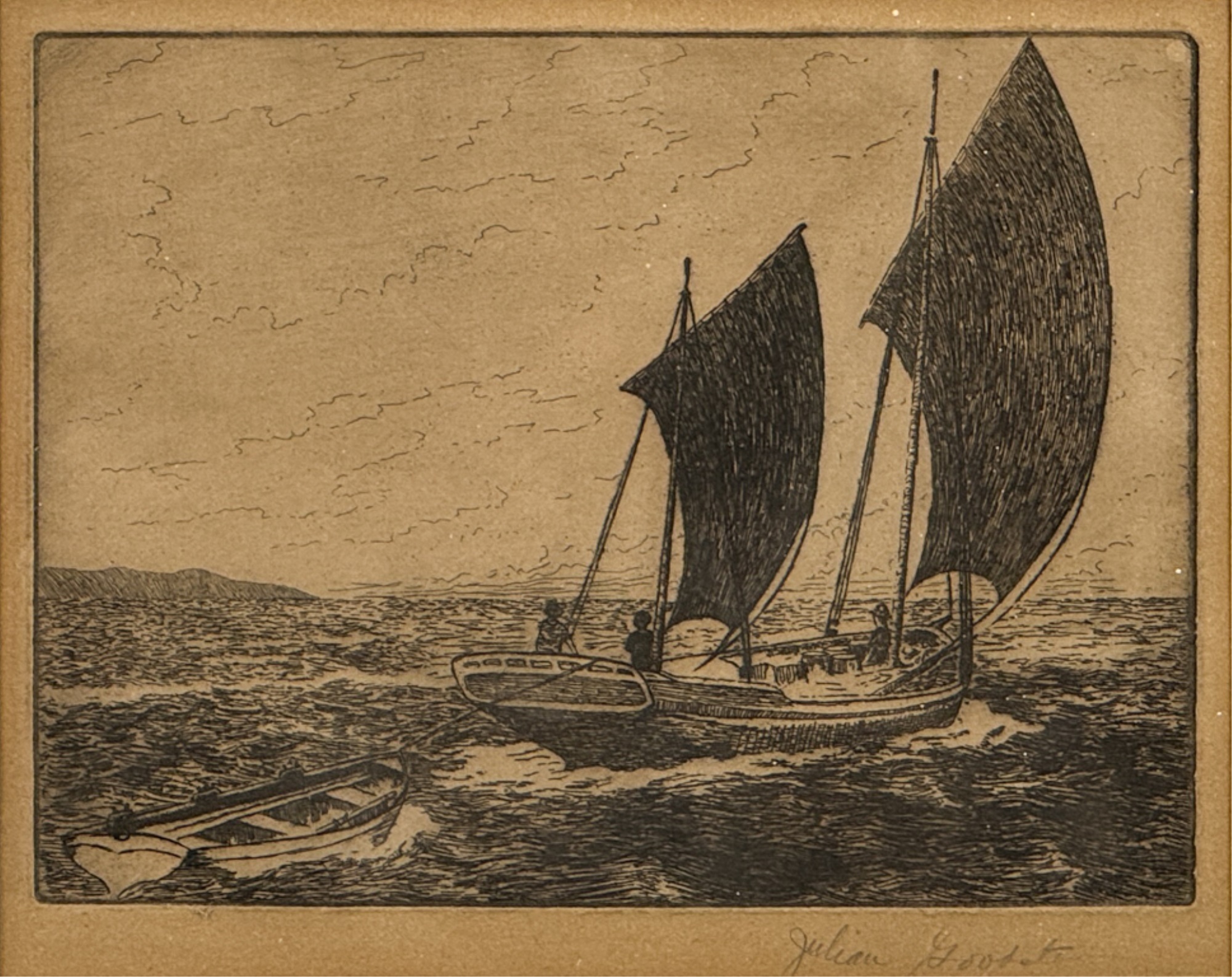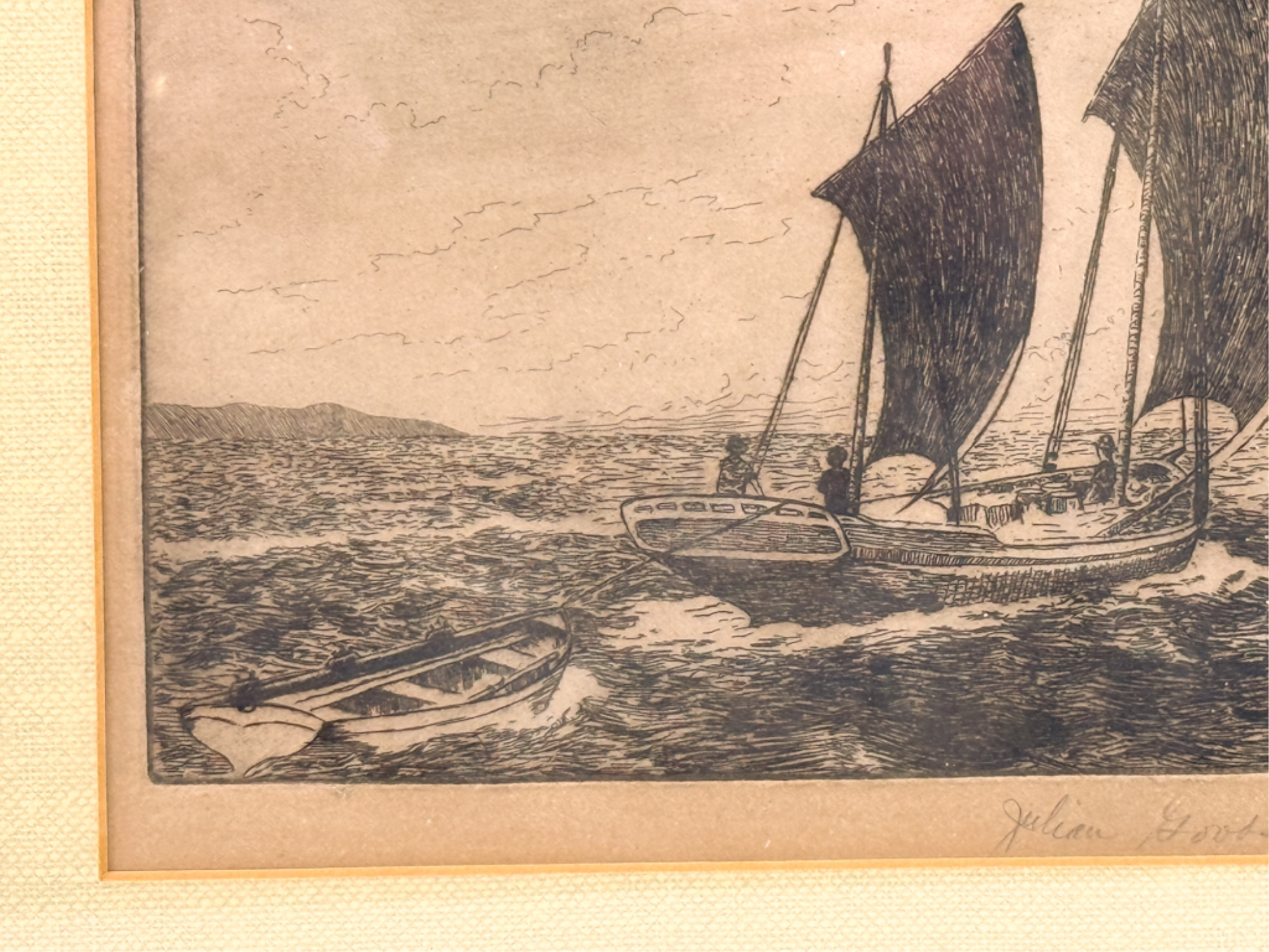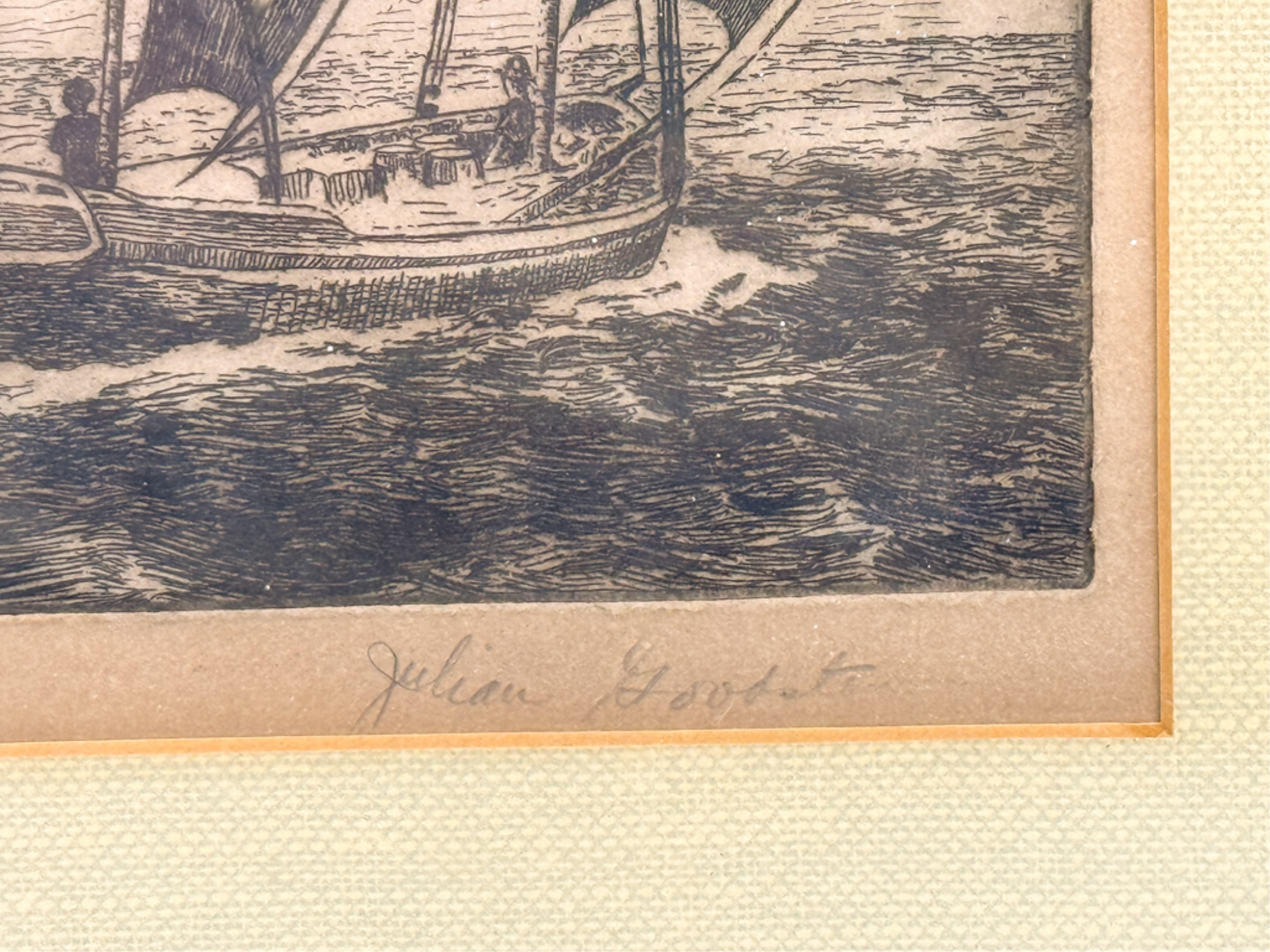 Pencil signed "Julian Goodato (?)". Framed 13 1/4 x 17 1/4 inches. Condition: Good.