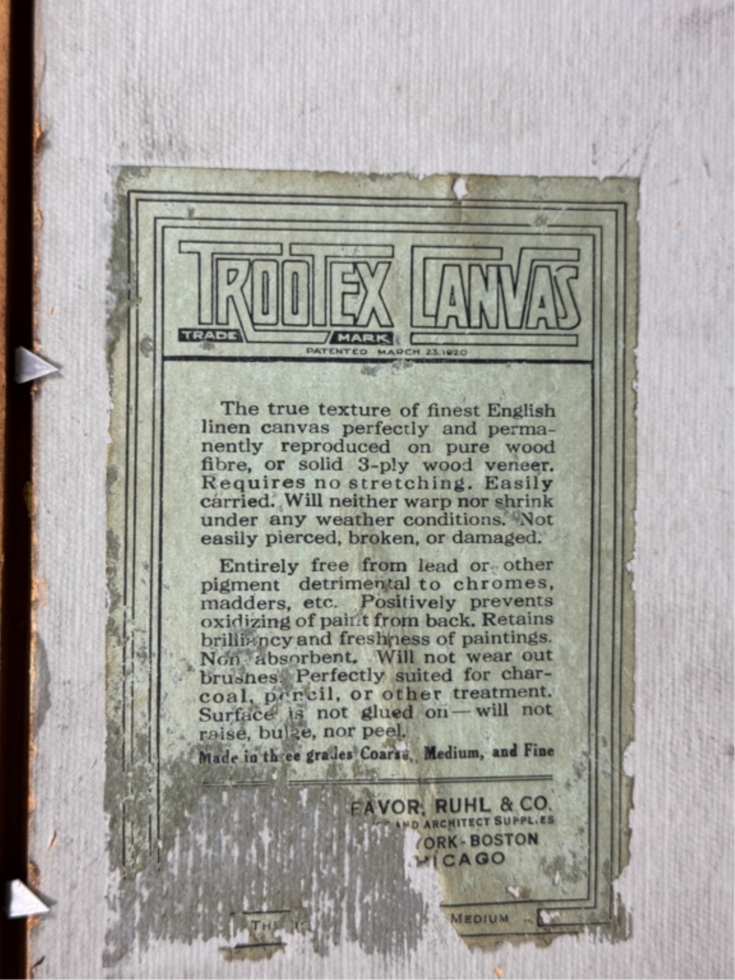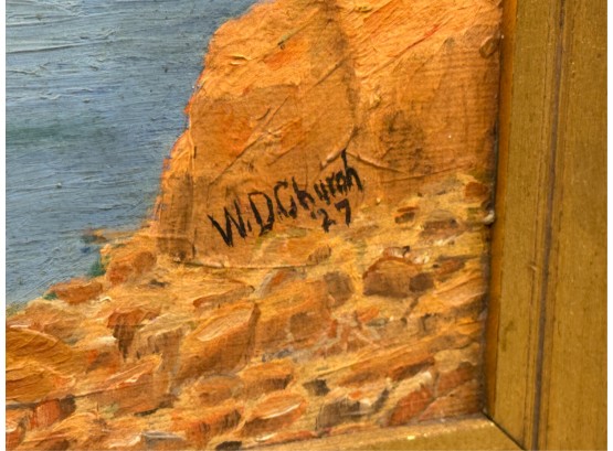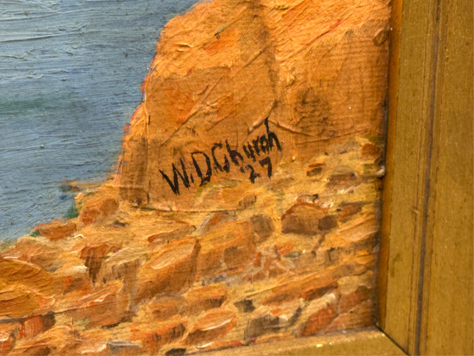 Oil on artist board. Signed and dated "W.D. Church 27". Framed. 22 1/2 x 28 inches. Condition: Some paint loss. See photos.