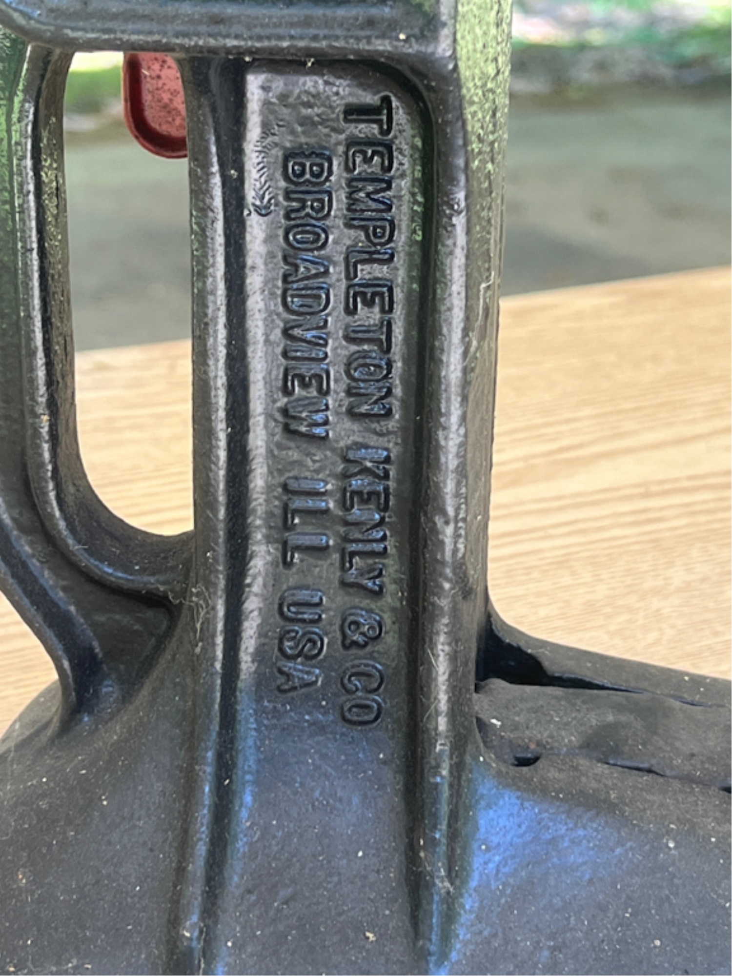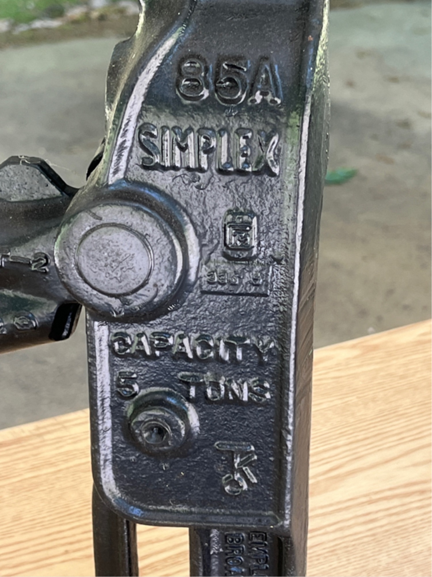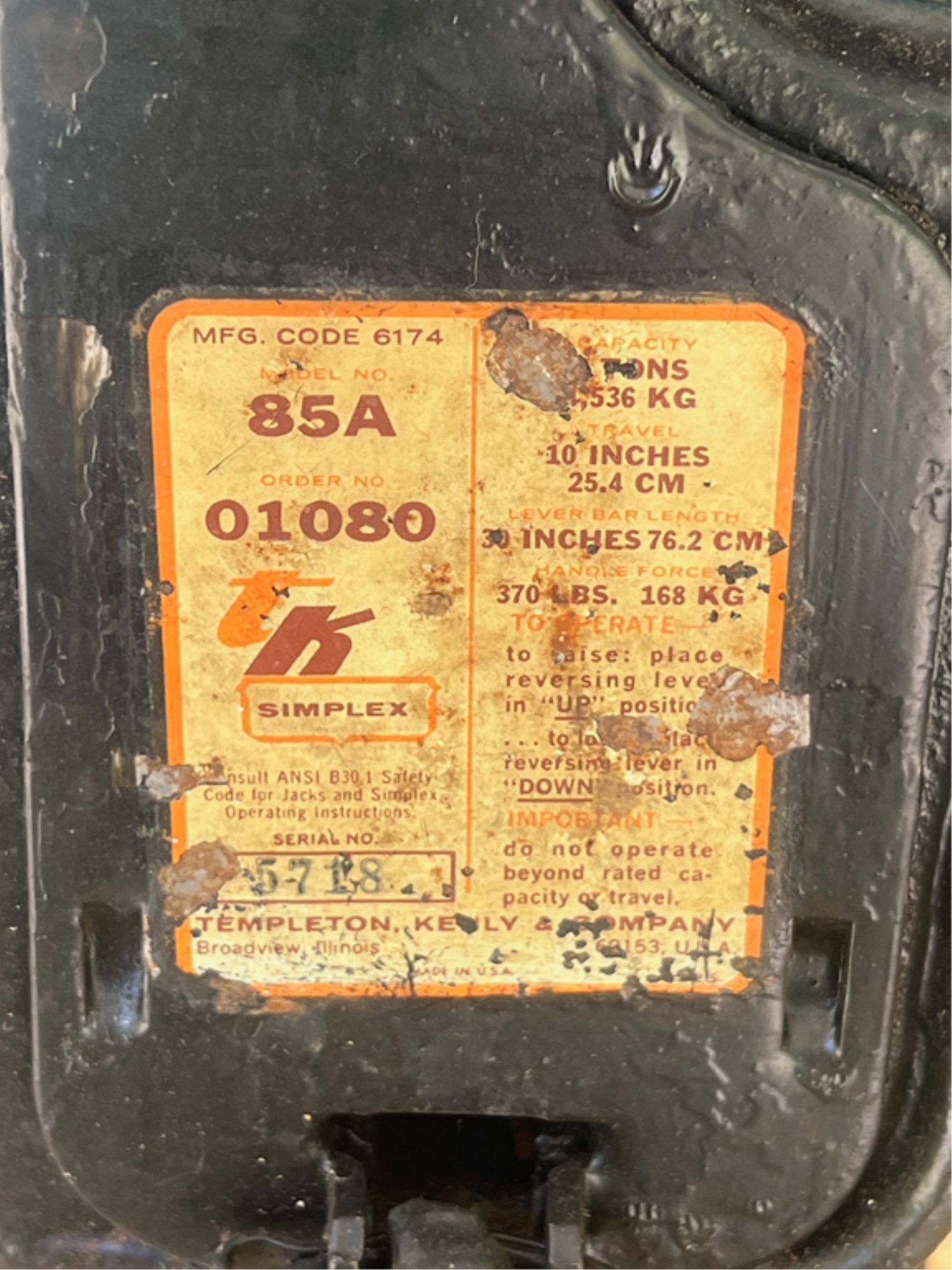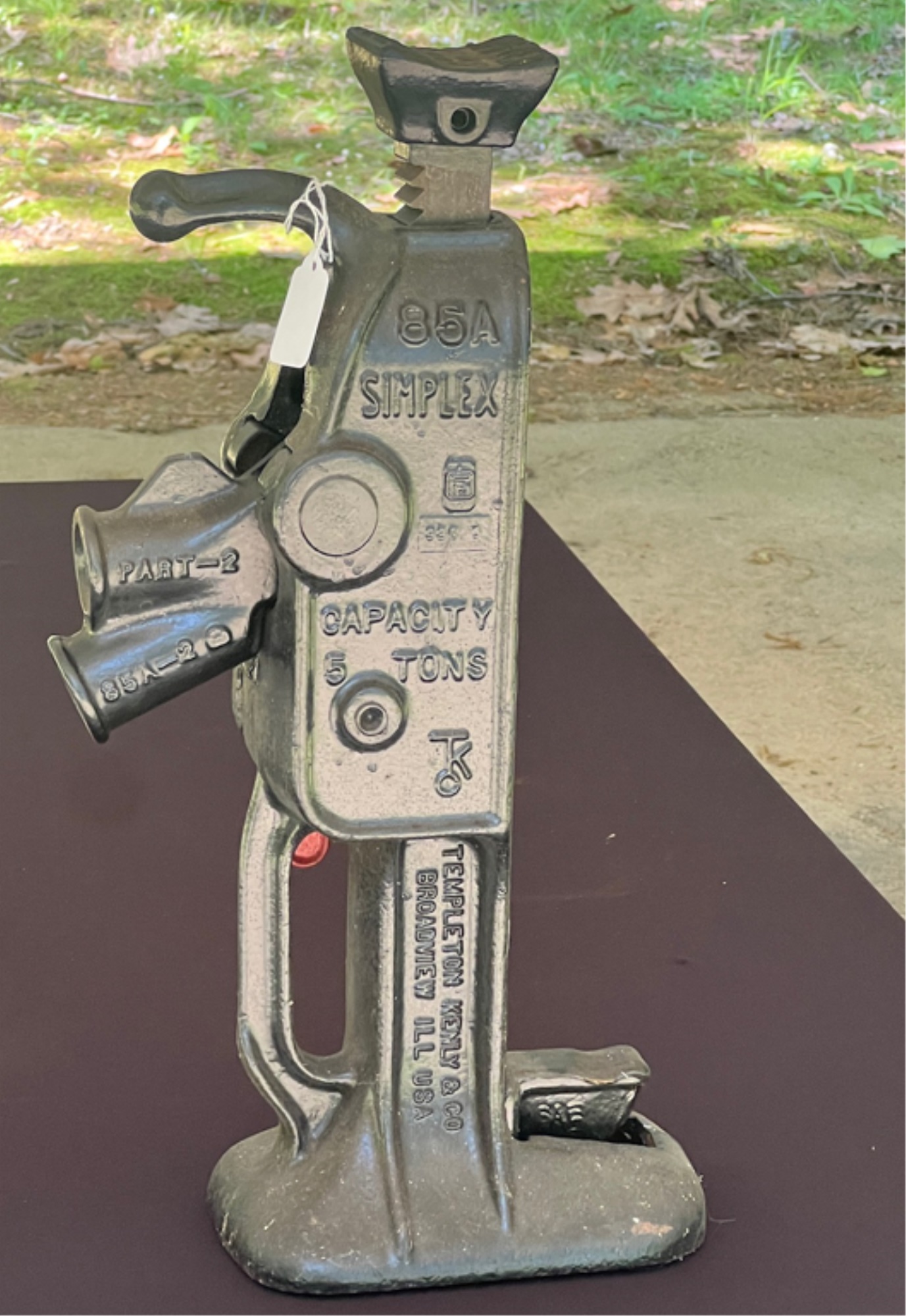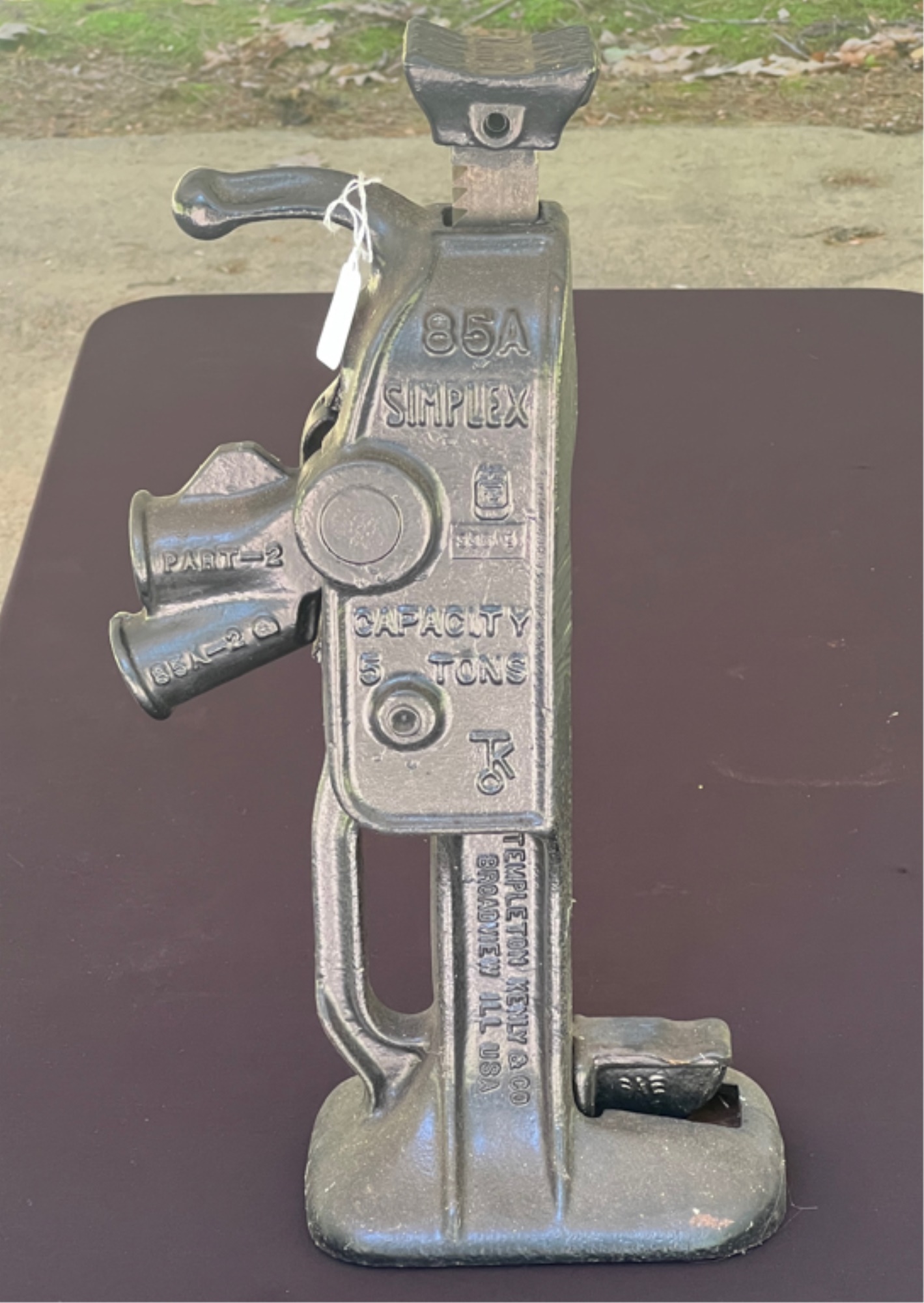 Templeton, Kenly, & Co. (Broadview, IL). 5 ton capacity, 10 inch lift. 17 x 5 x 7 inches. Condition: Mechanics in working order at time of catalogue. Temp No 4171