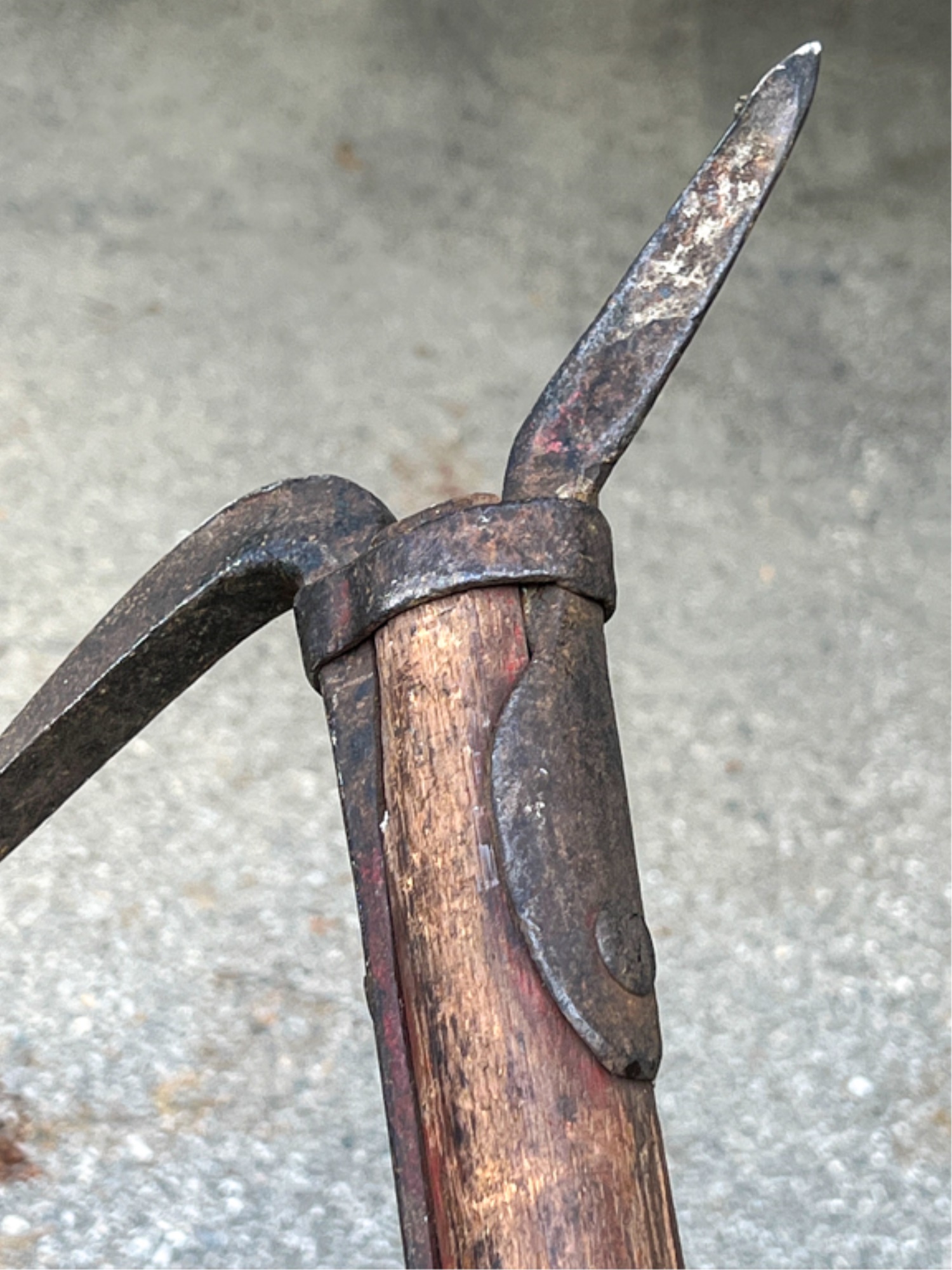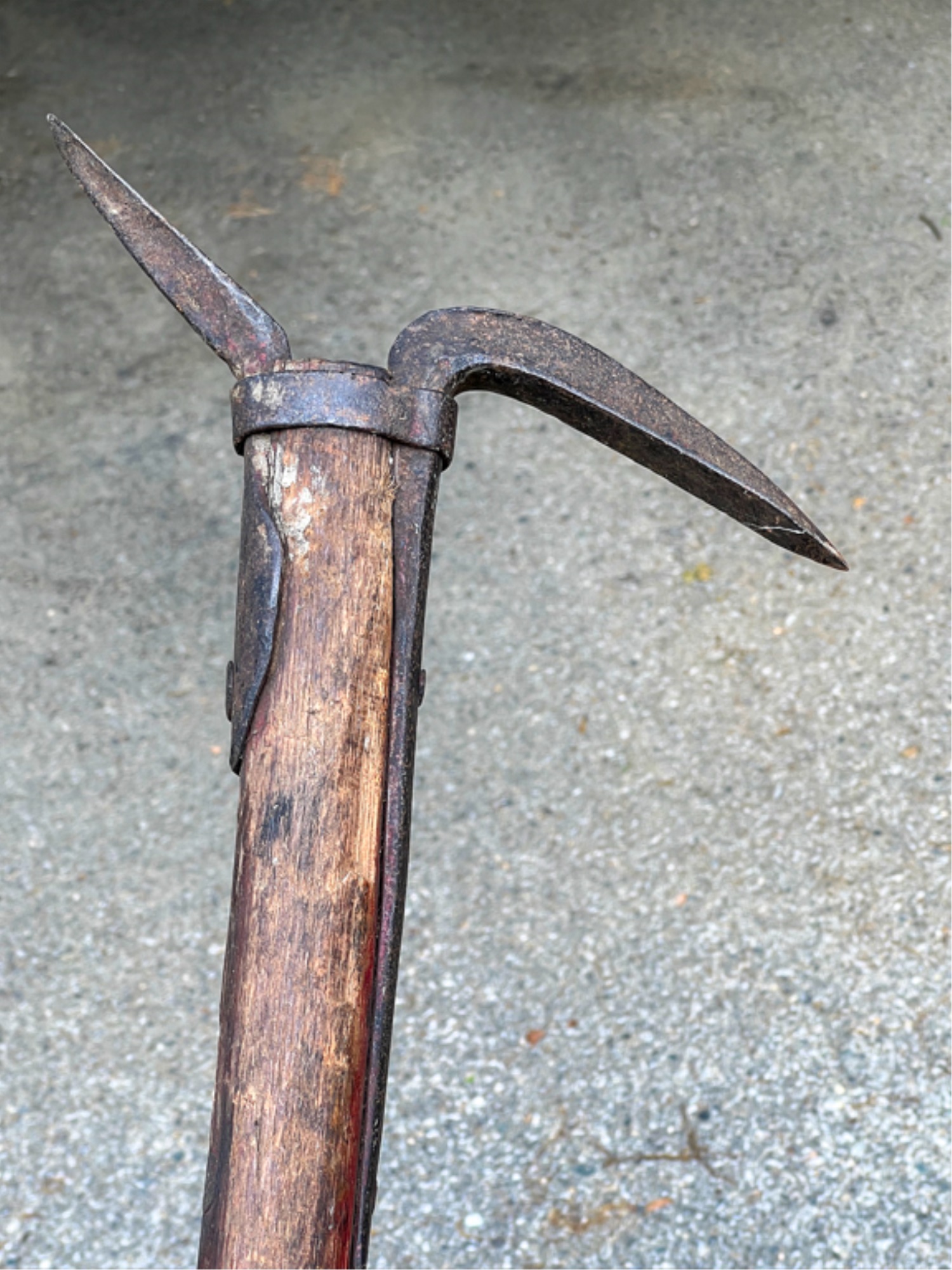 With iron pike and wooden handle. Condition: Expected wear from use. Temp No 4105