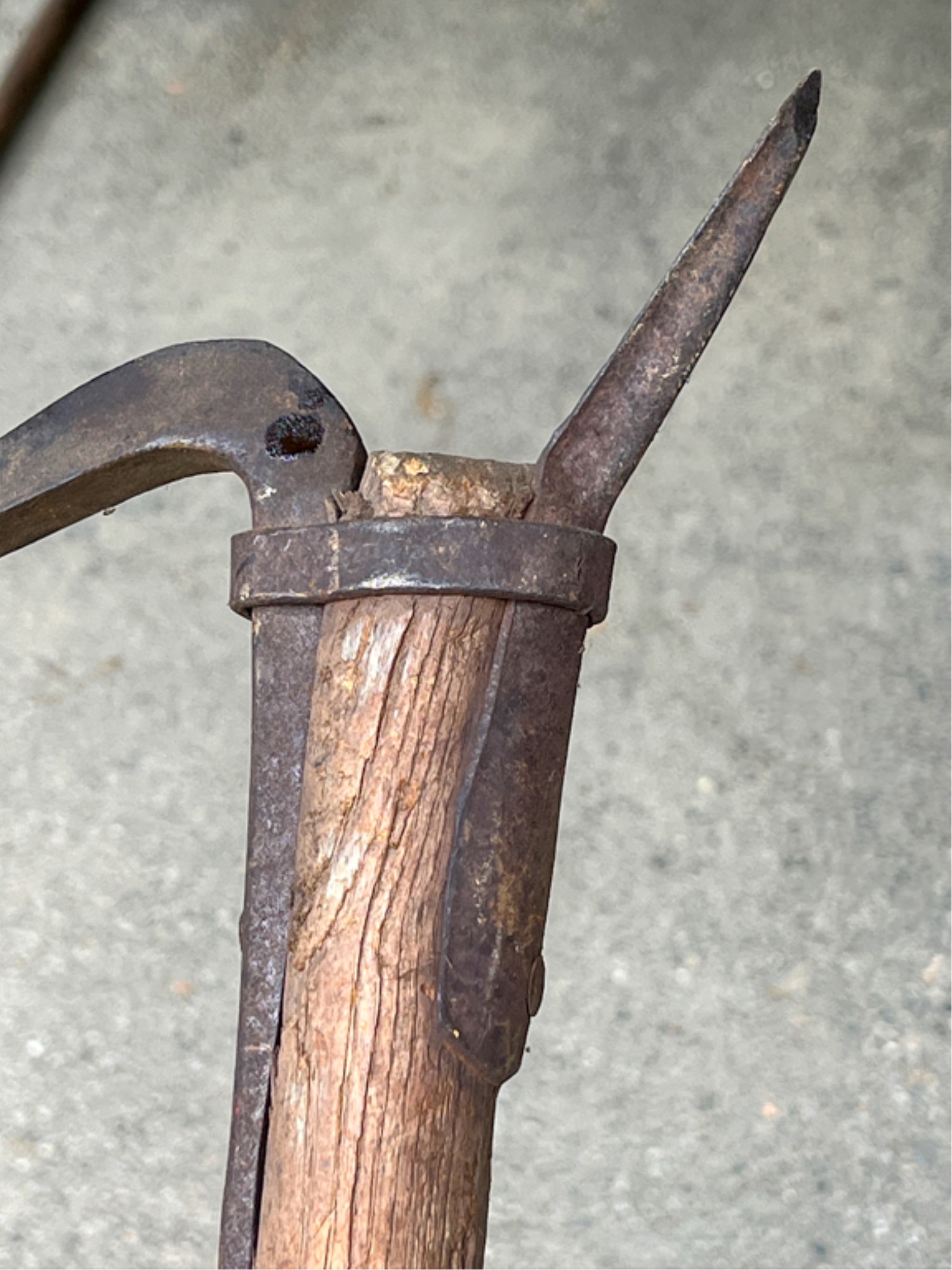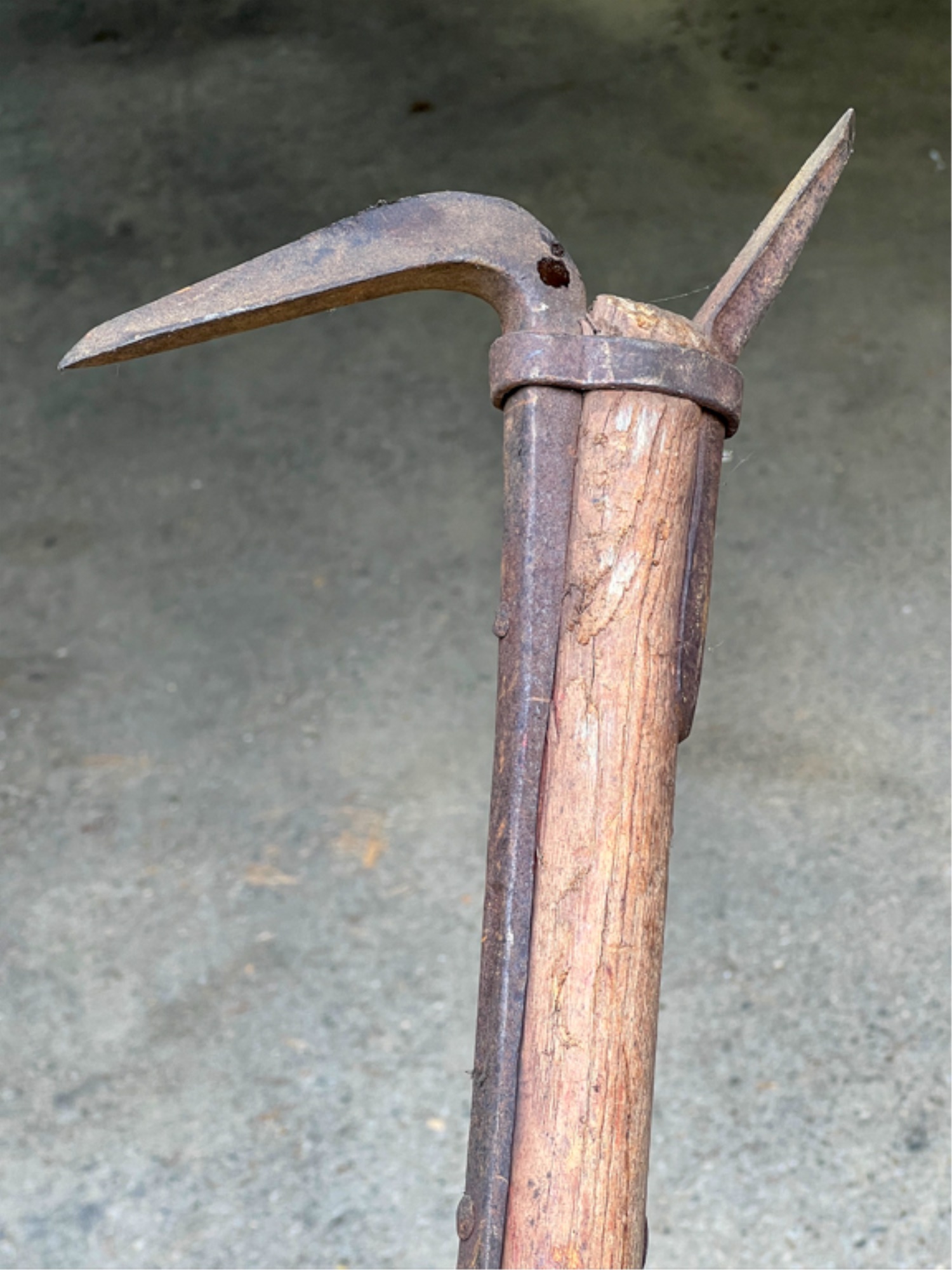 With iron pike and wooden handle. Condition: Expected wear from use. Temp No 4106