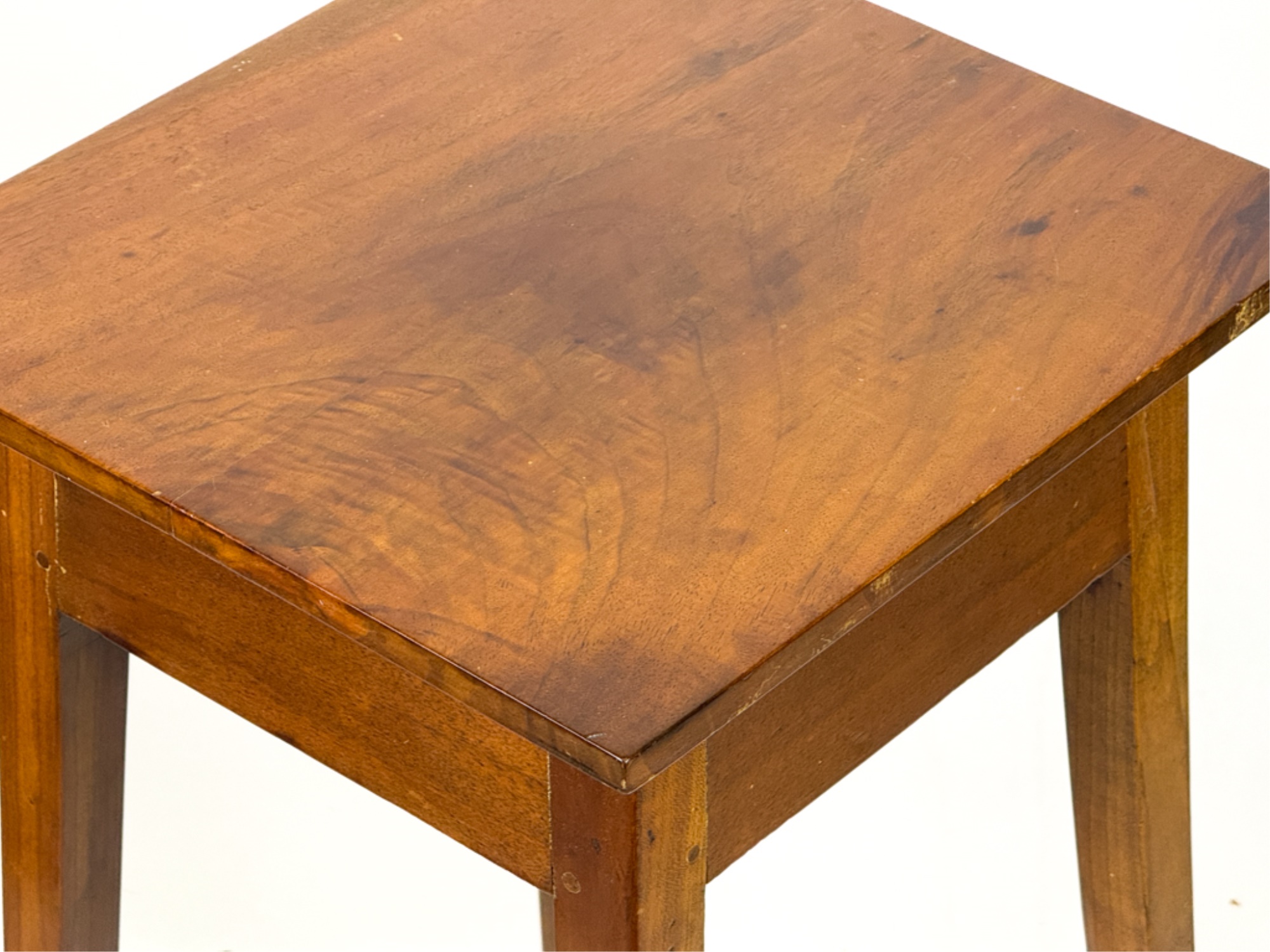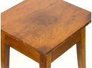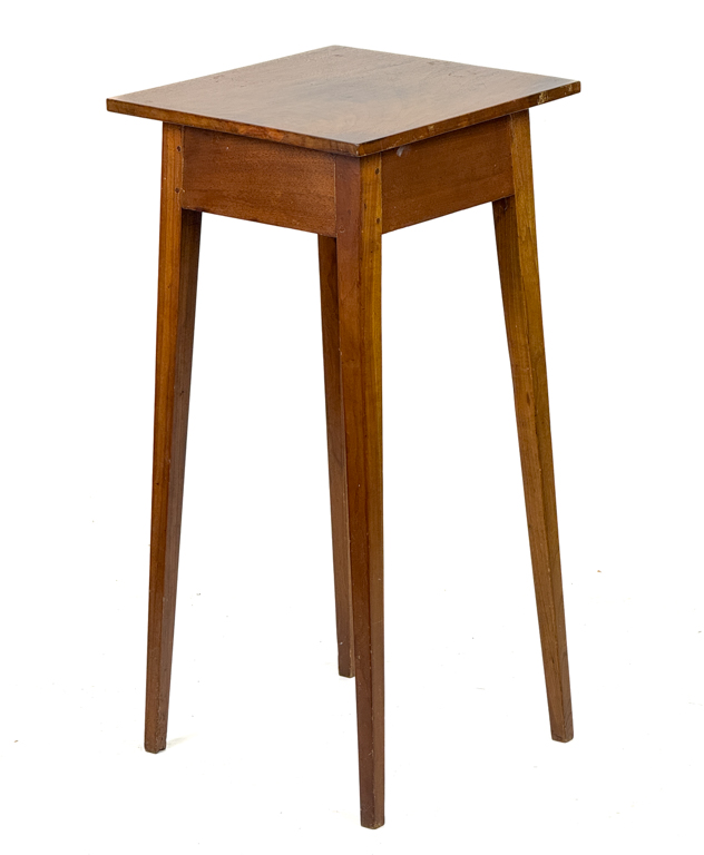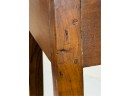 Chamfer top and pegged construction. 28 1/4 x 14 x 14 inches. Condition: Good. Sturdy. Well done repair to (1) leg.
