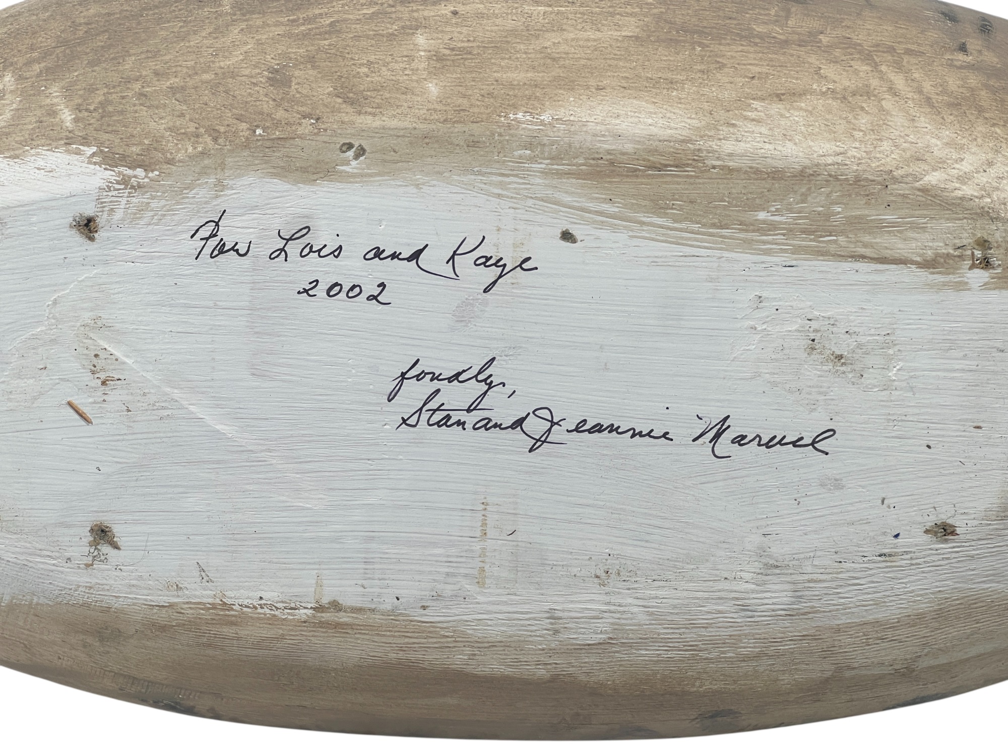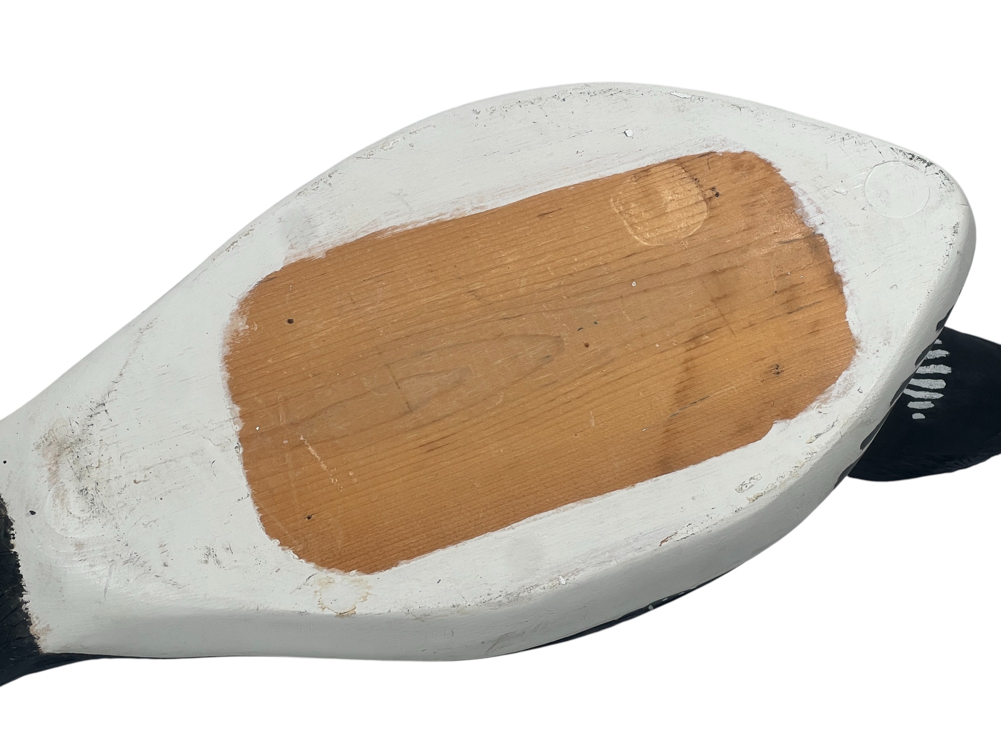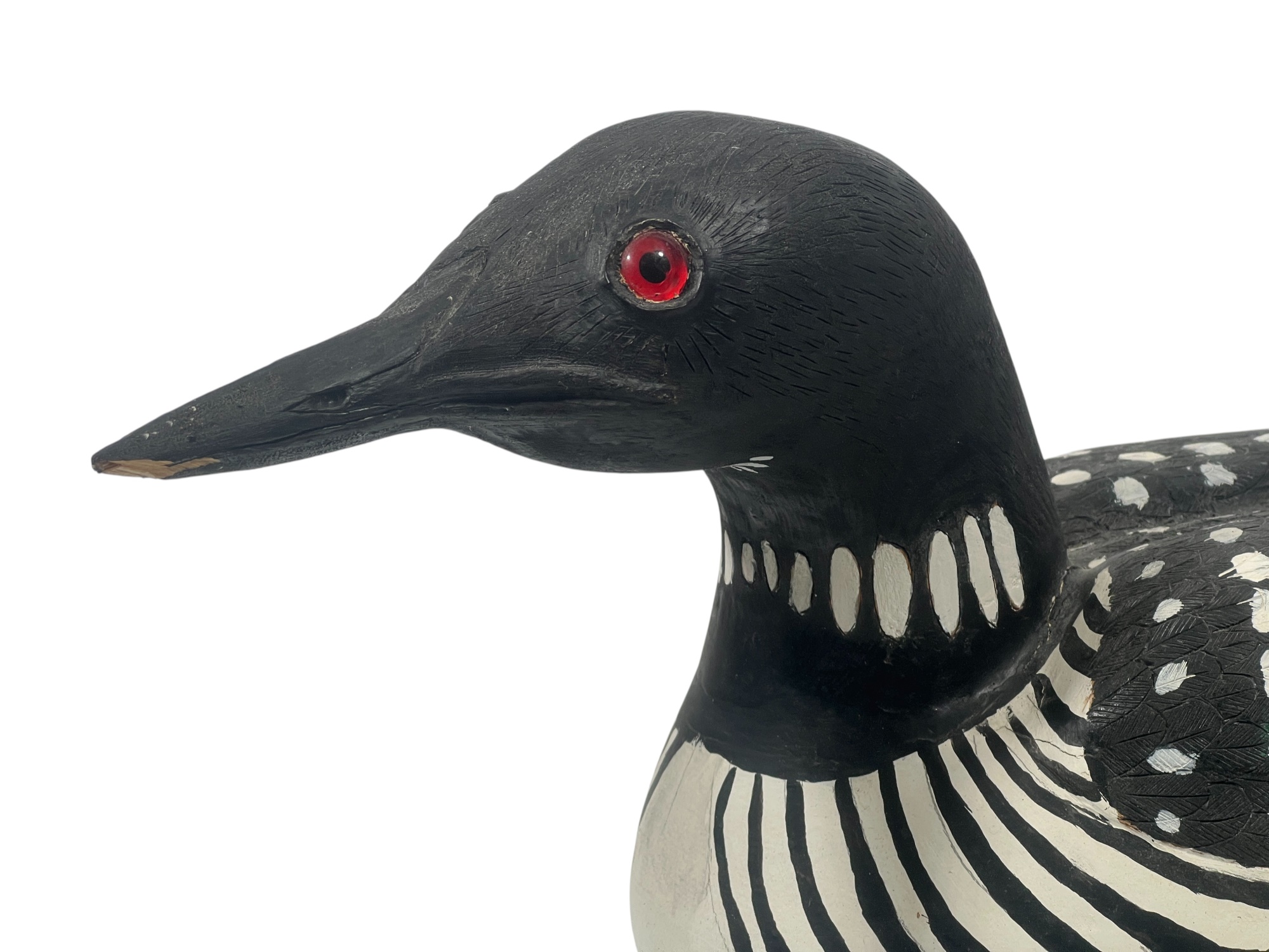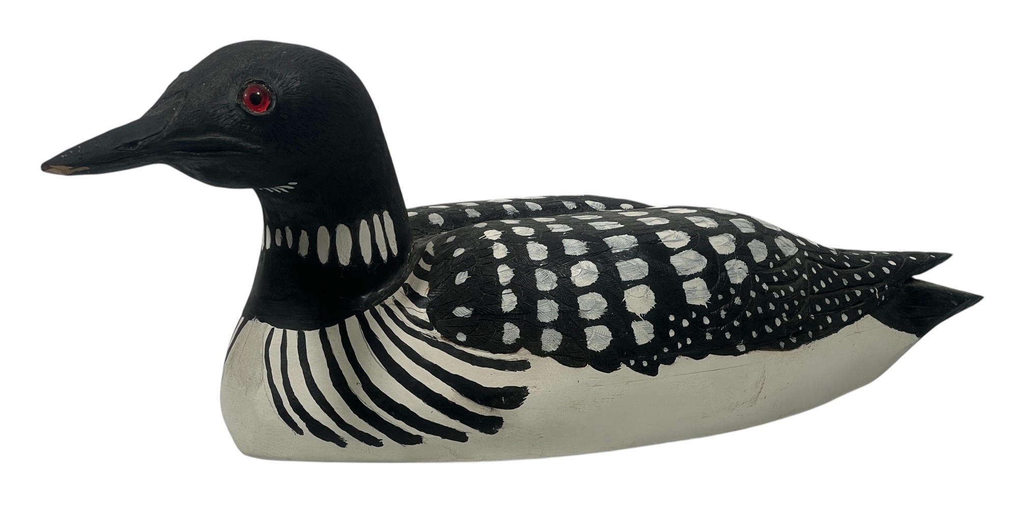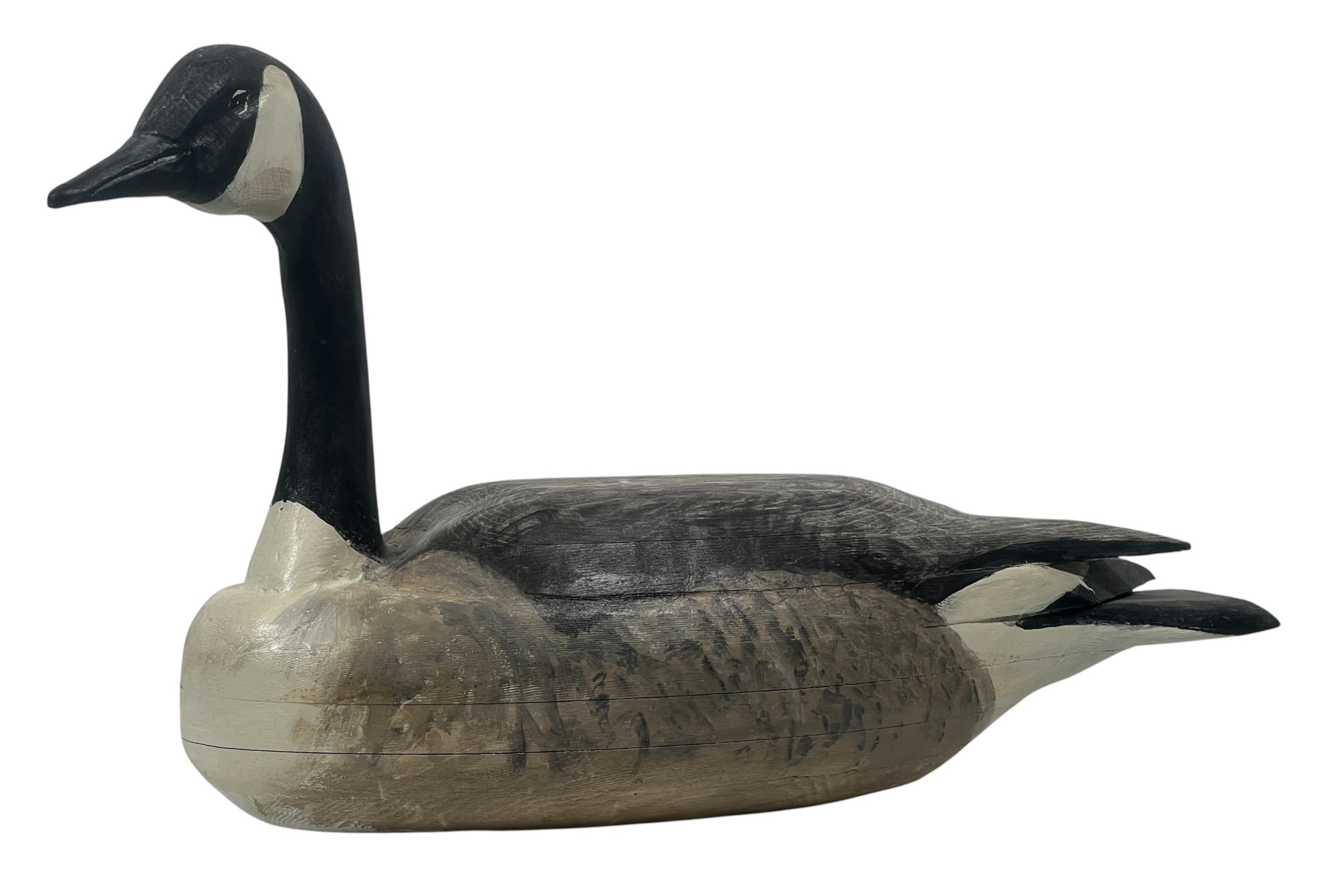 Carved & painted Canada goose signed & personalized under base. Along with a large carved & painted Common loon. 12 x 6 x 21 inches. Condition: Loss to loon bill. Temp No 8752