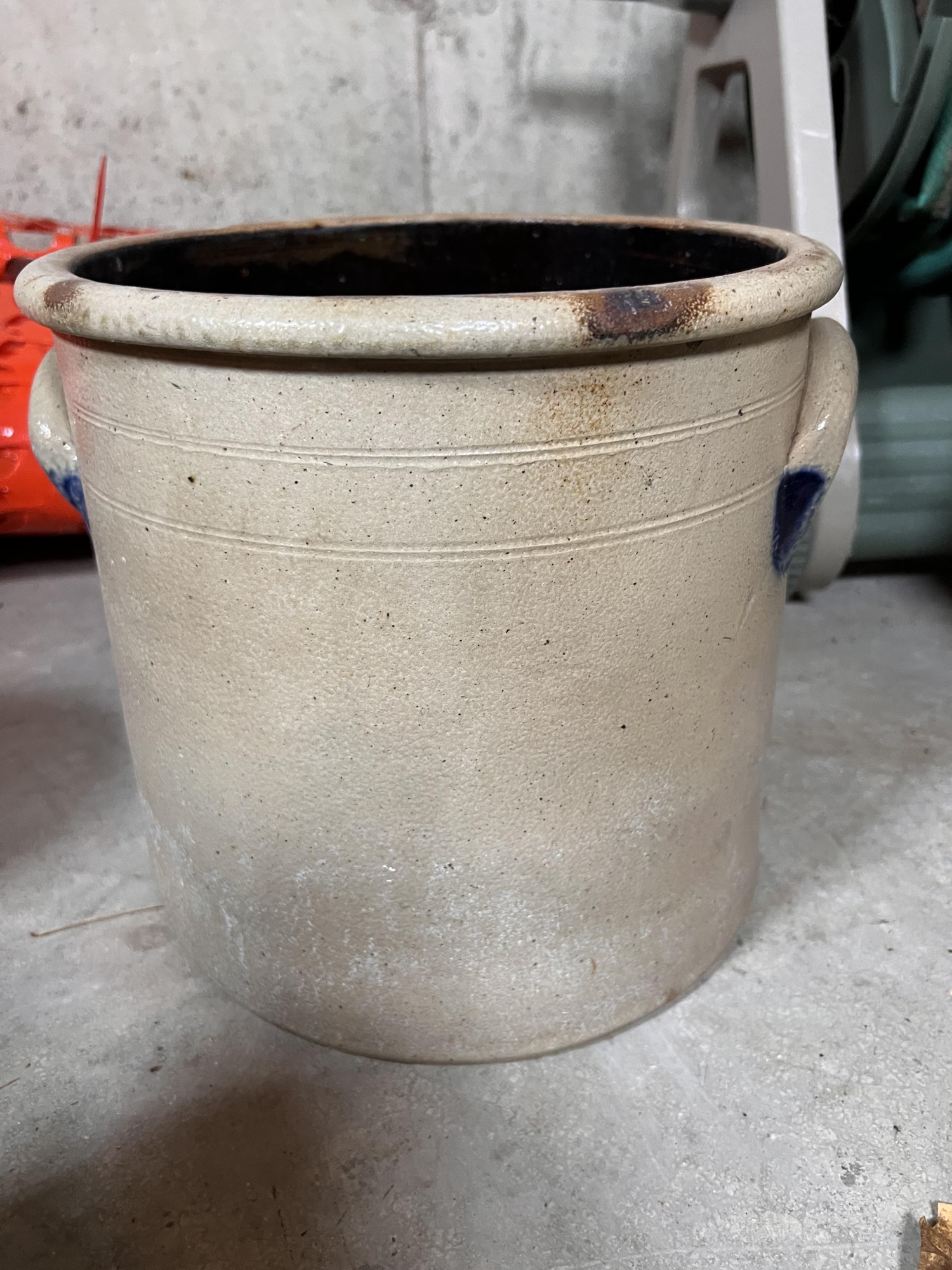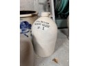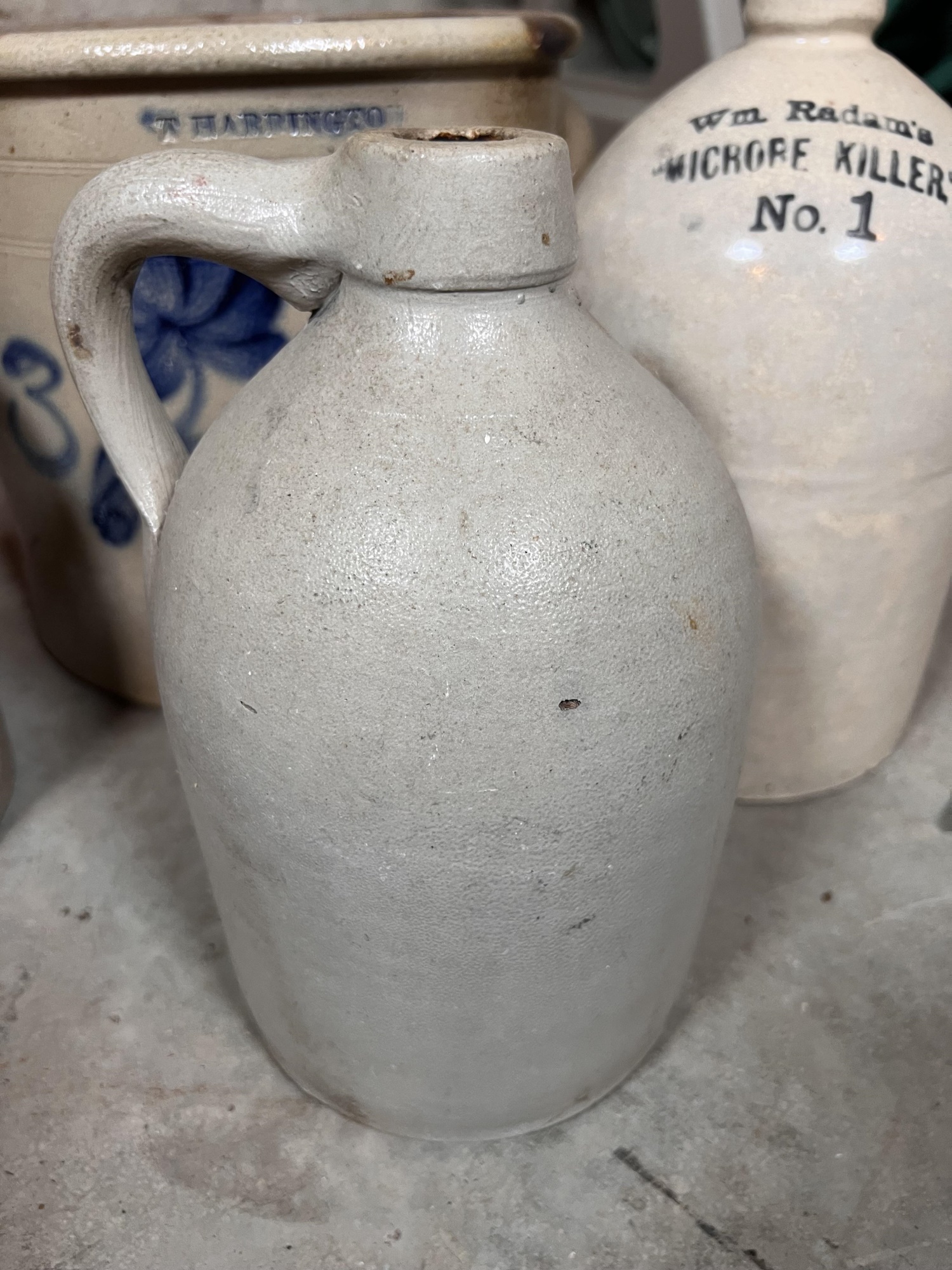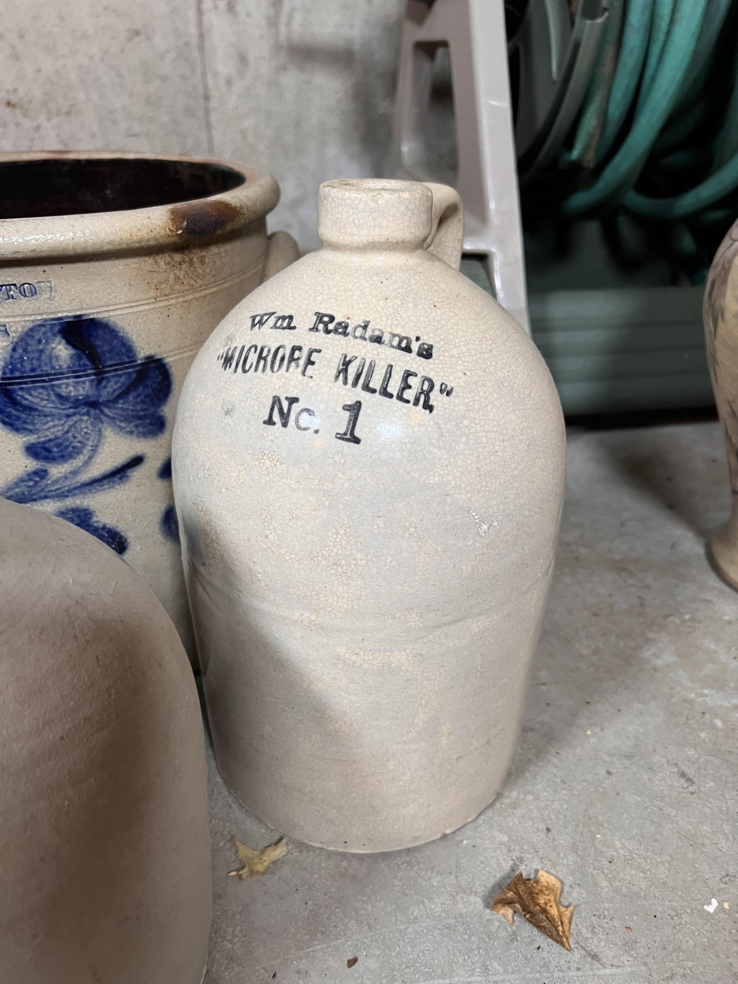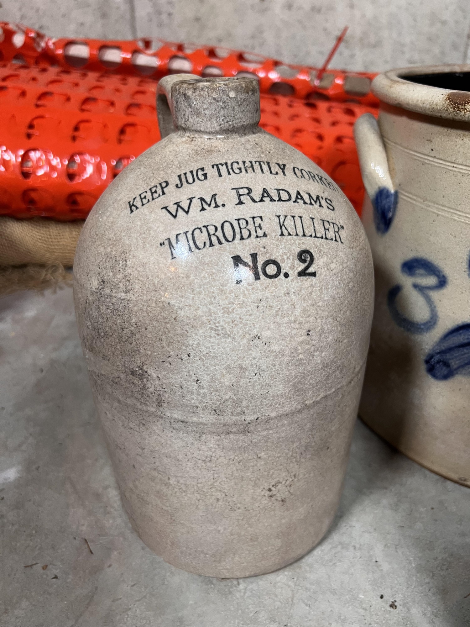 Cobalt floral spray. 10.5 x 11 inches and Radam's Microbe Killer No. 2. 11 inches Condition: Small tight spider underbase