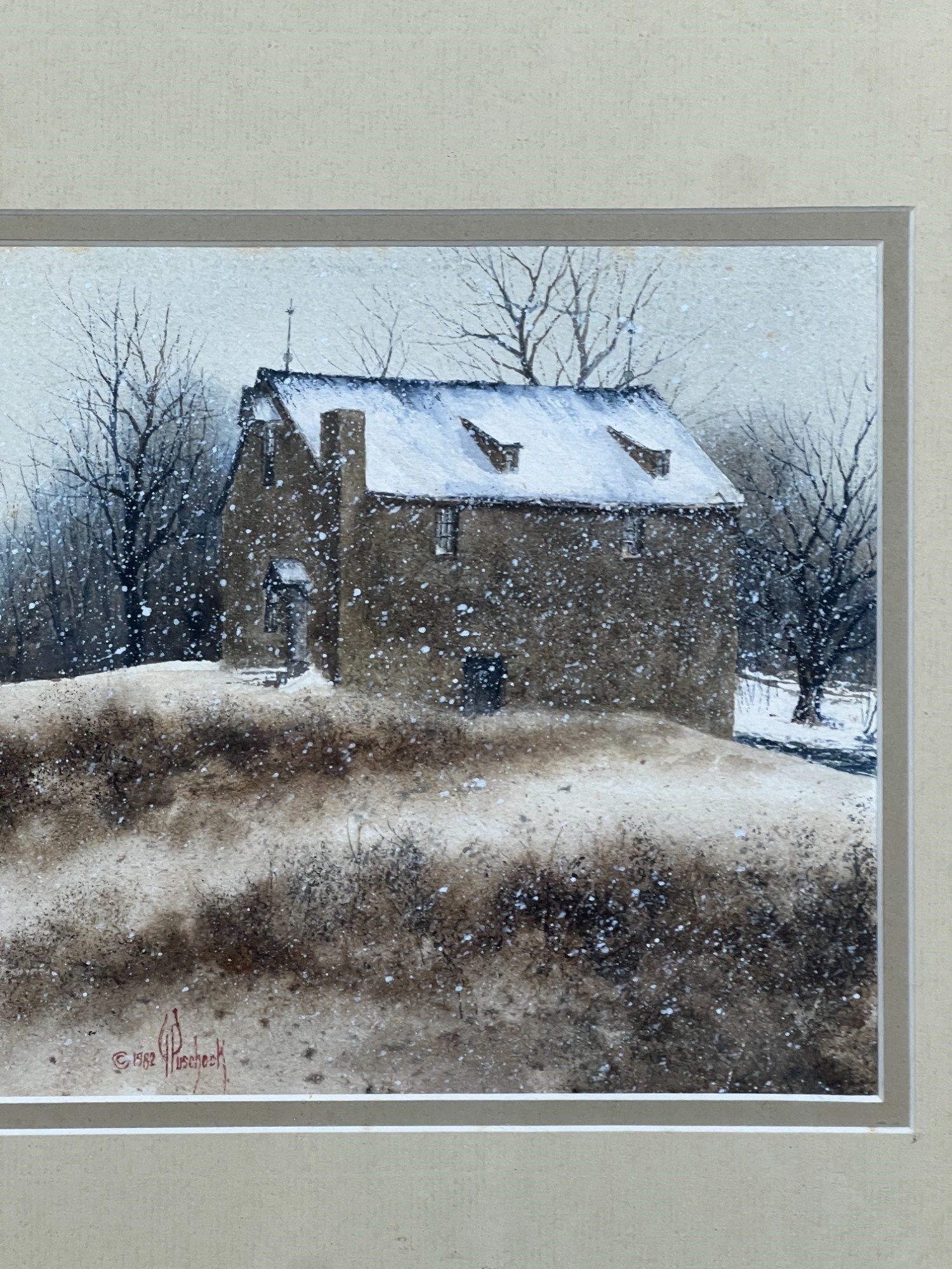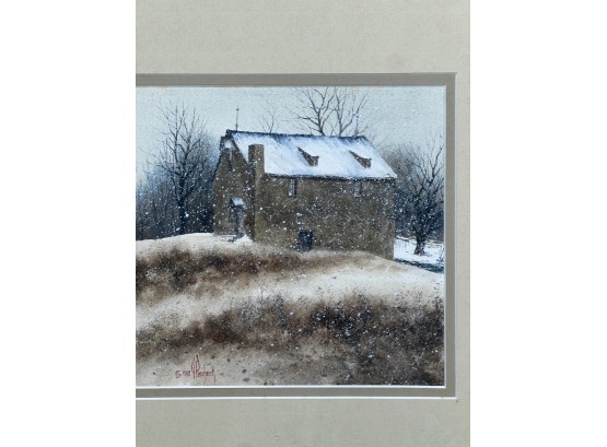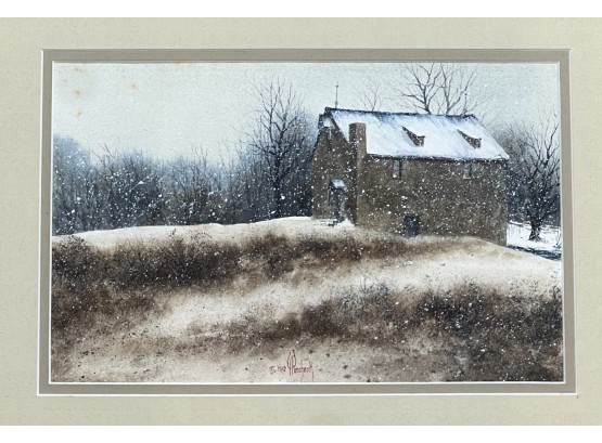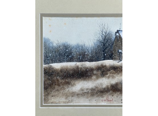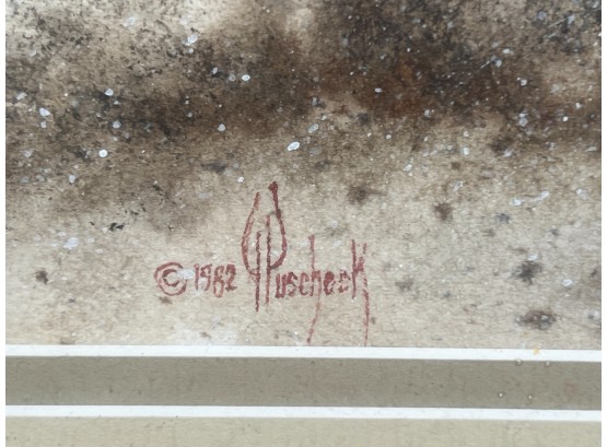Untitled landscape 1982 watercolor dry point 7 x 11 inches. signed. framed 14.5 x 18 inches (overall) Condition: Good Temp No 6286