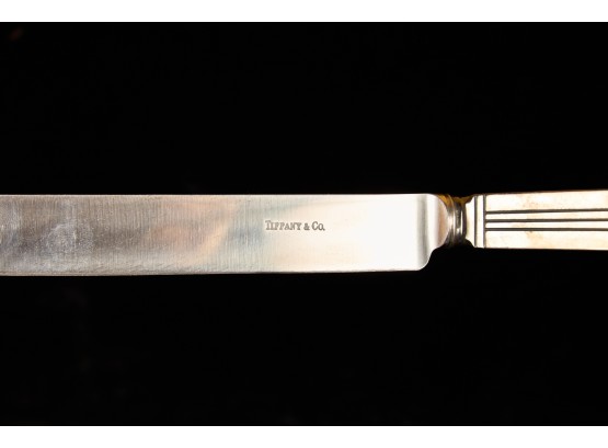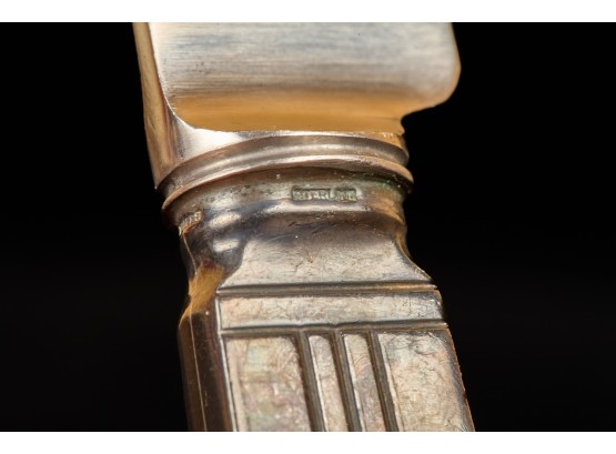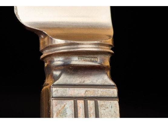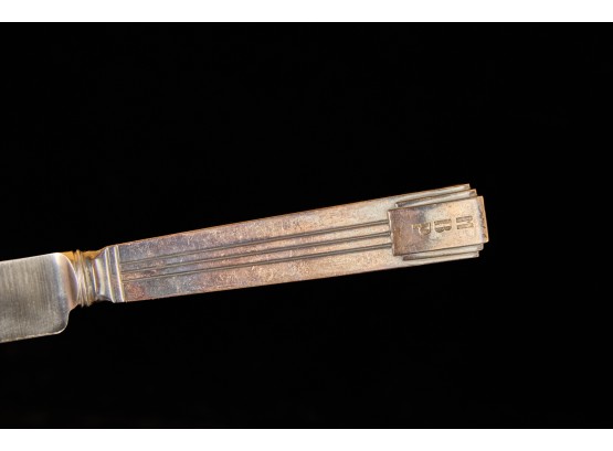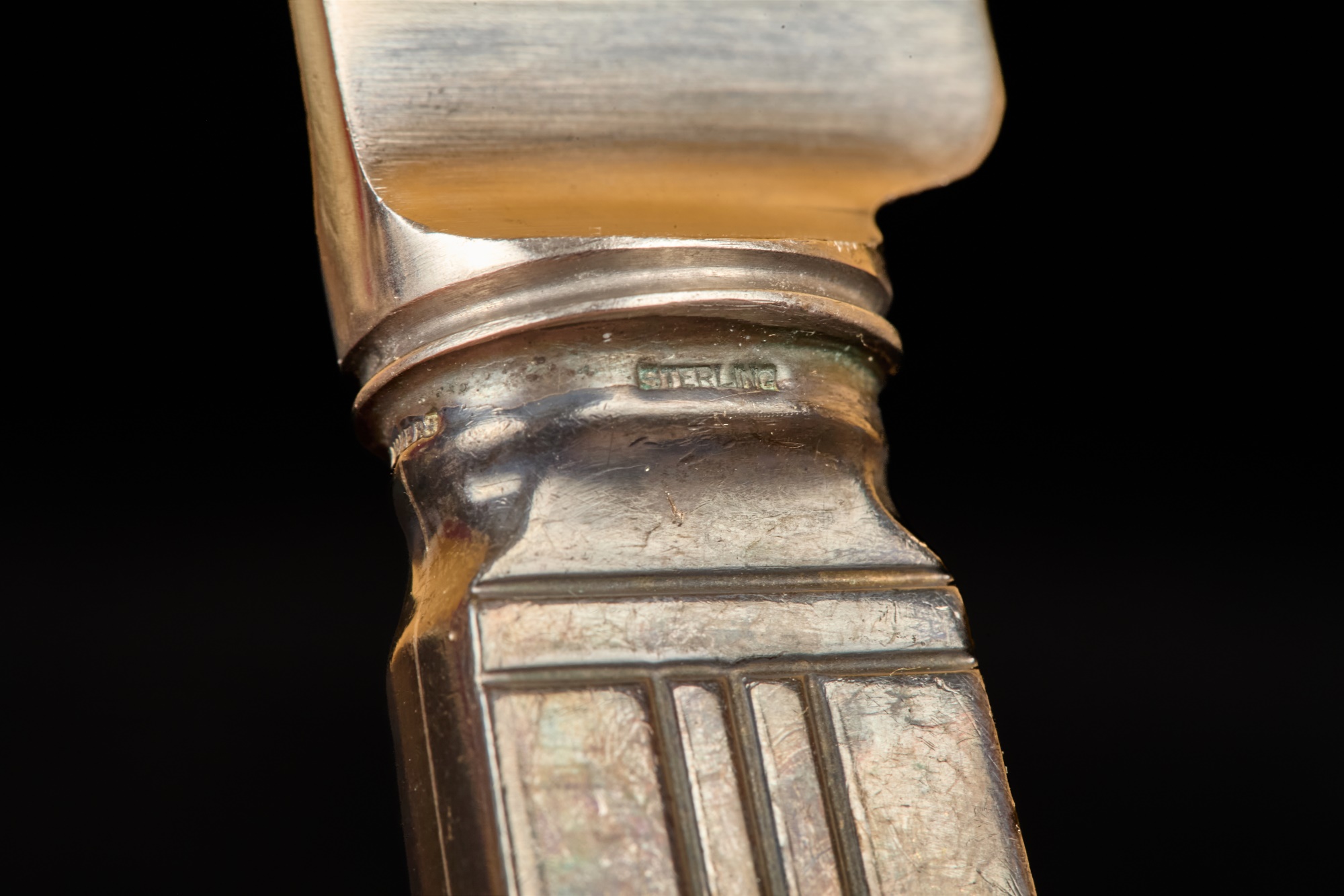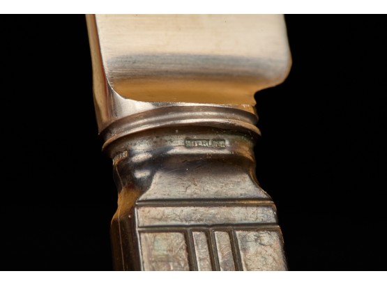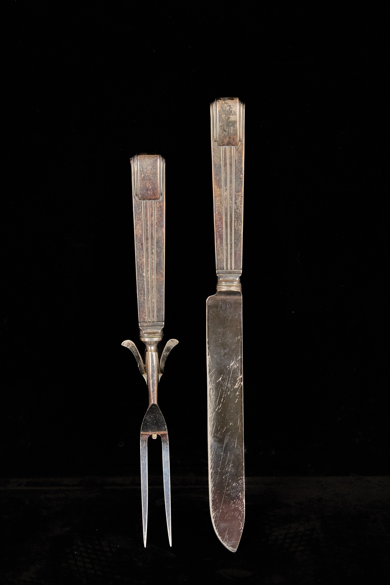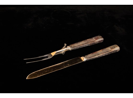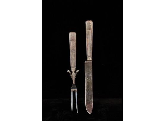 Together with it's original felt bag. 11 inches (and smaller). Sterling handles with Stainless blade and fork. Condition: Monogrammed Temp No 6195