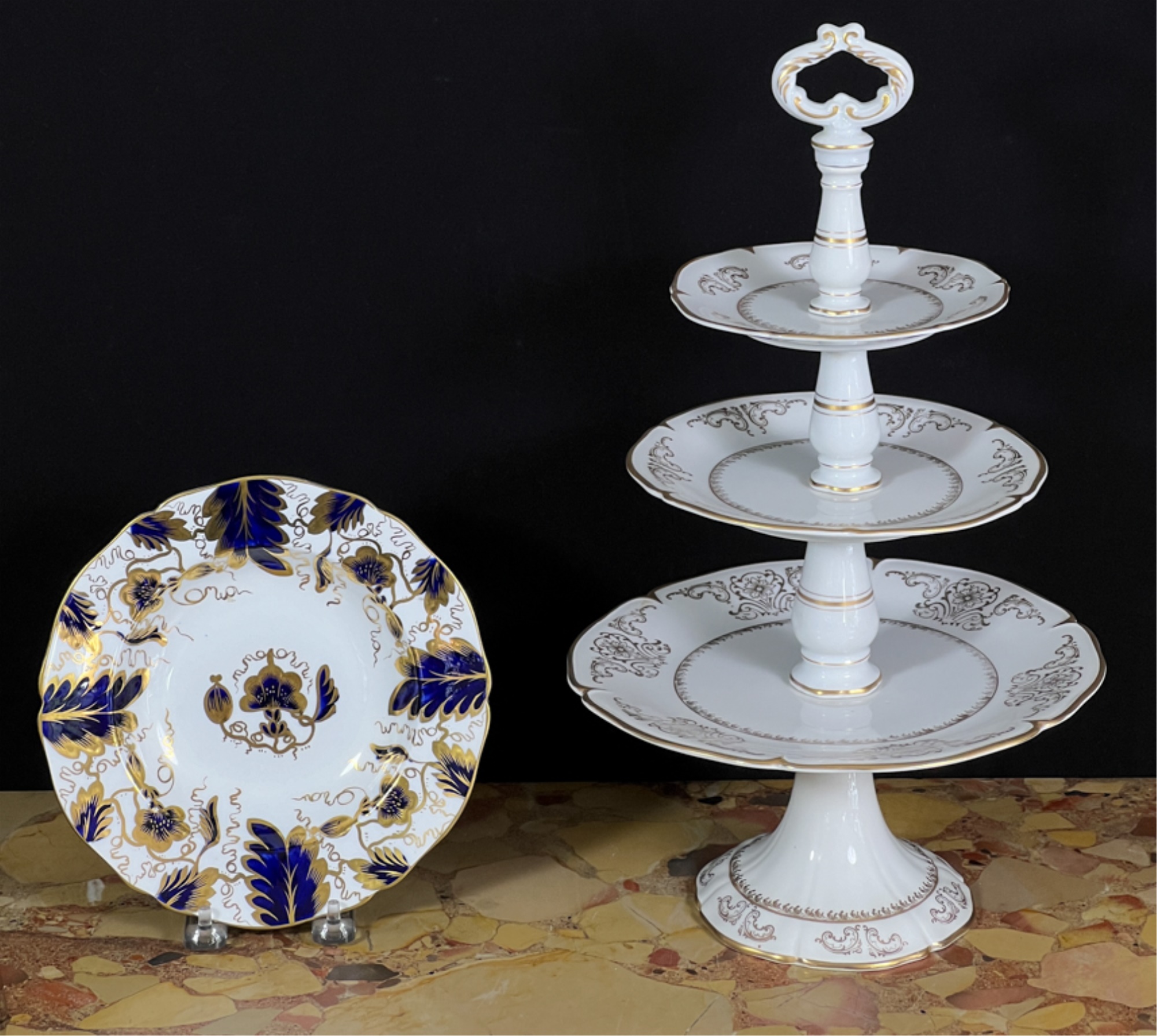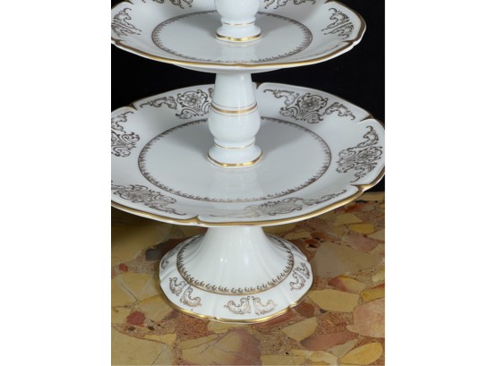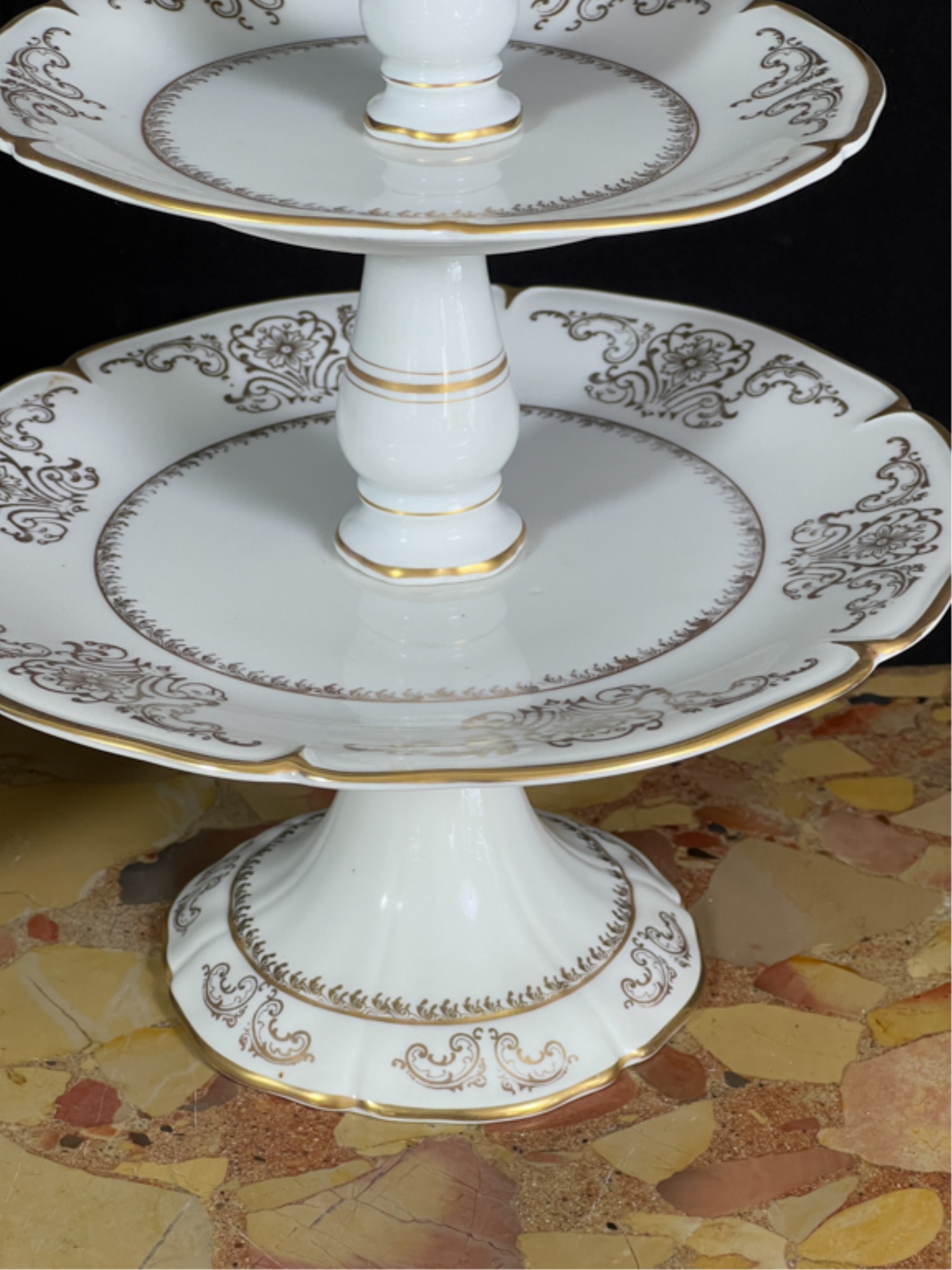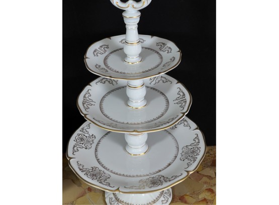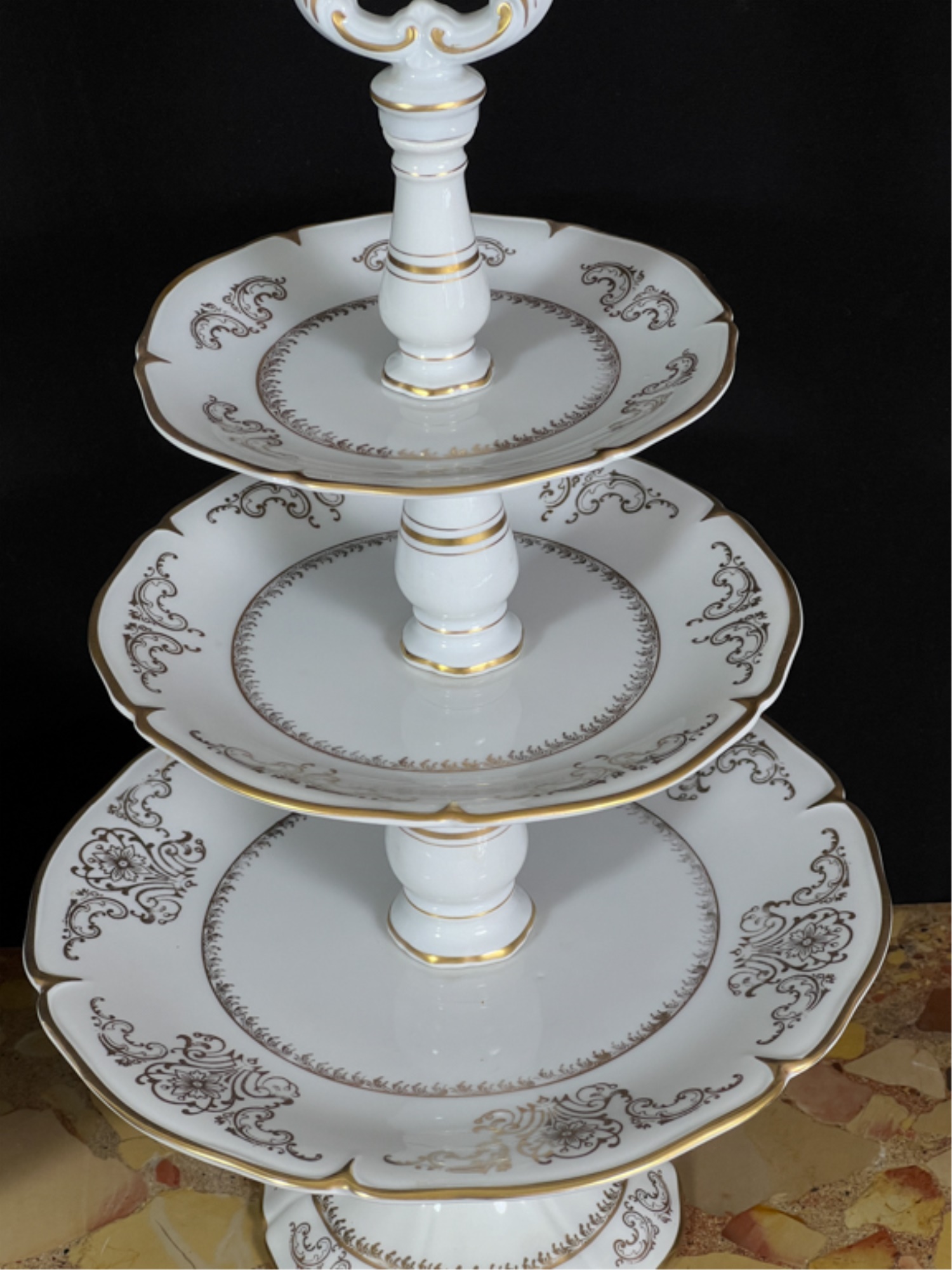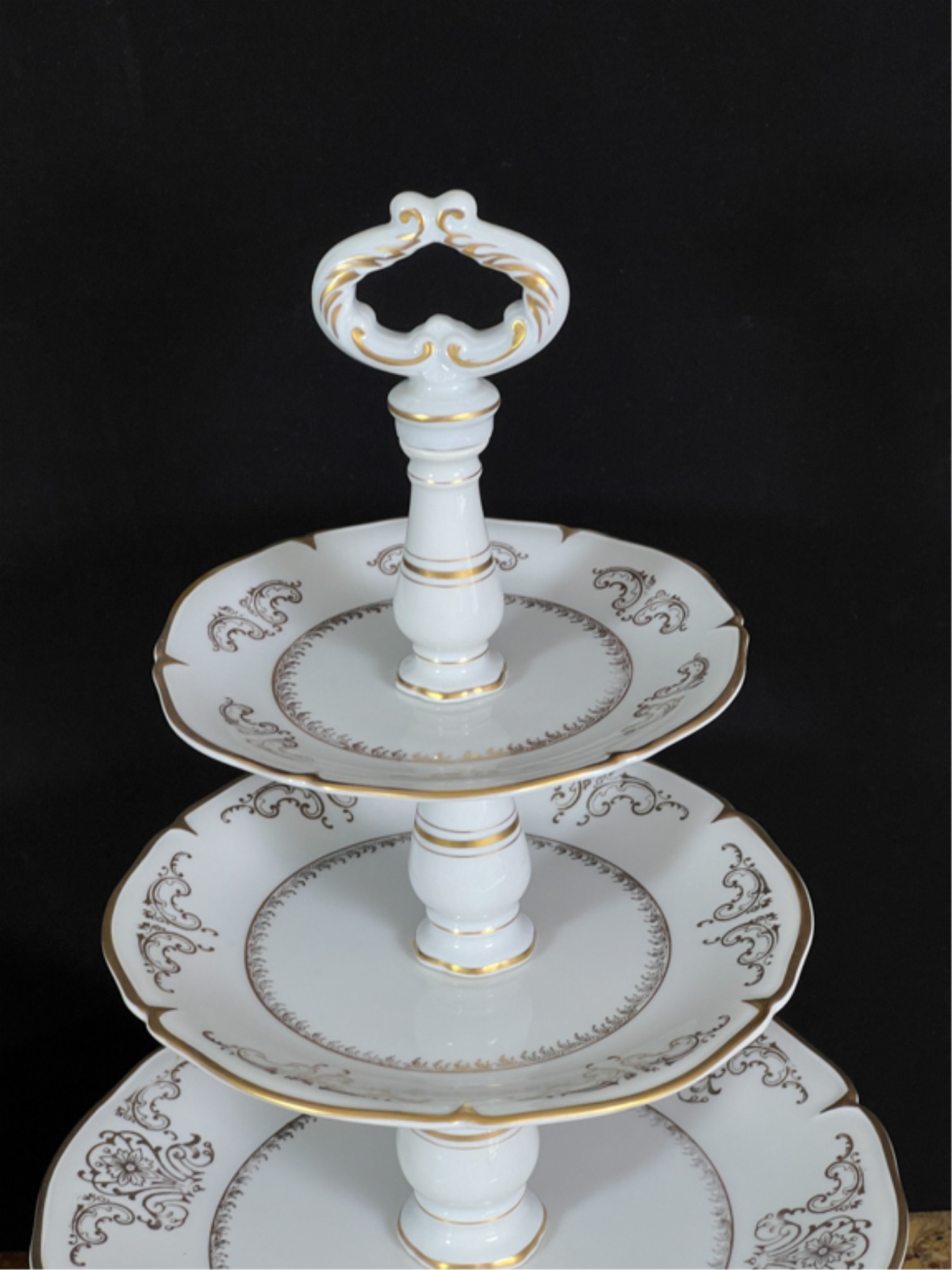 Cake plate measures 16 1/2 inches tall.