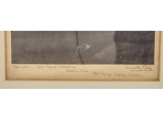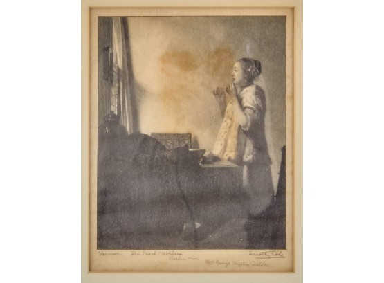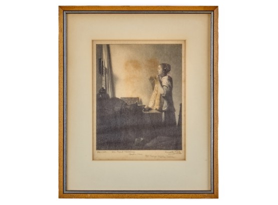Pencil signed Steel engraving after Johannes Vermeer (1632-1675). Framed. 18 1/4 x 15 1/4 inches. Provenance: by direct decent of the family of George M. Dallas, Vice President under James K. Polk. Condition: Some toning.