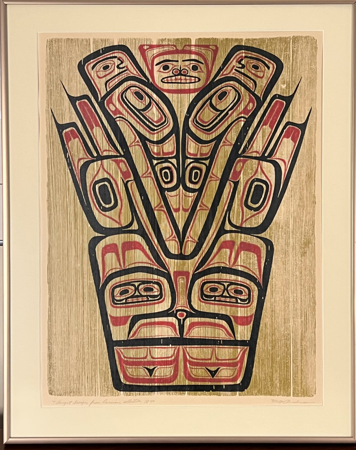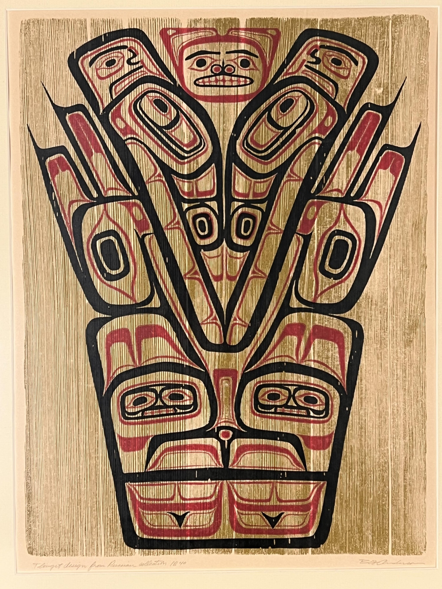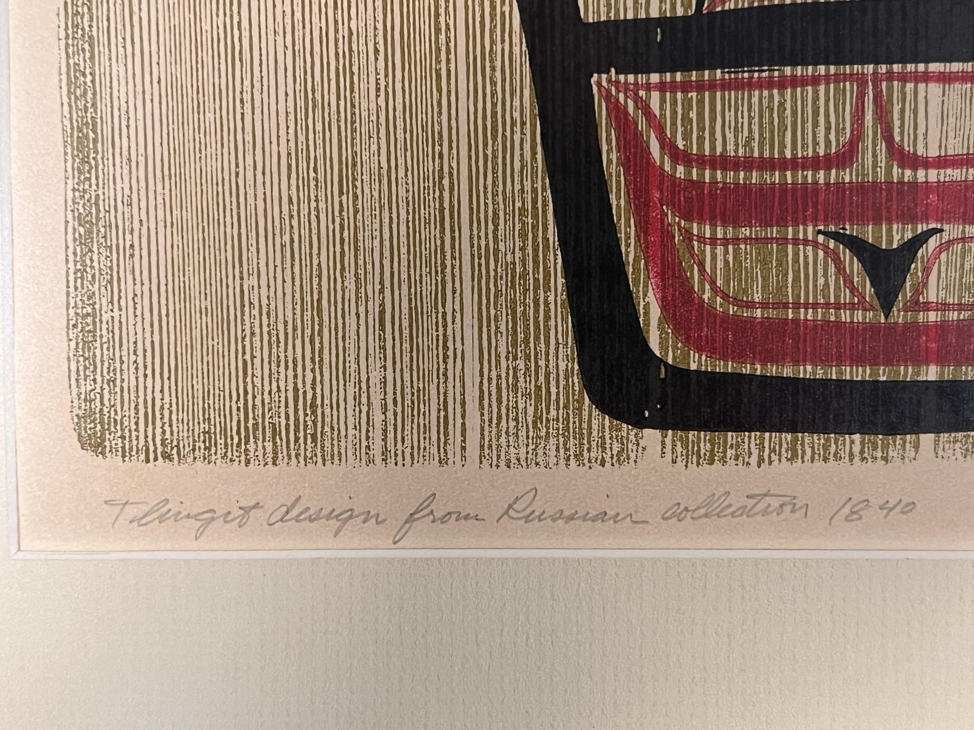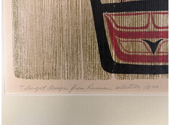 Northwest coast Indian Tribe design, from the Russia Collection 1840. 20 1/4" x 16 1/4" framed