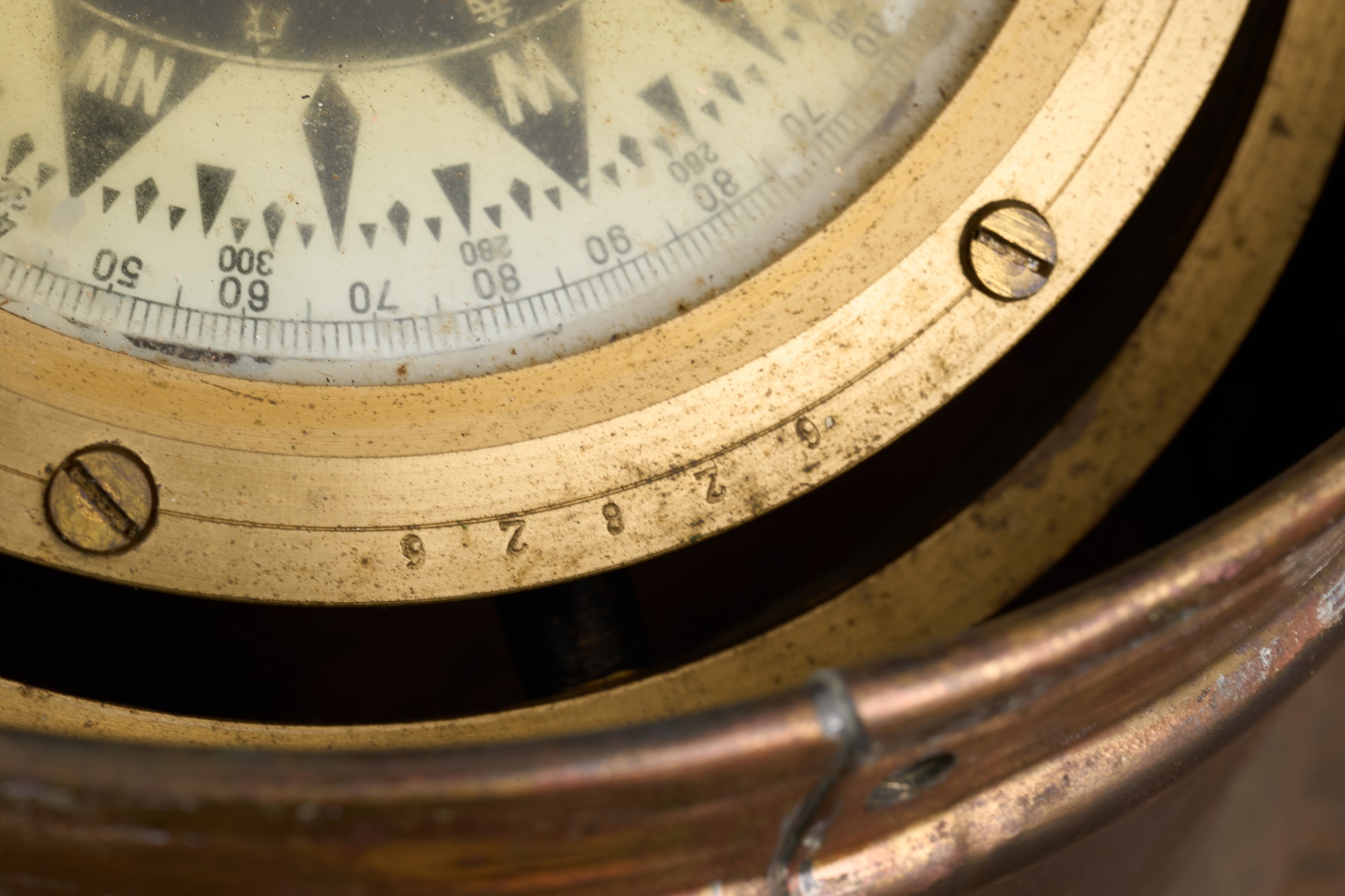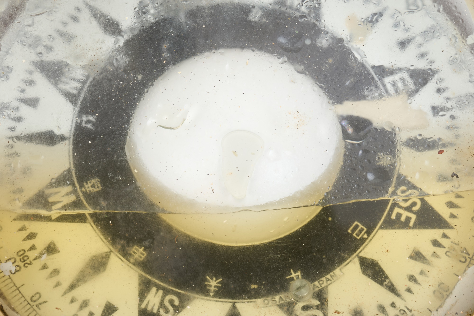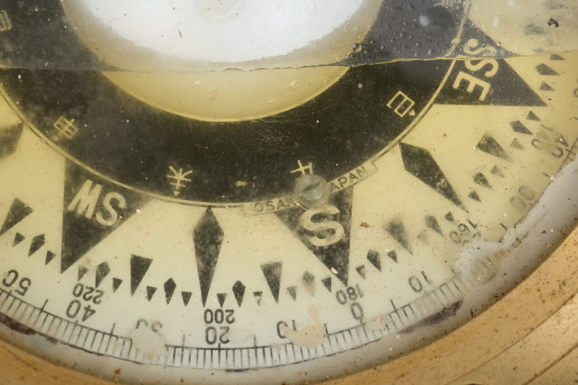 Notes: Tarnish, compass beneath lens in need of cleaning