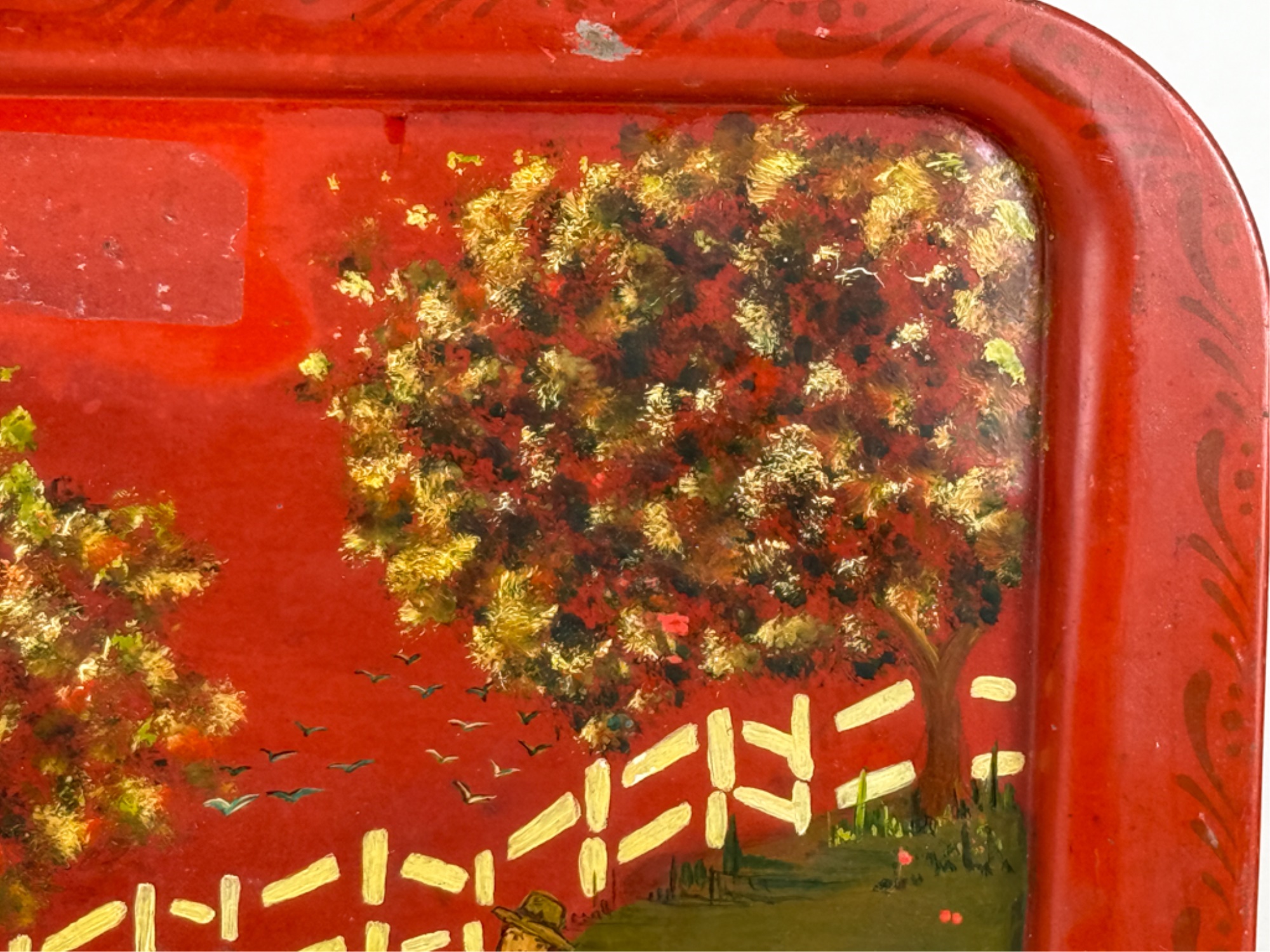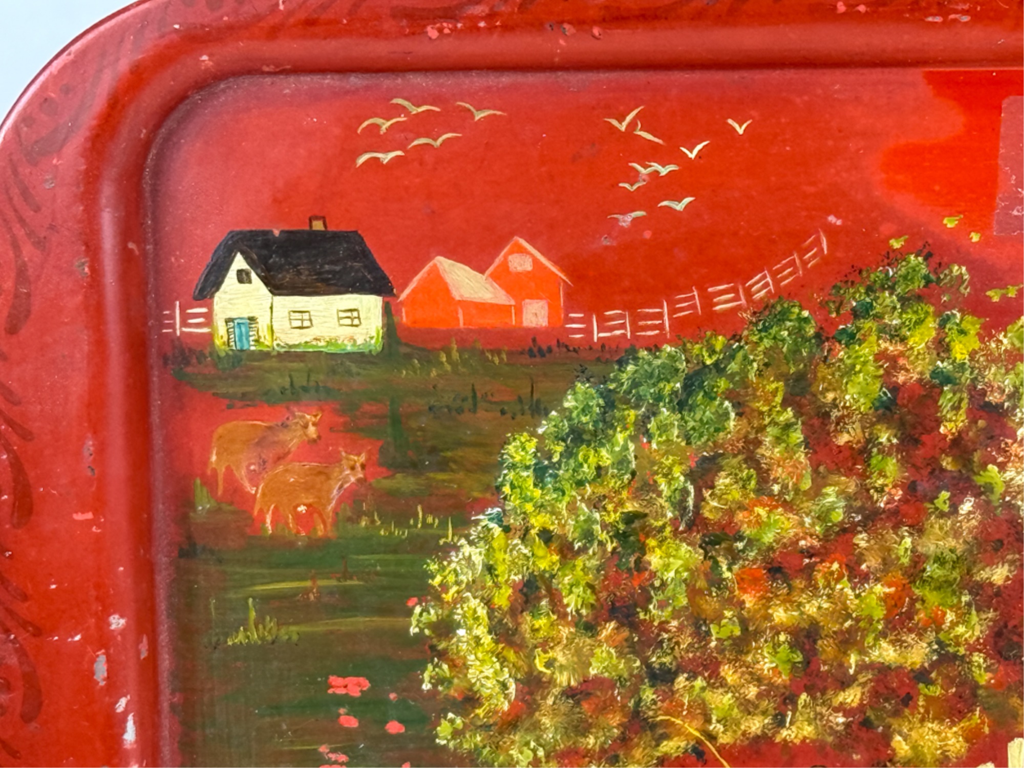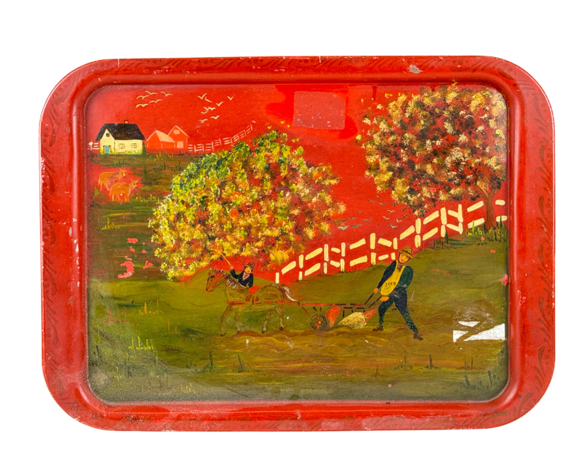 13 x 17 1/2 inches. Condition: Some denting to tray, paint loss, etc. See photos.