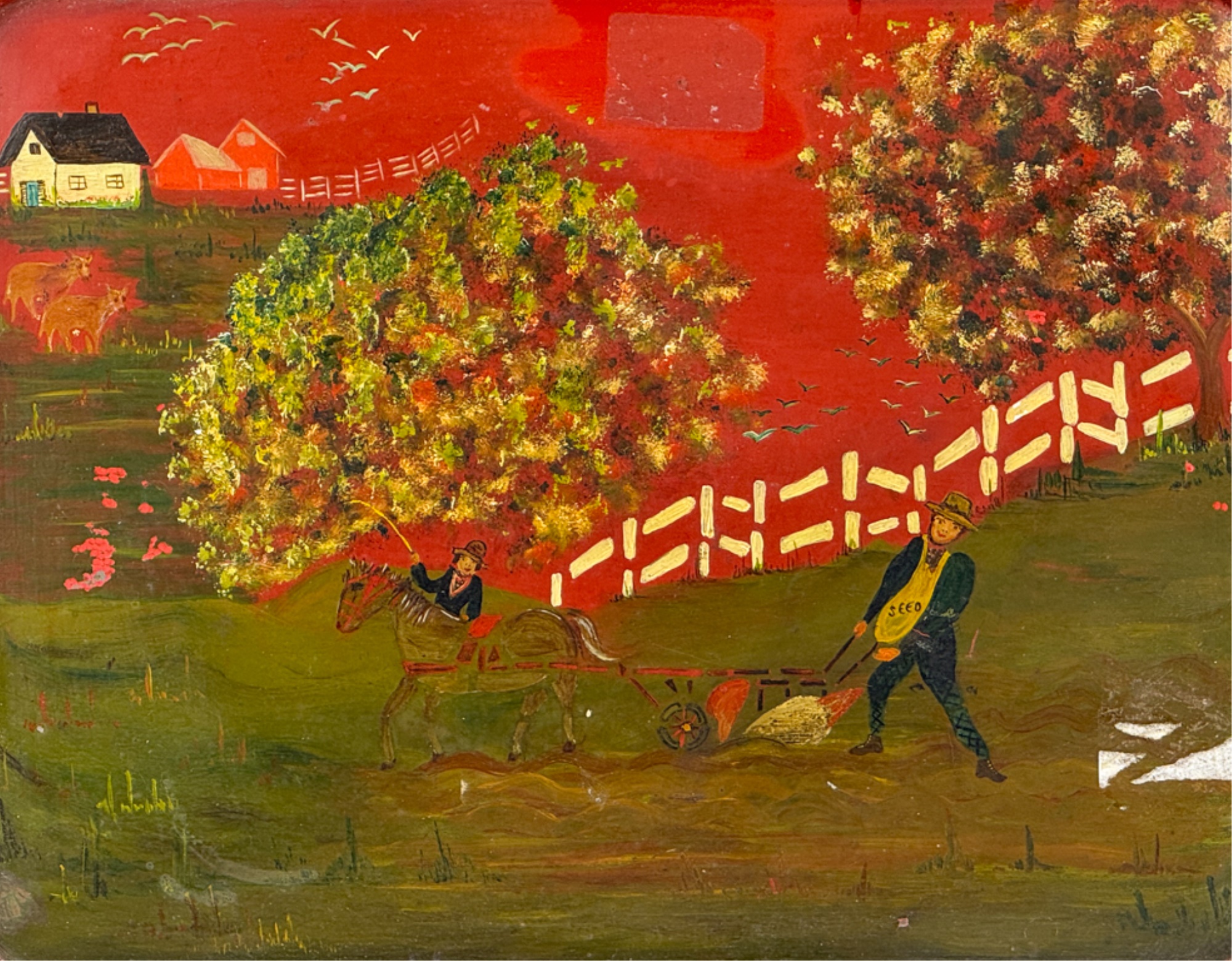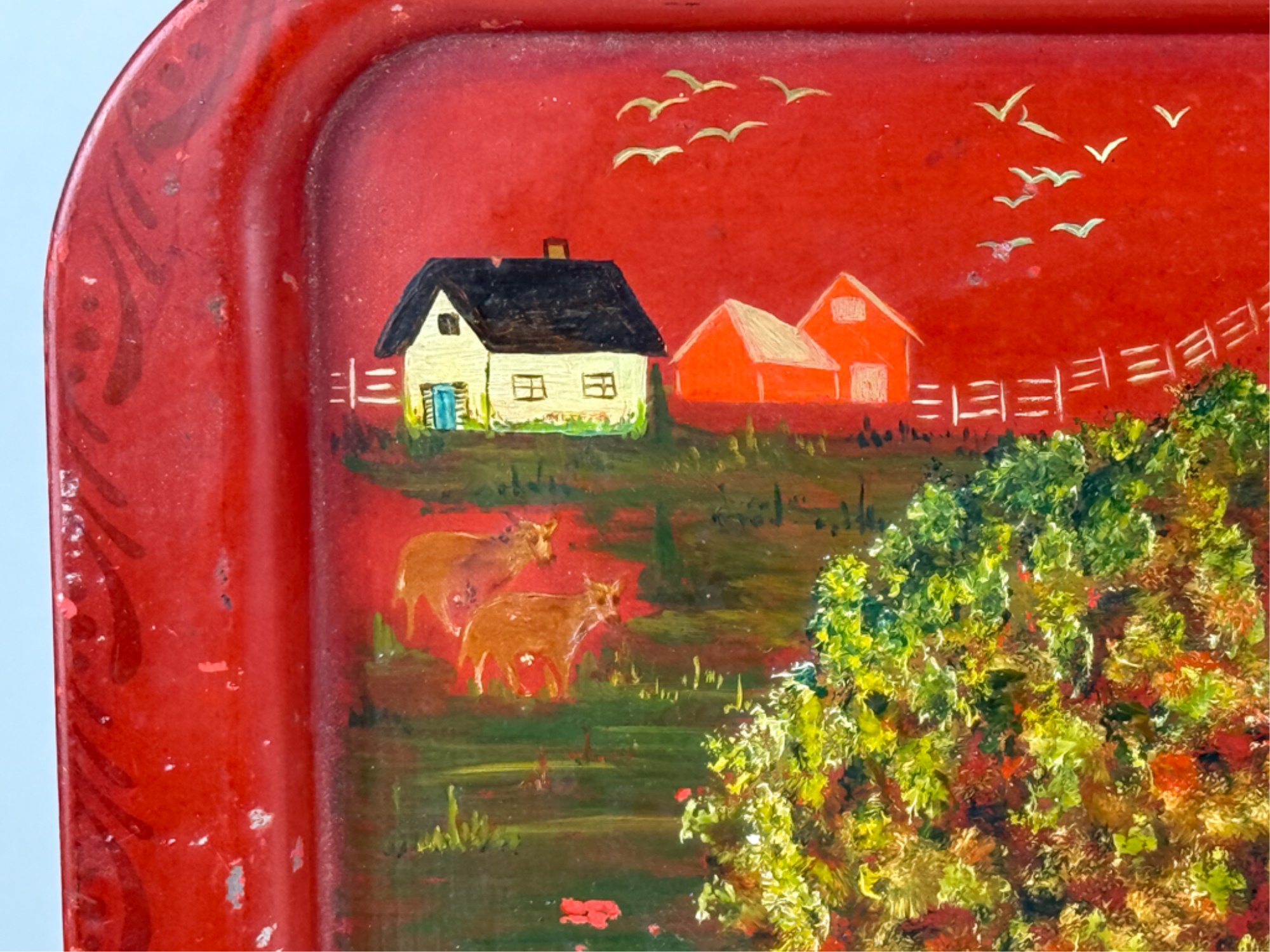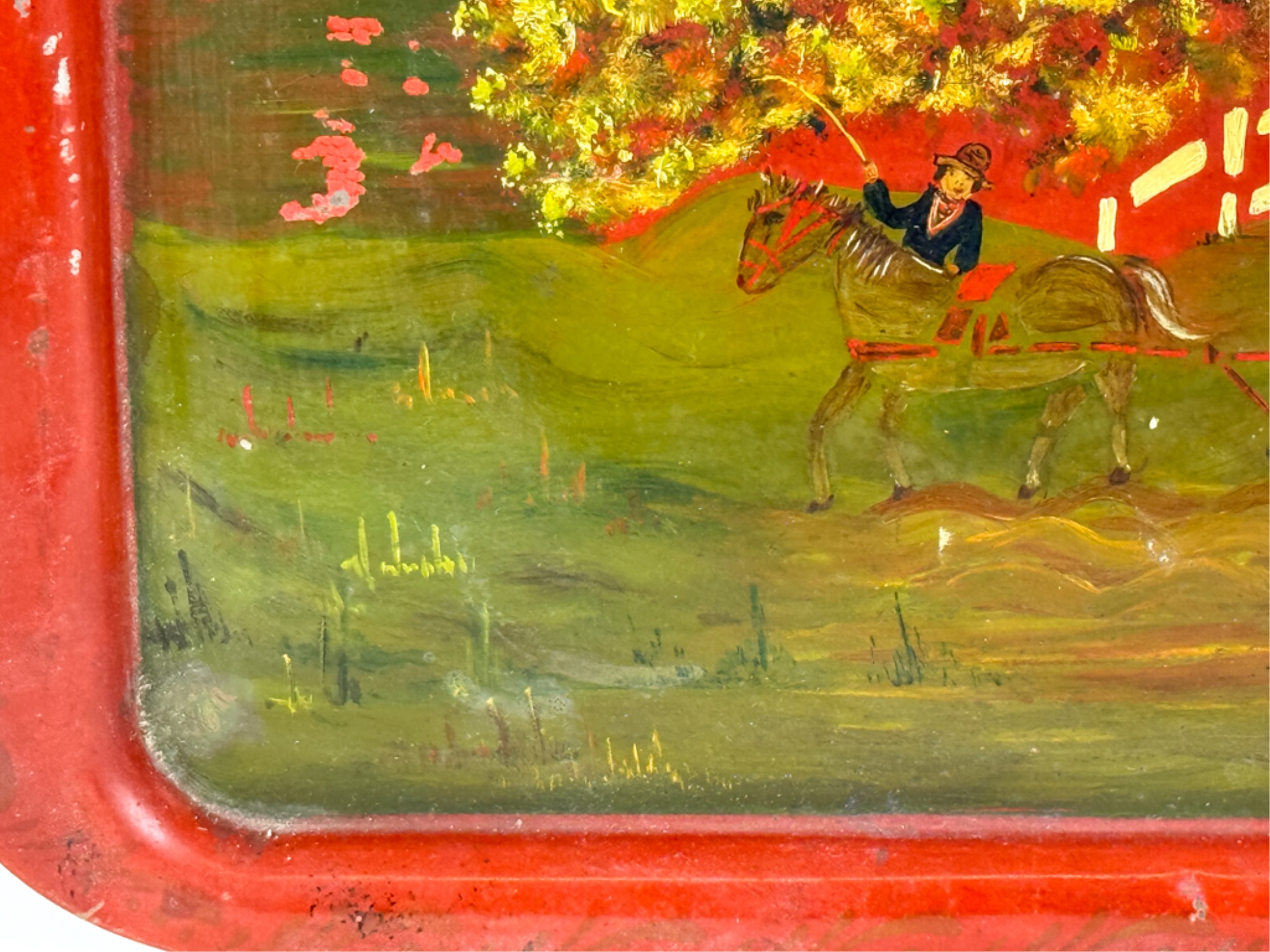 13 x 17 1/2 inches. Condition: Some denting to tray, paint loss, etc. See photos.