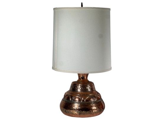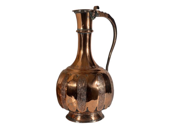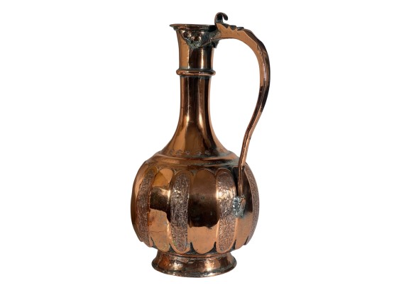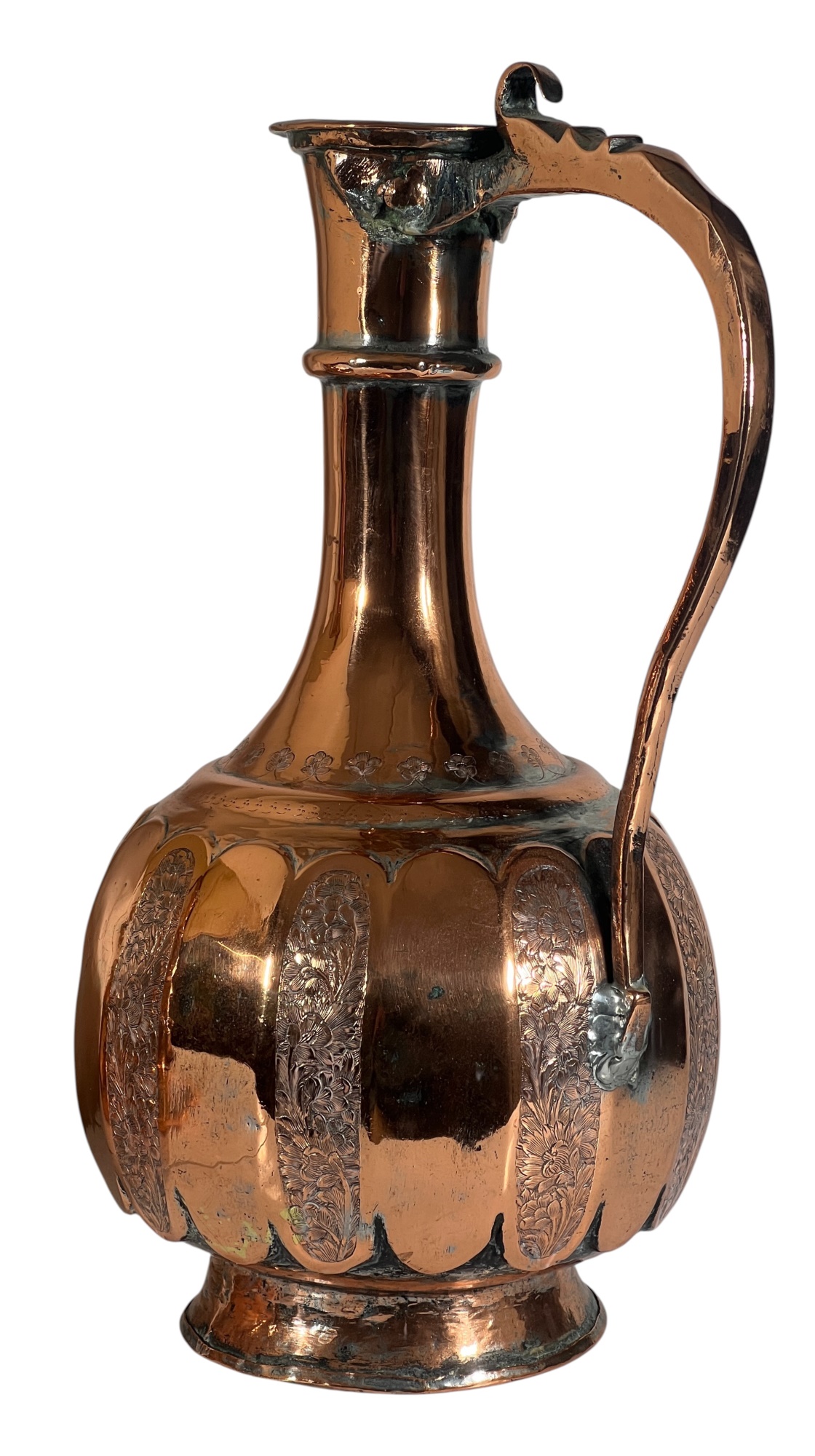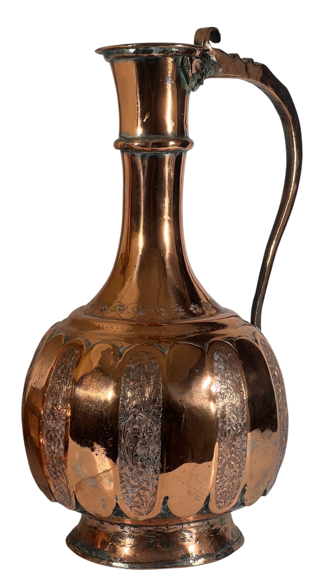 Ewer with nice floral engraved panels, vase mounted as lamp. 27 inches to finial. Condition: Good, lid may be absent from ewer. Temp No 8860