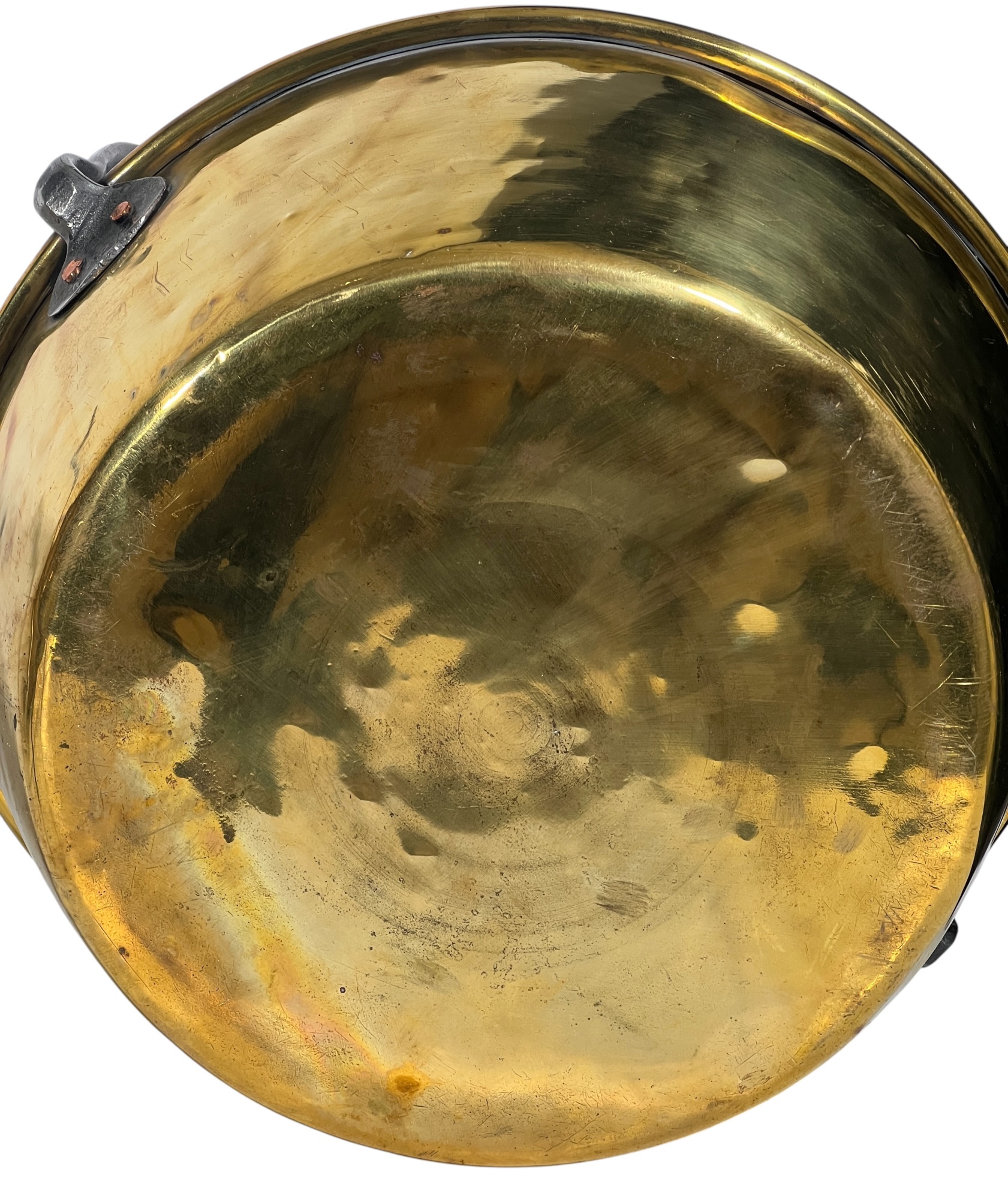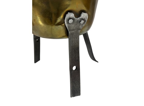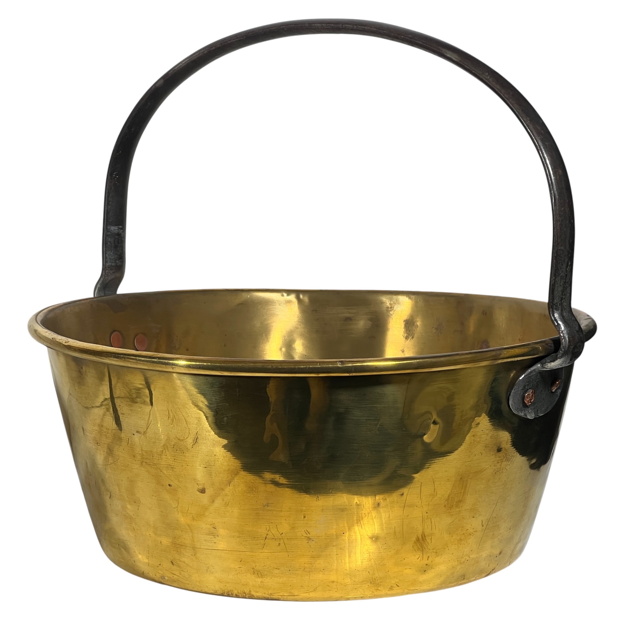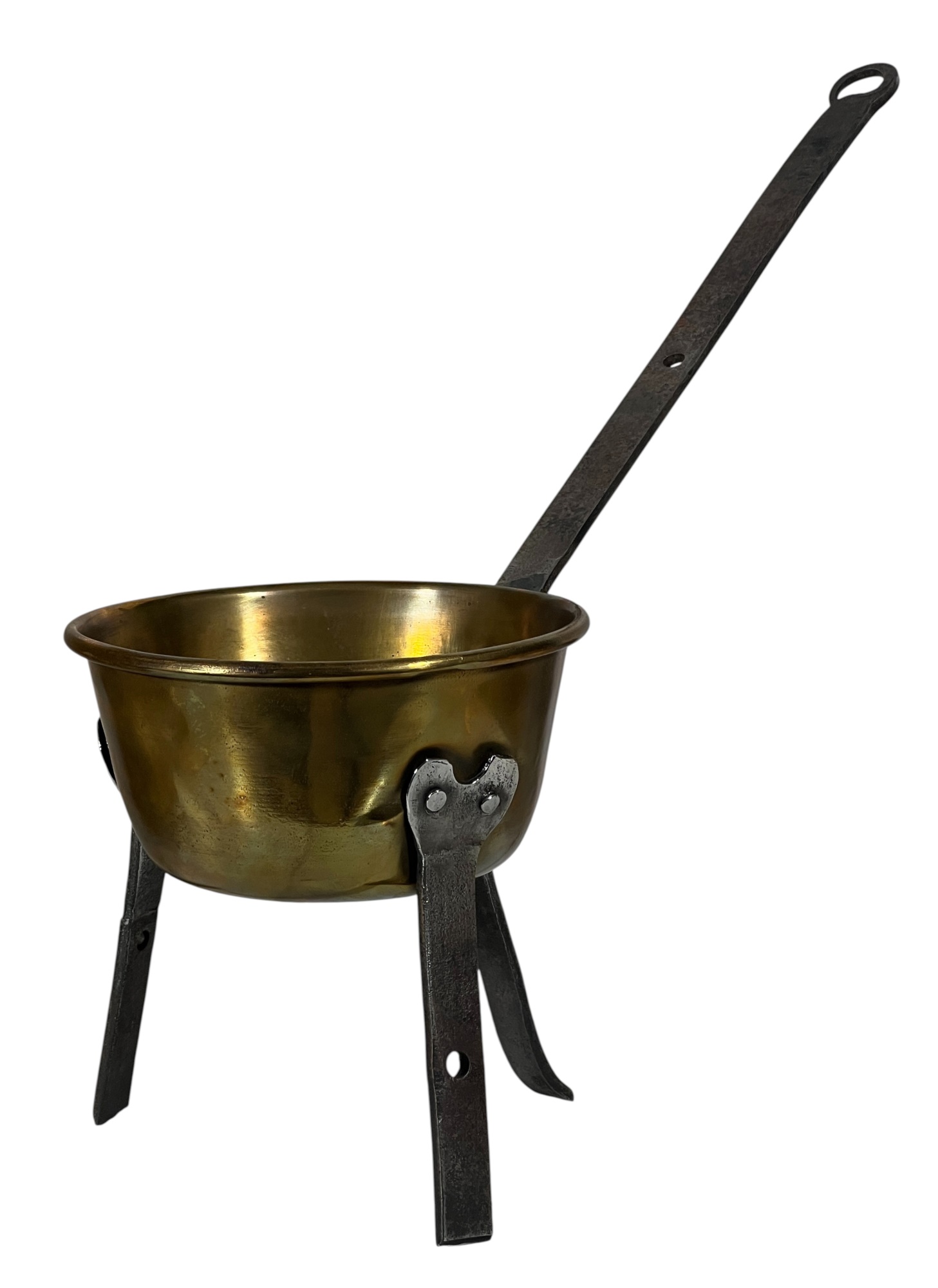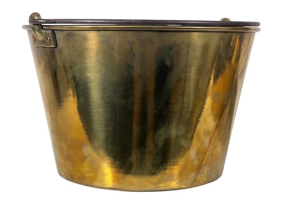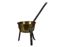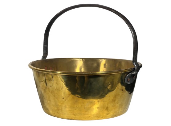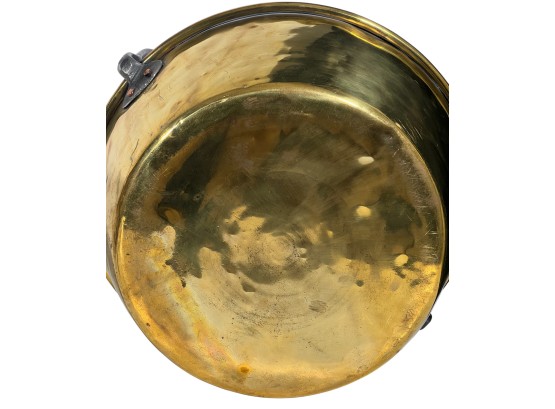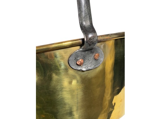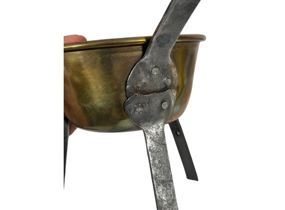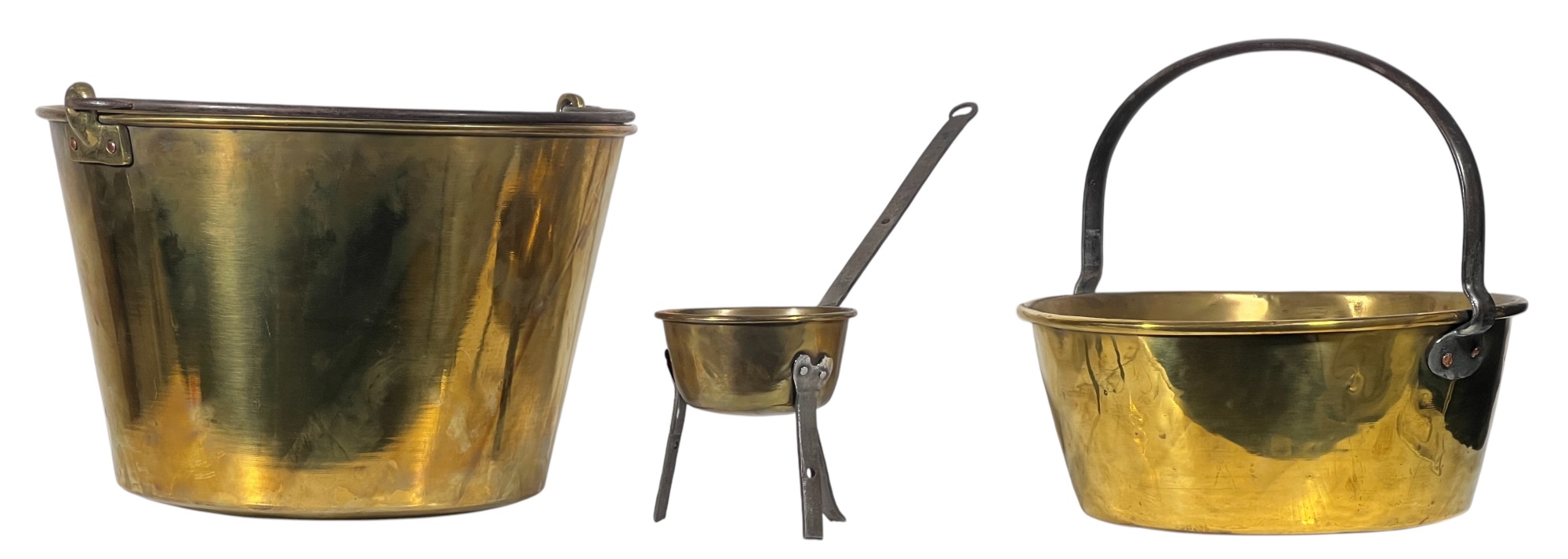 Two (19th c) brass buckets with iron handles and copper rivets along with a brass ladle with wrought iron feet & handle. 11 x 15 1/2 inches. Condition: Good. Temp No 8750