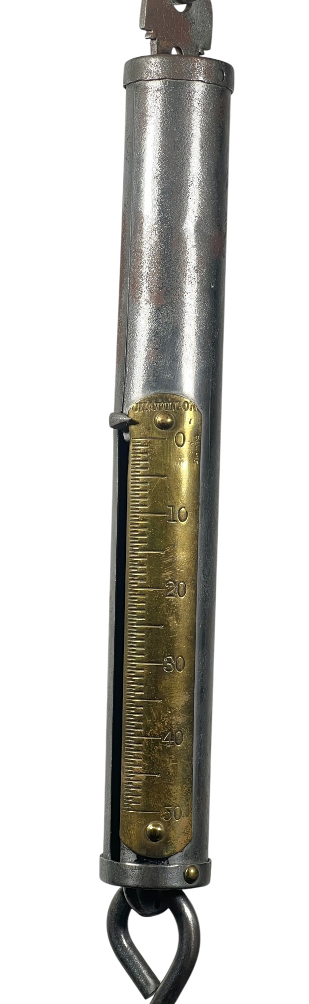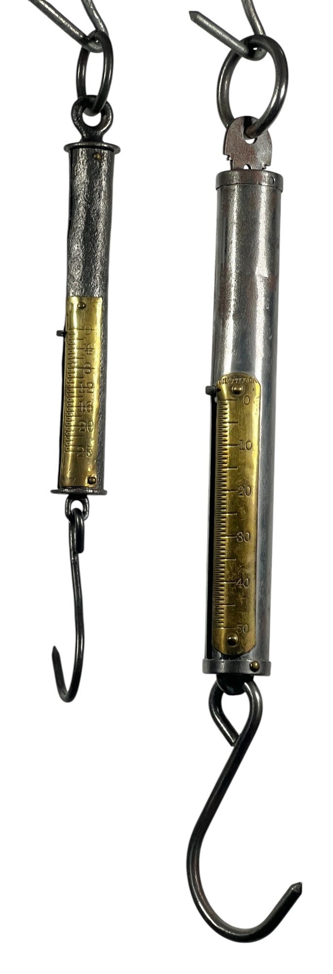 (1) Chatillon's (50) pound and (1) unmarked (25) pound. 14 inches. Condition: Good. Temp No 8821