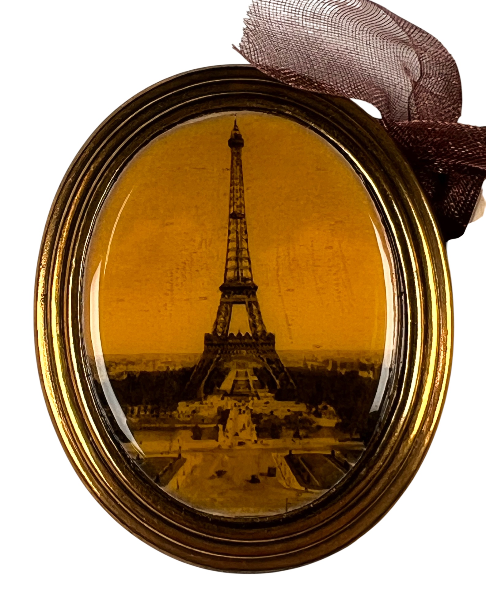 Cameo Collection Eiffel Tower brooch on brass backing. 2" x 1 3/4" Condition: Good
