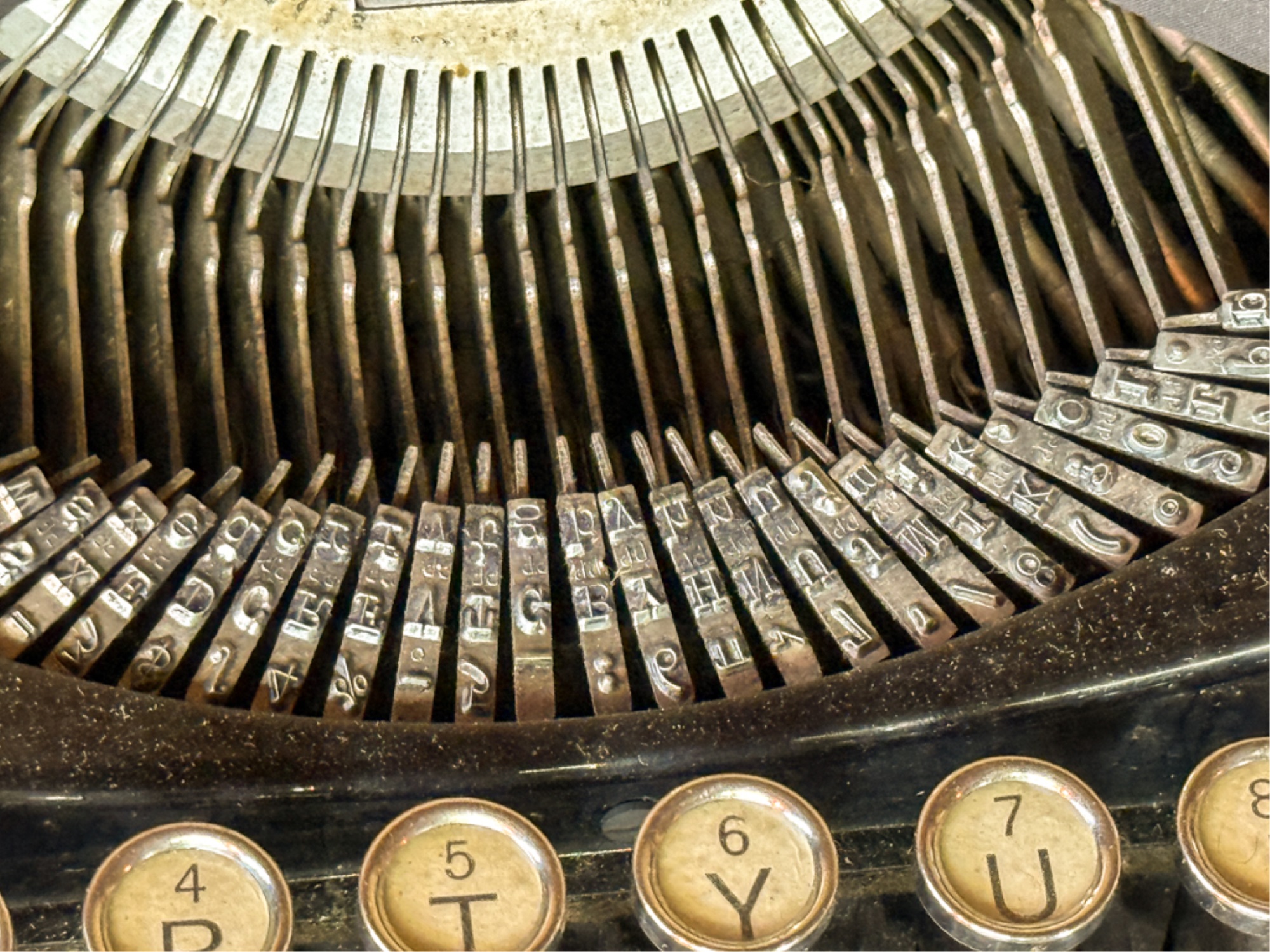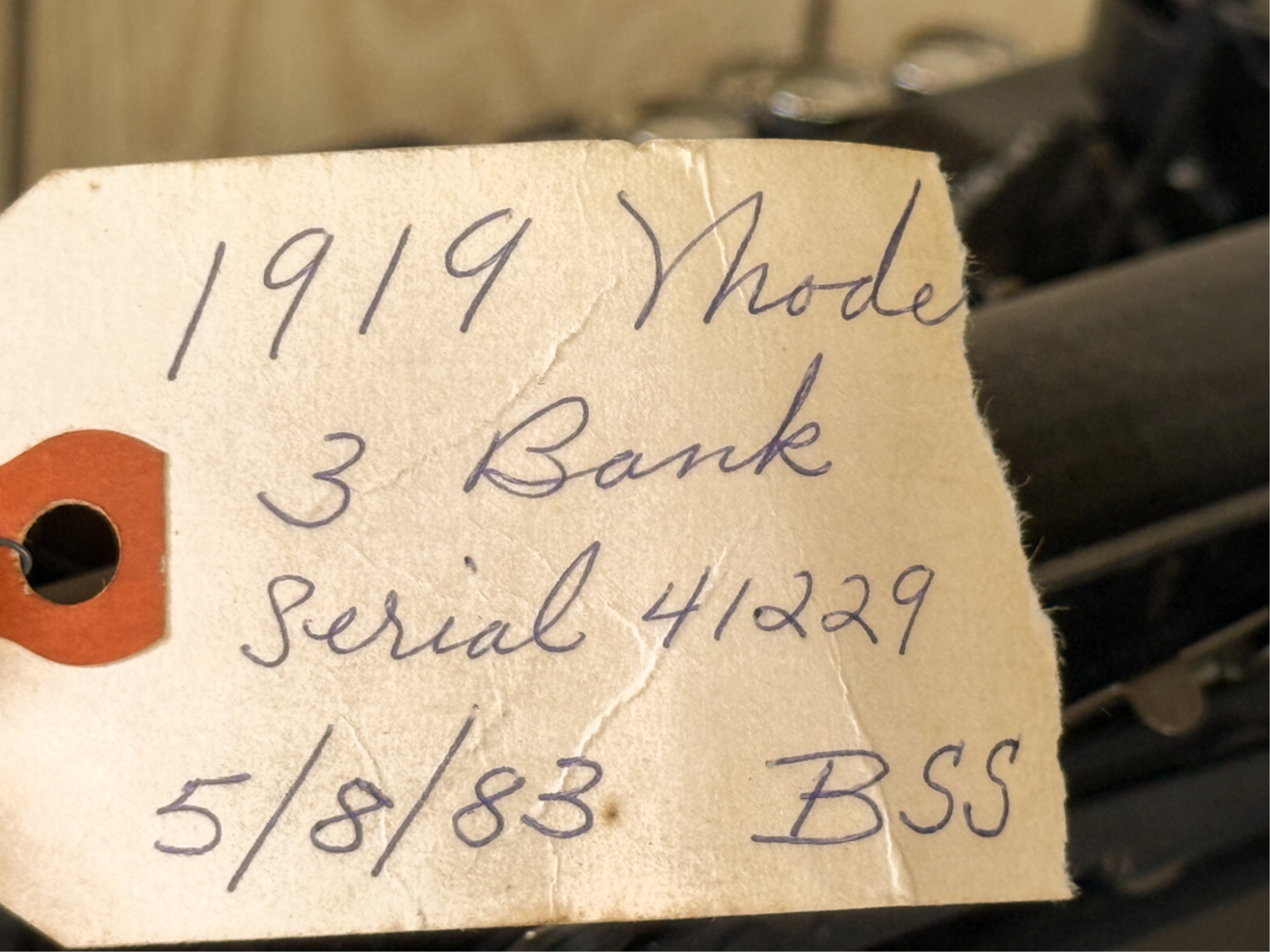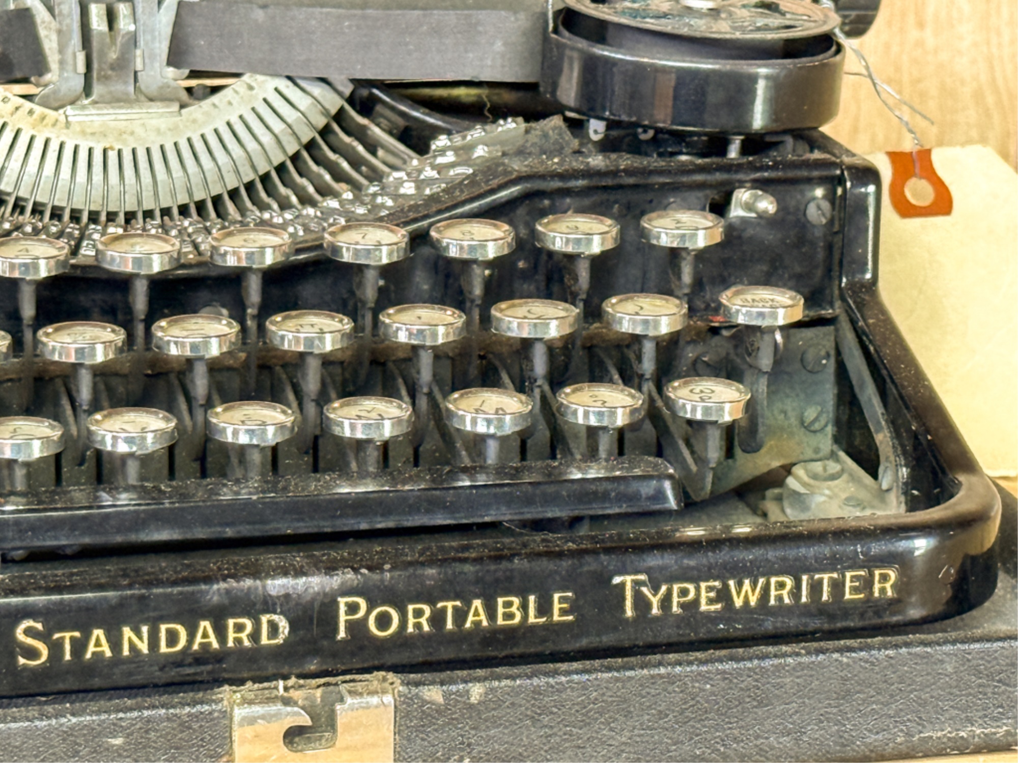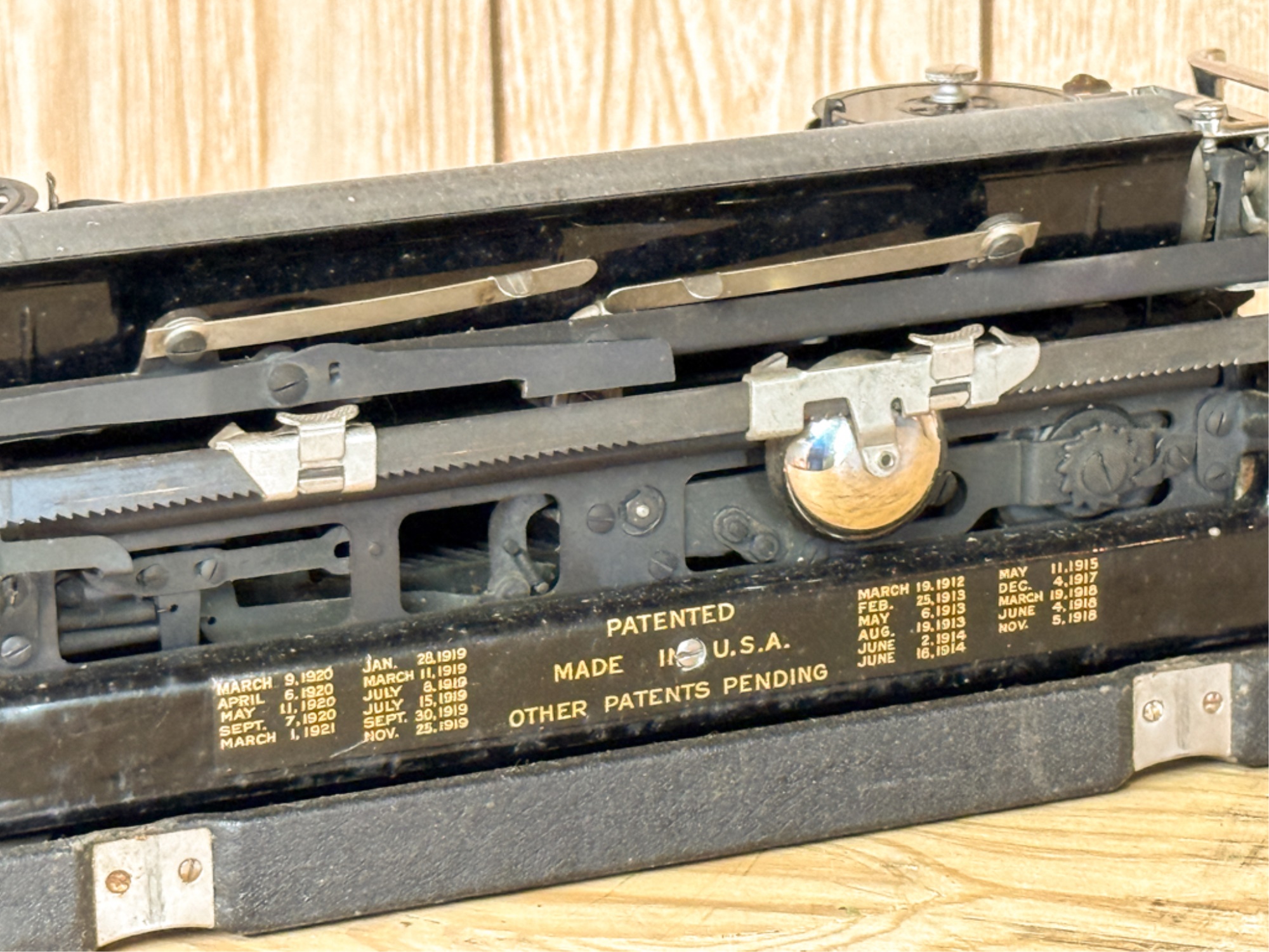 Circa 1922. Serial number 41229. 4 1/2 x 12 x 9 inches. Condition: Good. Carriage return moves crisply. Some keys stick, may need cleaning/oil. Missing cover. Temp No 13a