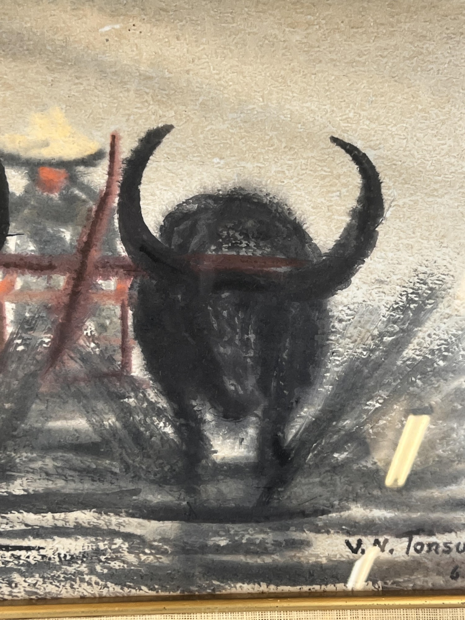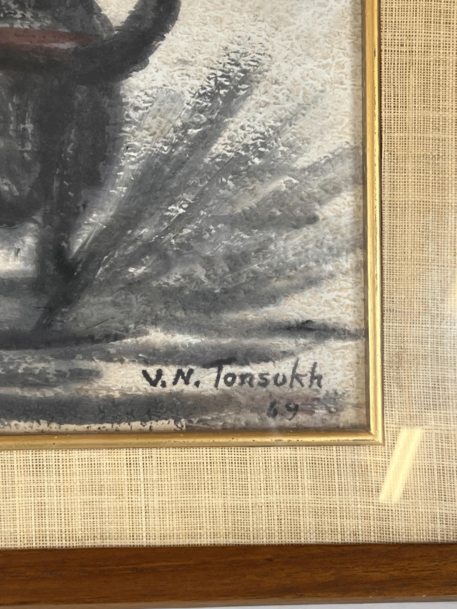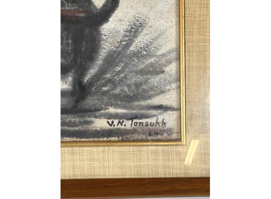 Mid century Vietnamese artist. Watercolor on heavy grain paper signed and dated '69 lower right. 18 1/2" x 25 1/2" framed Condition: Good
