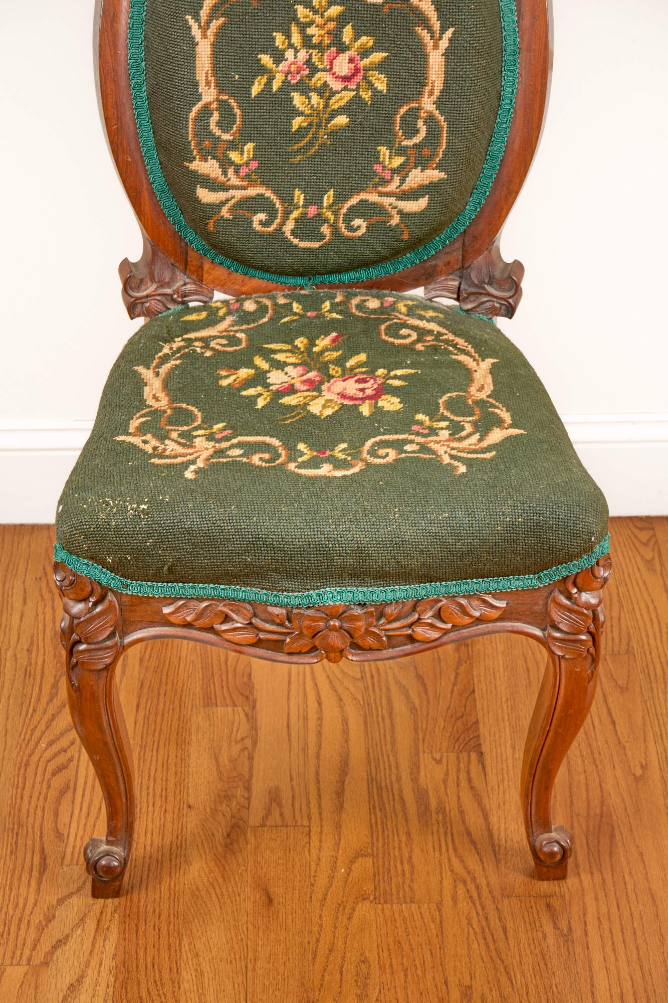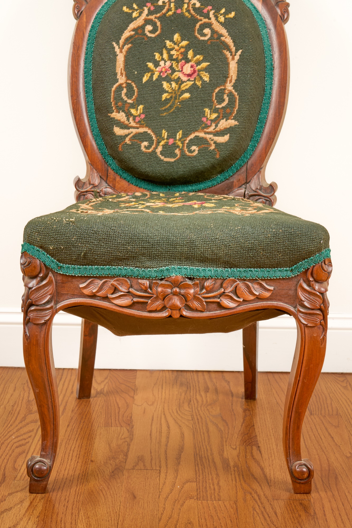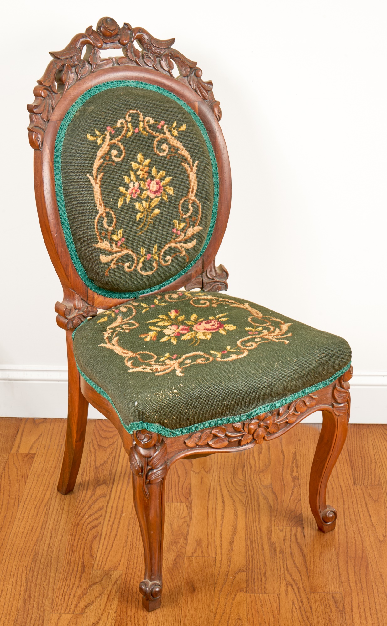 Lower back, apron and knees also carved with a floral motif. 36 x 18 x 21 inches Condition: Good