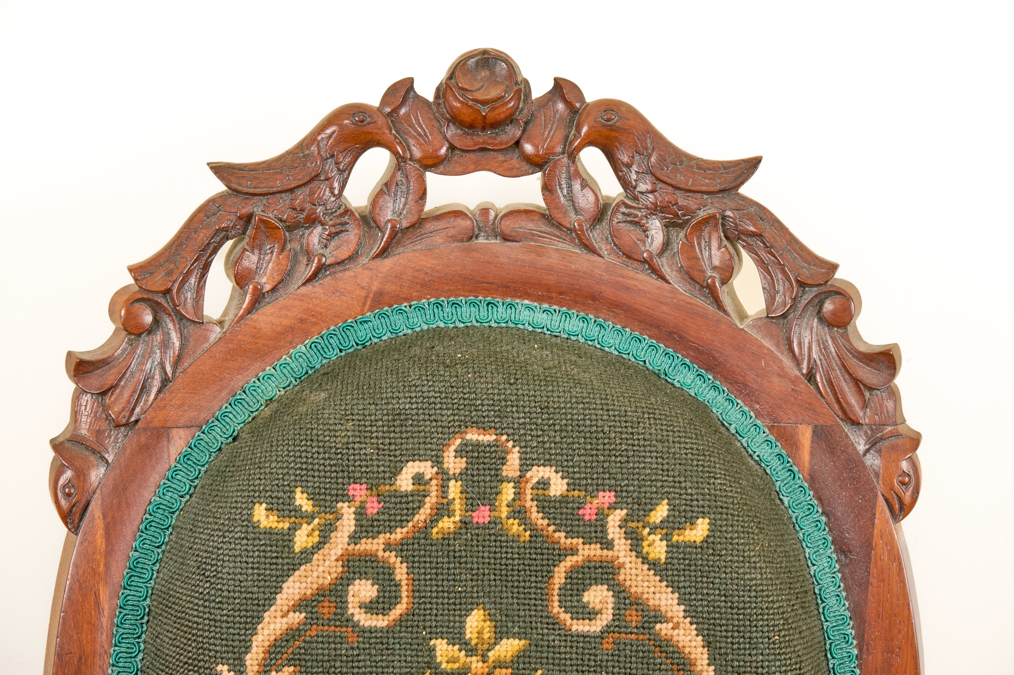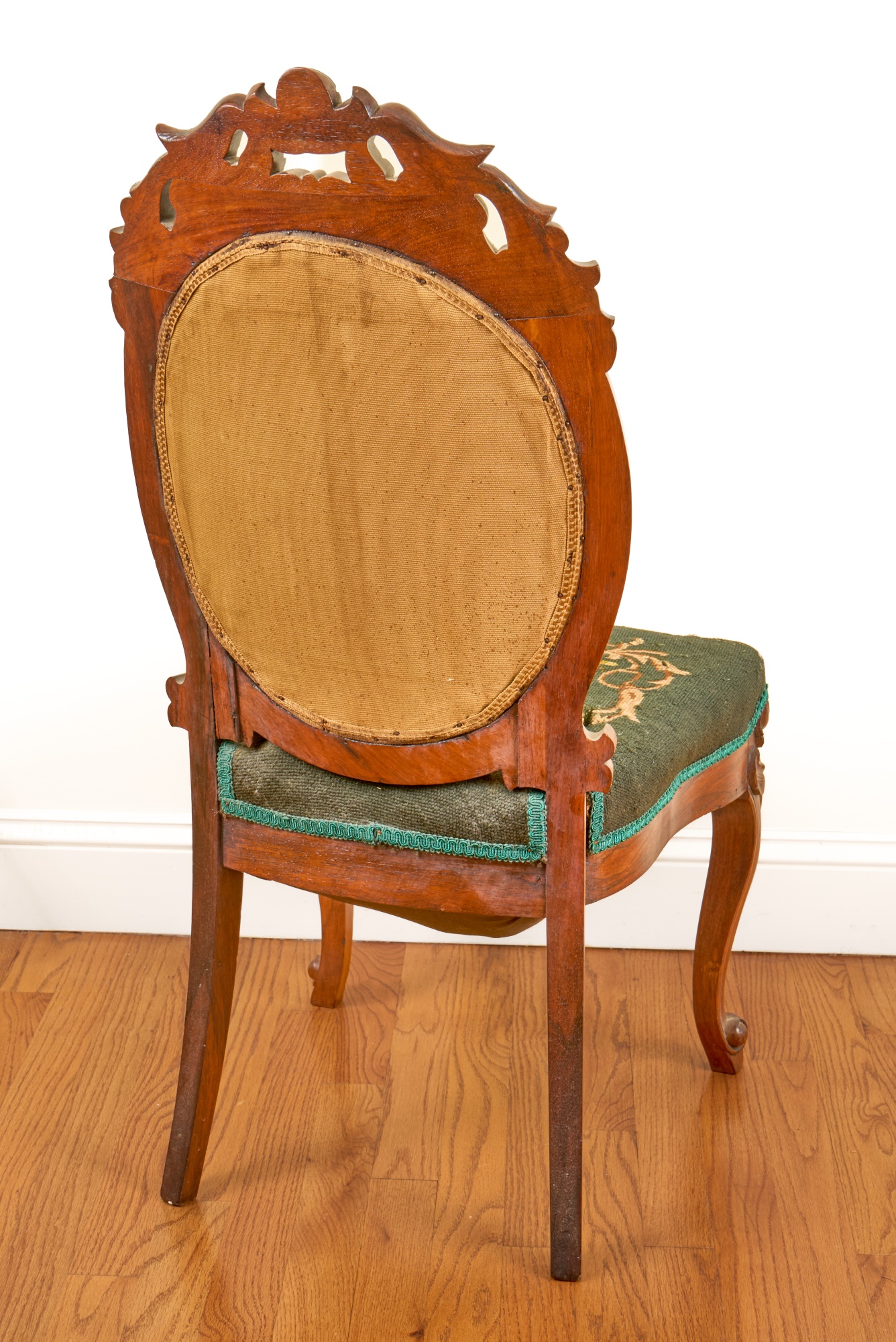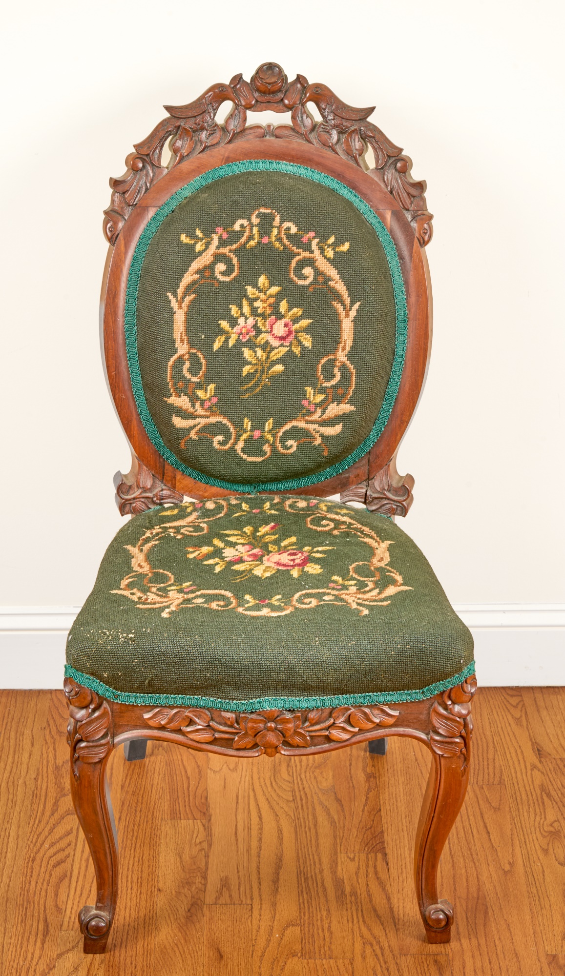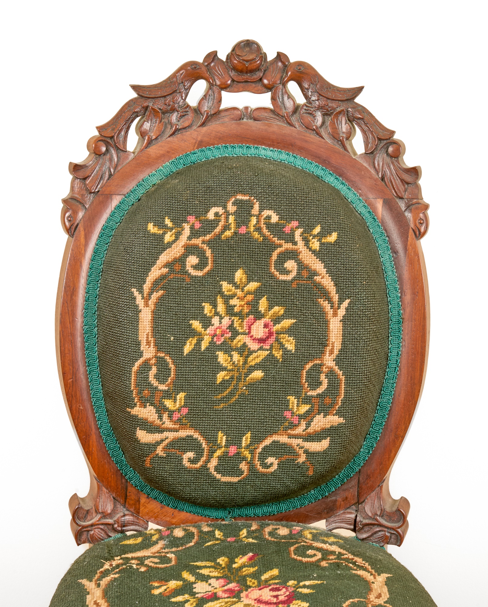 Lower back, apron and knees also carved with a floral motif. 36 x 18 x 21 inches Condition: Good