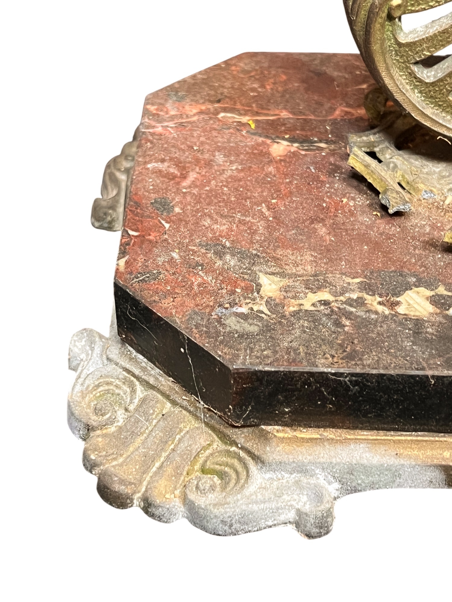 Notes: Losses to brass at base atop the marble, upper tray absent